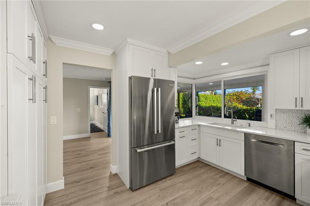 Quiet Luxury Meets Waterfront Living – Nestled in the quaint and coveted boating neighborhood of Golden Shores—where the streets are named after native birds—this beautifully remodeled 3 bedroom /2 baths waterfront residence blends timeless coastal style with the ultimate Naples lifestyle. With no HOA, it offers the flexibility for a vacation rental or Airbnb. Thoughtfully renovated in 2023, the home features a chef’s kitchen with premium appliances, custom cabinetry, and an oversized island. Open-concept living flows seamlessly to the outdoors, where a private pool, lush landscaping, and a secluded backyard create the perfect setting for relaxing, entertaining, or enjoying serene water views—with direct Gulf access from your own dock. Just seconds to Naples Bay and only minutes to world-famous 5th Avenue, Naples beaches, Naples Bay Resort, and Bayfront of Naples, you’ll enjoy fine dining, upscale shopping, and unforgettable sunsets within minutes of your front door. A must-see for those seeking a premier waterfront lifestyle in the heart of Naples.