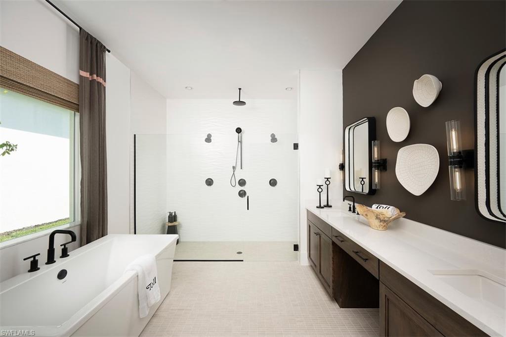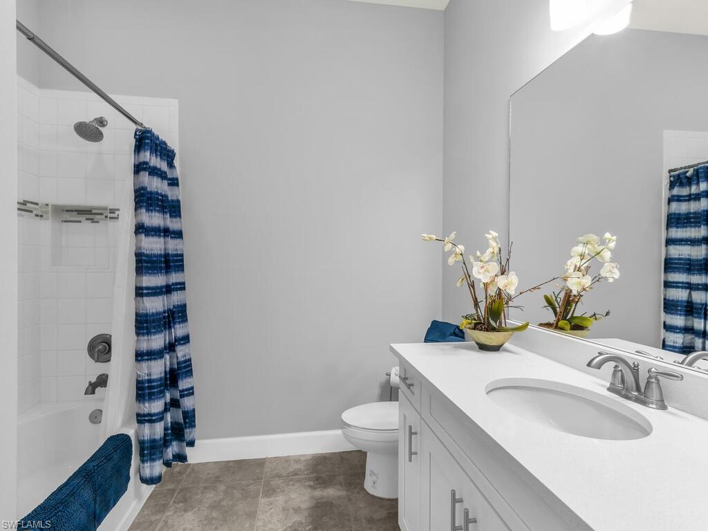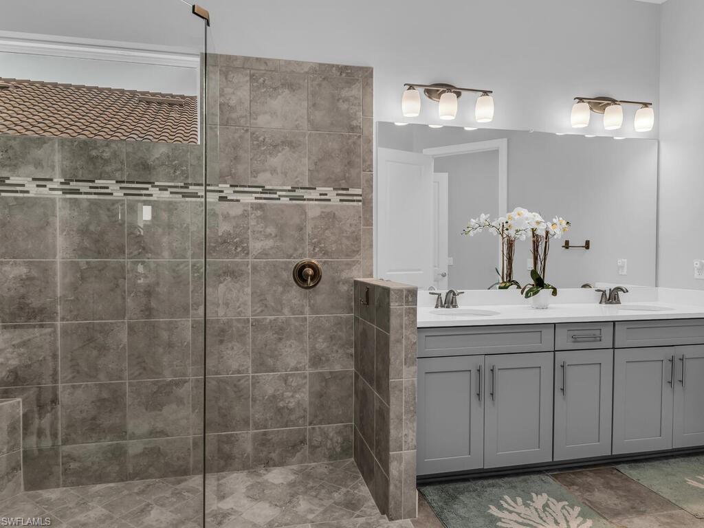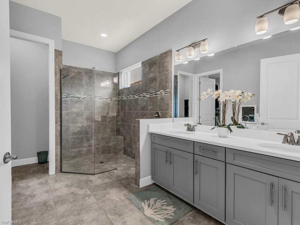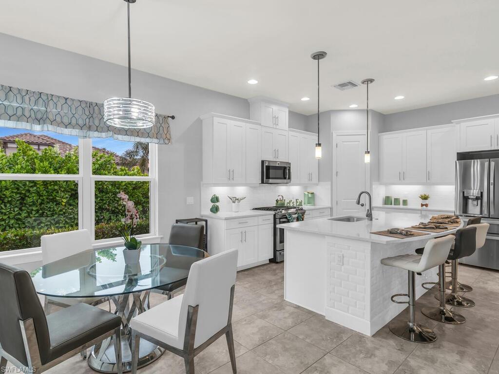 GORGEOUS WATERFRONT NEW CONSTRUCTION SINGLE FAMILY HOME IN NAPLES, FL Welcome to this exquisite new construction single-family home—an exceptional blend of luxury, comfort, and scenic beauty. From the moment you walk in, you’re greeted by stunning tile flooring that flows seamlessly throughout the entire home, offering both elegance and easy maintenance with no carpet in sight. The spacious open-concept floor plan is designed to impress, creating a welcoming environment ideal for both relaxing at home and entertaining guests. At the heart of the home is a beautifully appointed kitchen that combines style and function, featuring sleek quartz countertops, rich wood cabinetry, and a full suite of stainless steel appliances. A massive center island provides ample space for meal preparation, casual dining, or gathering with friends and family, making this kitchen a true centerpiece. The luxurious primary bedroom suite serves as your private retreat, featuring a spa-inspired bathroom complete with dual vanities topped with quartz countertops, custom wood cabinetry, and an oversized walk-in shower designed for pure relaxation. The additional guest bathrooms echo the same upscale finishes with coordinating quartz countertops and wood cabinetry, delivering a cohesive and refined aesthetic throughout the home. Large, strategically placed windows bathe the interior in natural light, enhancing the open, airy feel and bringing the outdoors in. Step outside to your expansive covered lanai and soak in the peaceful pond views, perfectly framed by the home’s highly sought-after western exposure—offering unforgettable sunsets and the ultimate outdoor living experience. Whether you're enjoying a quiet evening or entertaining guests al fresco, this space is ideal for embracing the Florida lifestyle. Built with comfort, elegance, and practicality in mind, this home is a rare opportunity not to be missed. Be sure to ask our sales consultant about current rate buydown promotions. For more details, including the full floor plan and interior design selections, please see the MLS supplements.