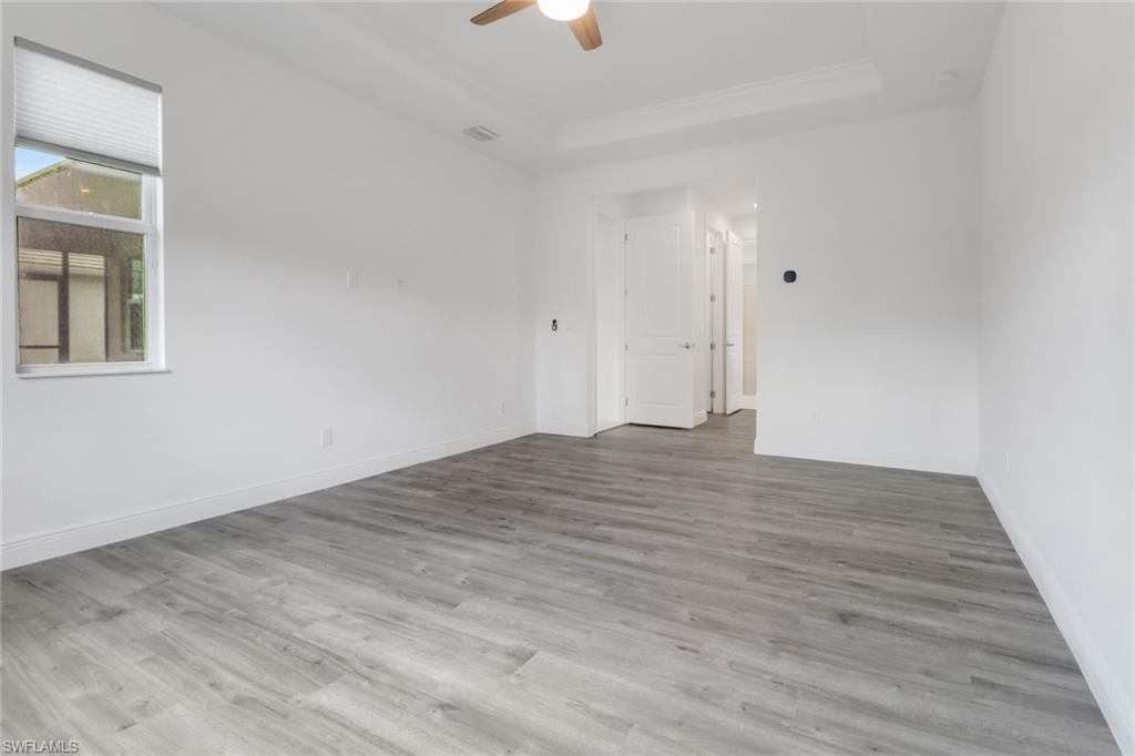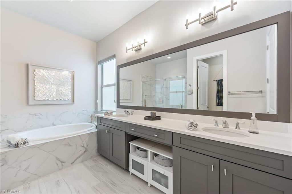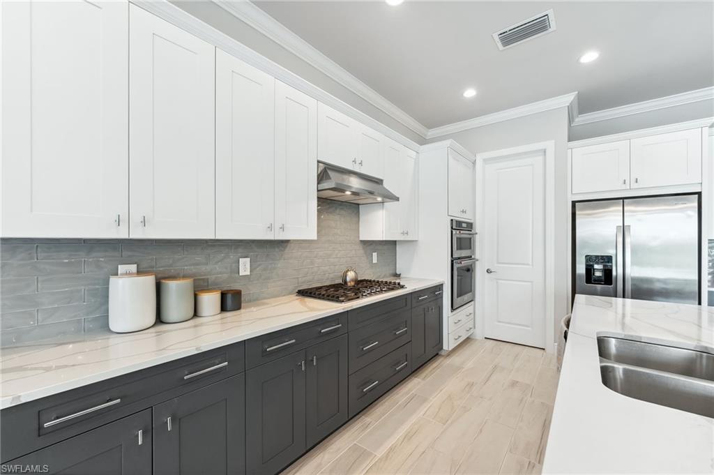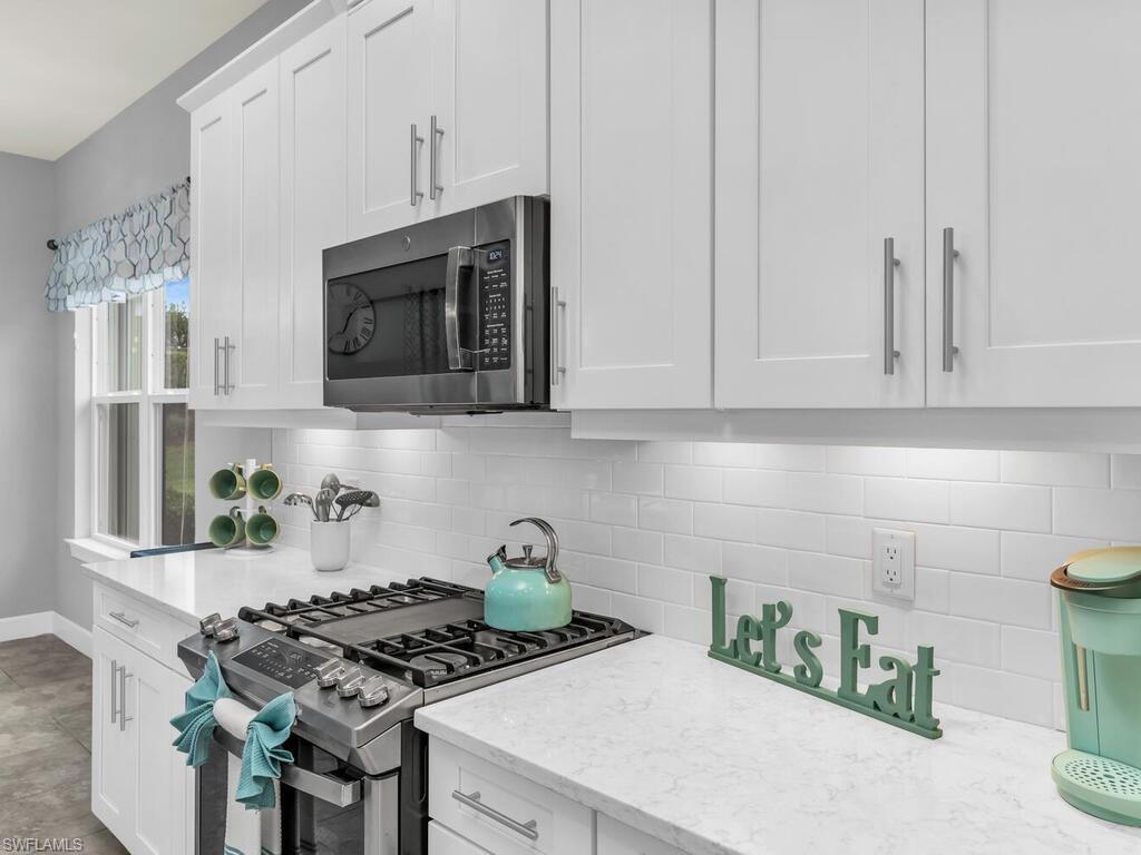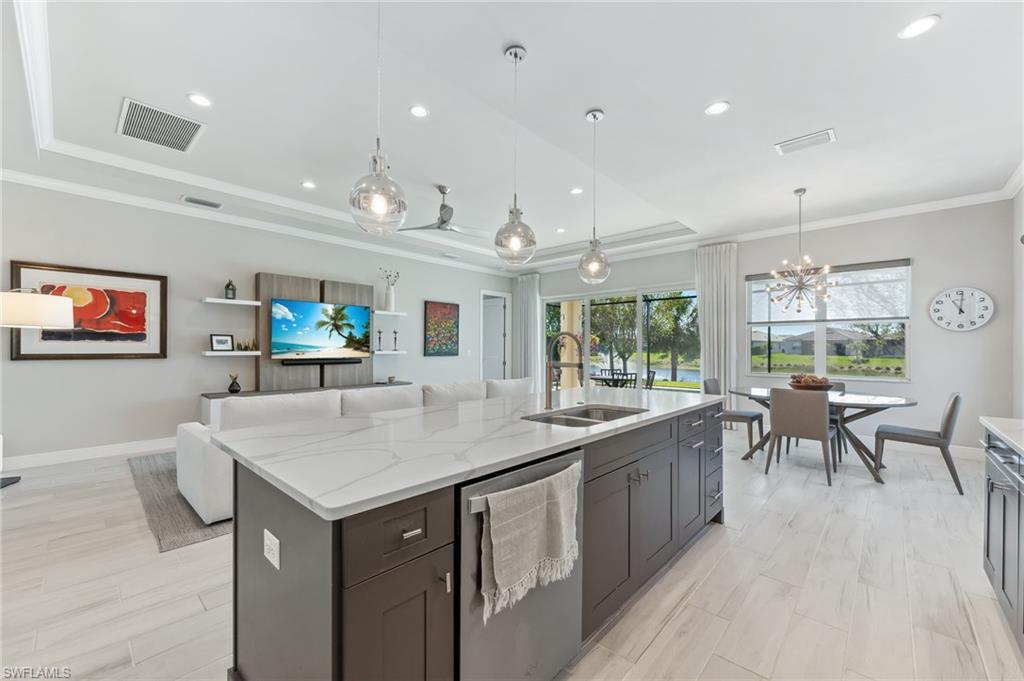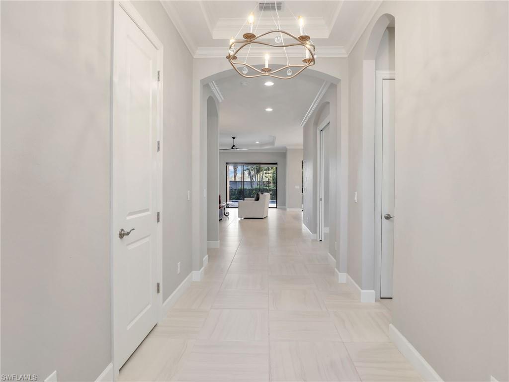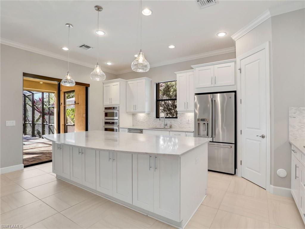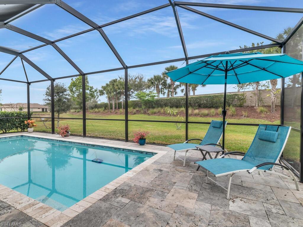 If you've been waiting for the perfect moment to buy in Naples Florida, The Time Is Now! You will fall in love the moment you enter this highly upgraded, move in ready home in one of Naples most sought-after gated communities. The gourmet kitchen is a chef’s dream with gorgeous Pompeii Quartz countertops, a gas stove, built in microwave drawer and stainless steel appliances. Host family dinner parties in the adjacent spacious dining room. You will love the open floor plan with Cortex luxury vinyl flooring, crown molding and 10 foot ceilings. The flexible den/home office provides a quiet workspace or an additional room for guests. The owner’s suite features a new walk-in shower with a glass enclosure, double sinks and a huge walk-in closet. The split-bedroom layout provides privacy and includes two guest bedrooms with a large bath and double sinks. Step outside to your own private oasis perfect for soaking up the Florida sunshine or unwinding after a long day. Relax and entertain on the screened lanai or cool off in your private inground pool. The spacious 2-car garage offers plenty of storage. Esplanade at Hacienda Lakes offers resort-style amenities with a clubhouse hosting many social events, fitness center, a heated resort-style pool and spa with cabanas, a fire pit, tennis, lighted pickleball courts, a playground and a dog park. Ideally located just minutes to Naples famous 5th Avenue & Third Street South with world-class restaurants, shopping and beaches. You are just a short drive to the beautiful beaches of Marco Island and the many restaurants and activities on Marco and Isles of Capri. This is the opportunity you've been waiting for to live the Naples lifestyle you deserve!
