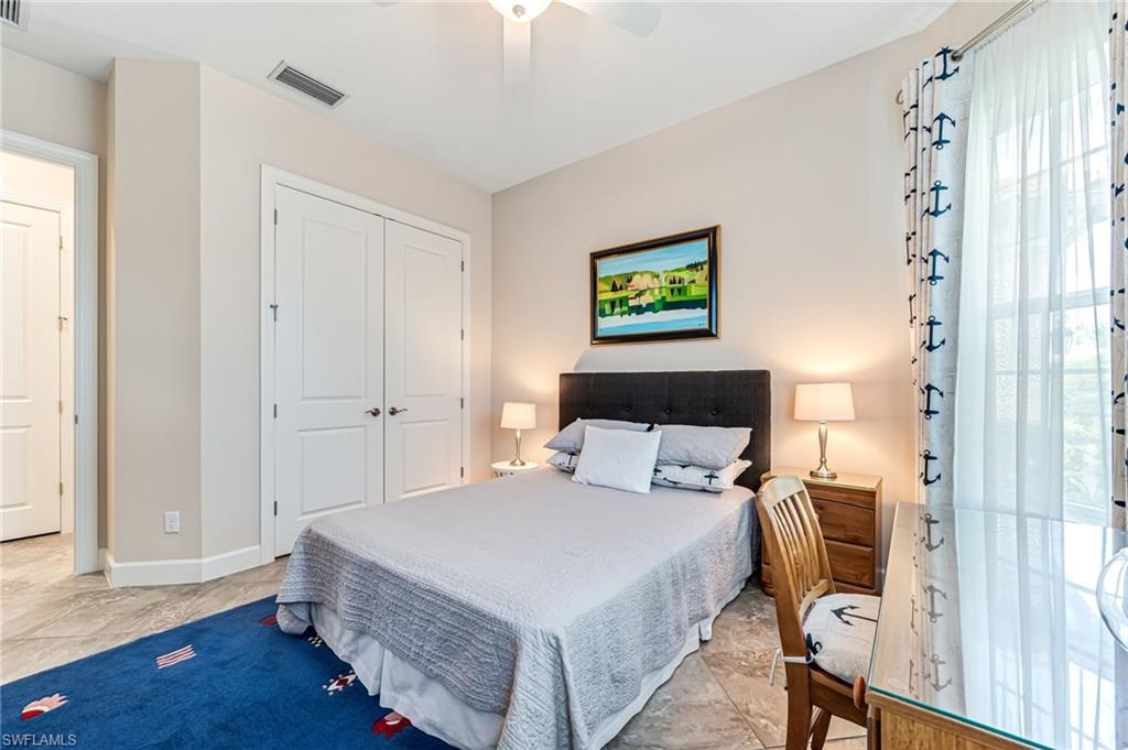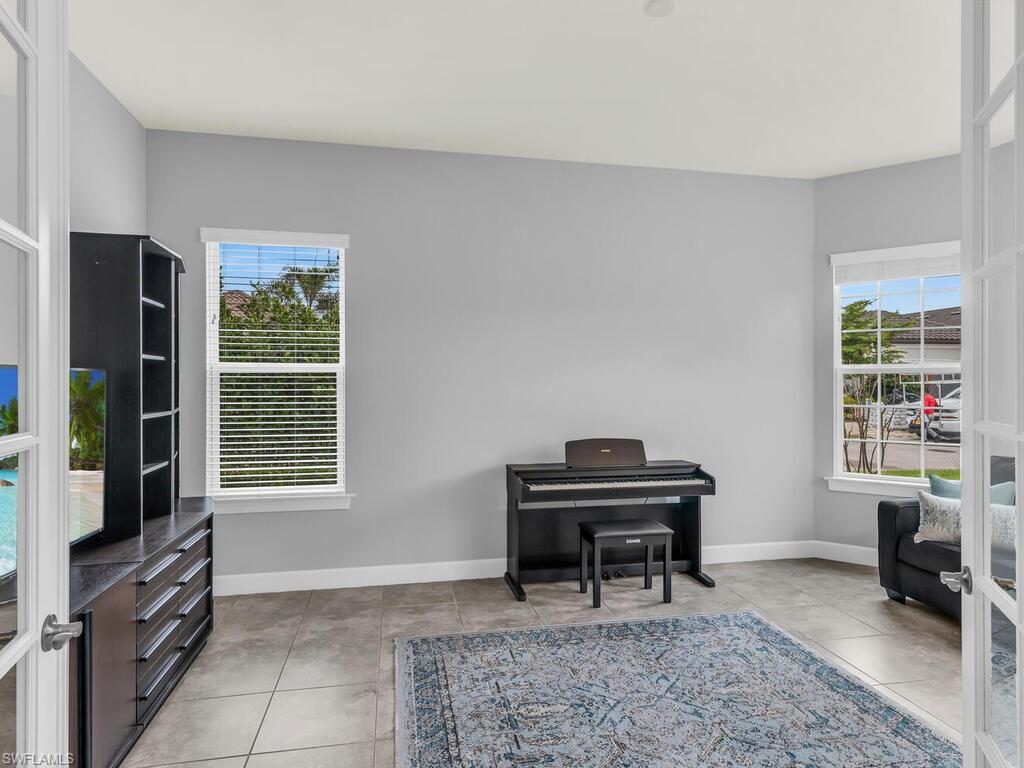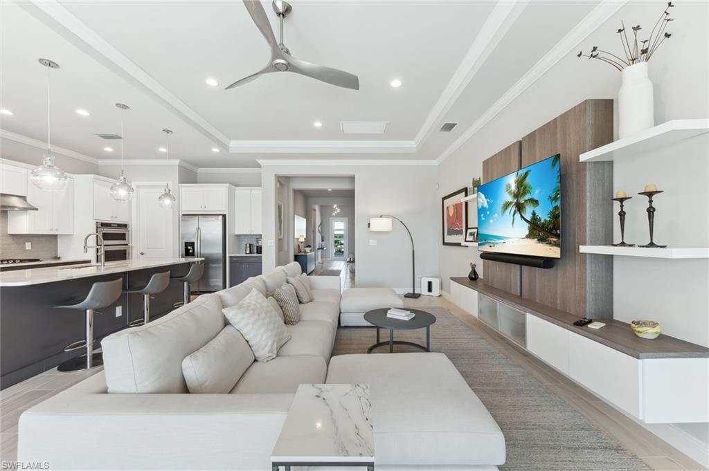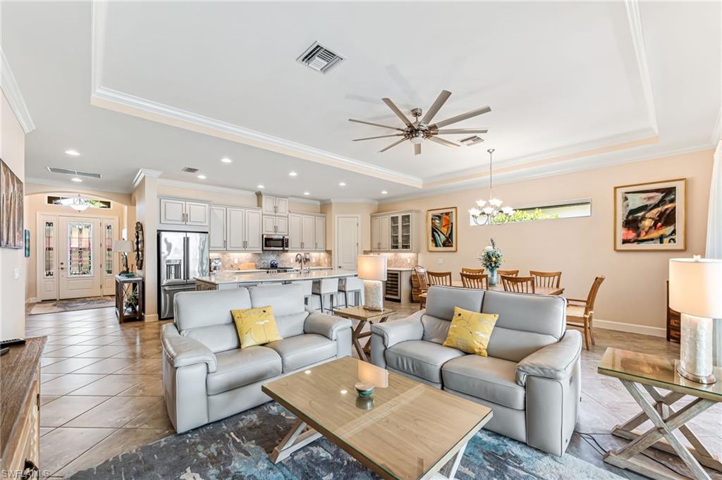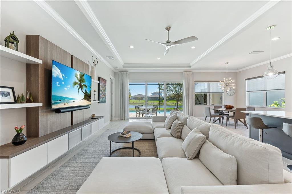 Welcome to your elegantly appointed newer Sable Antilles by Toll Brothers featuring 3 Bed 2 Baths & 2 car garage home with a sun filled screened in pool area. Step inside and be captivated by the volume ceilings and attention to detail offering trey ceilings with crown molding and upgraded lighting fixtures! Impact windows and doors throughout for peace of mind hurricane protection. Neutral tones with upgraded tile flooring in the main living areas! Natural gas cooking make the kitchen a chef's delight. Walk in pantry, upgraded stainless appliances, quartz countertops and a spacious kitchen island for entertaining! Custom built in entertainment center in the Living room! The primary suite offers a trey ceiling with crown molding and walk in closet space and a secondary zoned A/C. The primary bathroom features a full mirror and a quartz double sink vanity with lots of cabinetry and a large walk in frameless glass shower with bench and soaking tub. The secondary bedrooms are set apart for guest privacy! Additional upgrades include: Wood shelving in all closets, Designer indoor and outdoor fans and upgraded 5 1/4 baseboards throughout! Upgraded washer and dryer and sink! Enjoy a beautiful SE exposure overlooking a peaceful lake with fountain with your private screened in gas heated extended pool overlooking a breathtaking lake and covered seating area for outdoor entertaining or relaxation. Flood zone determination X-500, therefore flood insurance is not required. Azure amenities include a state-of-the-art fitness center, resort-style swimming pool, tennis, pickleball courts, a gathering room with a catering kitchen, and a fire pit with lounge seating. Close to 5th Avenue, Naples beaches and Marco Island.