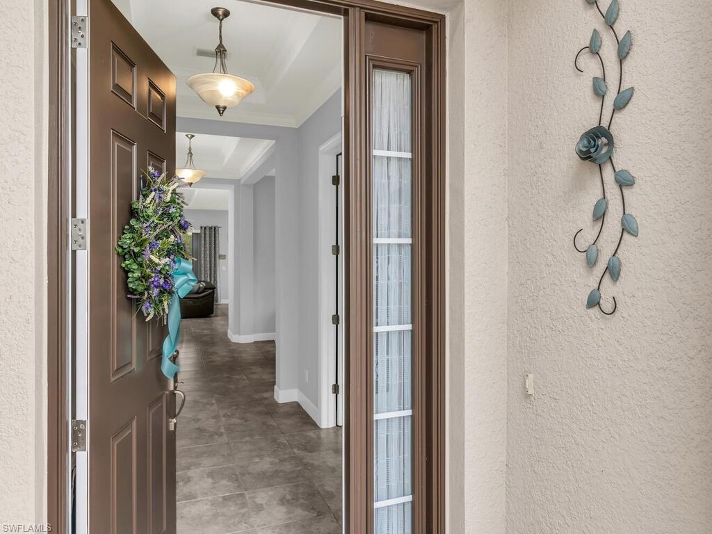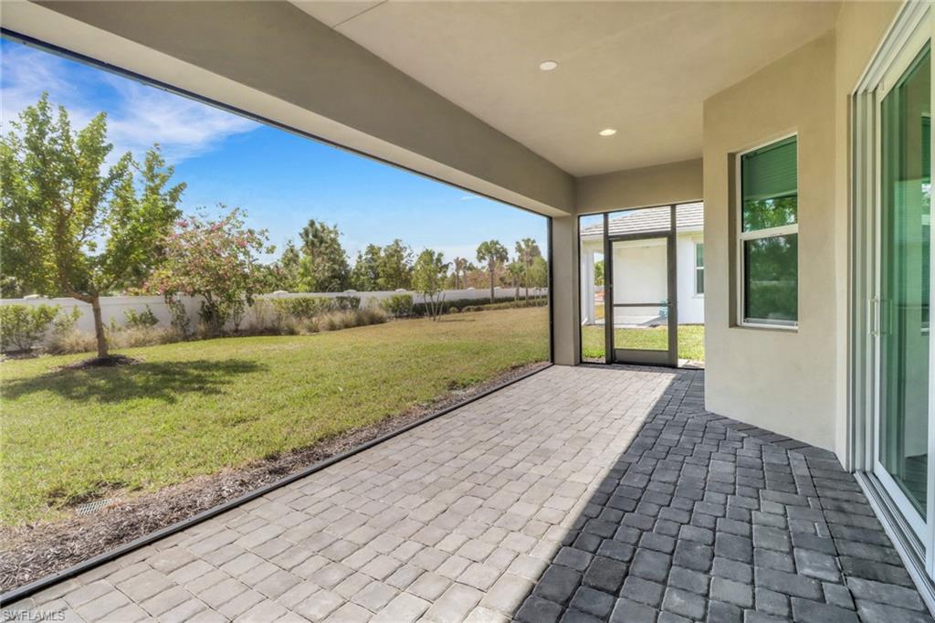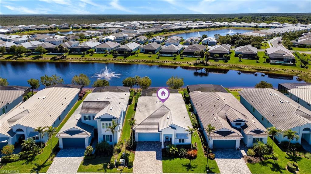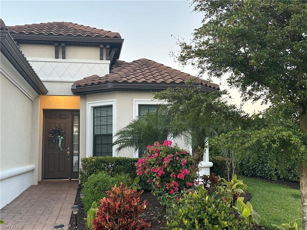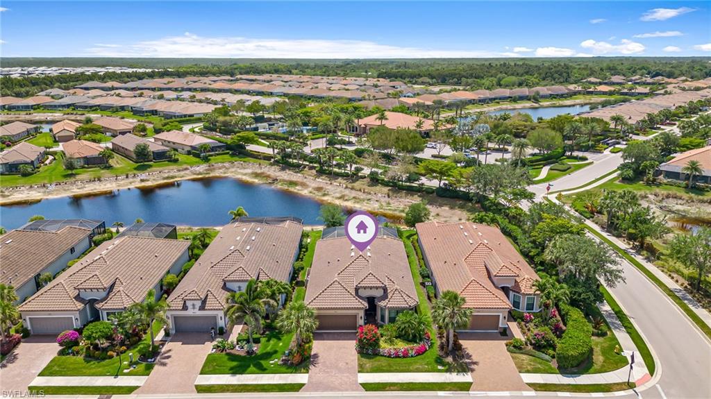 Immaculate newer construction Baypointe model home, featuring unobstructed wide-water lake views and ideally in one of Naples sought-after guard-gated communities. In the prestigious Azure enclave, this luxurious single-story home boasts two oversized en-suite bedrooms, an office or den/flex space, two full baths and nearly 1,600 square feet of air-conditioned living space. Detail in design and construction is evident in every corner, creating an atmosphere of sheer sophistication. Other features include hurricane-impact windows and doors throughout, large volume and tray ceilings, a chef’s kitchen with natural gas cooktop, a beautiful entry patio with brick paver driveway and two-car garage, wide-plank tile flooring throughout, an expansive screened lanai with panoramic water views and the ability to purchase fully furnished/turnkey for effortless and immediate enjoyment. Residents of Azure at Hacienda Lakes also have access to a beautifully designed clubhouse, resort-style heated pool and spa, tennis and pickleball courts, private library, billiards room, world-class fitness center, expansive yoga studio and more. An incredible opportunity that will not last long.