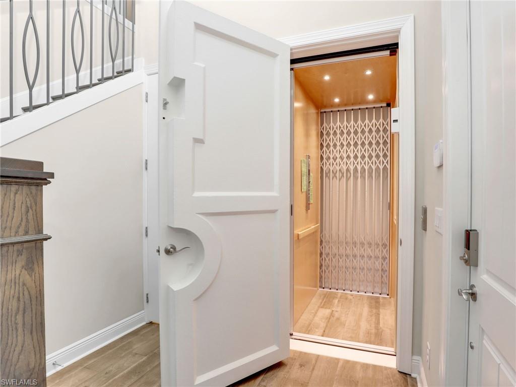 Welcome to this beautifully designed second-floor coach home in the sought-after resort-style community of Hacienda Lakes, offering a perfect blend of luxury, comfort, and functionality. With over 2,600 square feet of living space, this residence features 3 spacious bedrooms plus a den, 3 full bathrooms, and an attached 2-car garage. A private elevator opens directly into the home, providing convenience and a sense of exclusivity. Once inside, you are greeted by an open and thoughtfully planned layout highlighted by soaring ceilings with a coffered ceiling in both the living room and the primary suite, adding elegance and architectural character. Expansive windows and sliding glass doors invite in natural light while drawing your attention to the serene water views from the lanai, a peaceful backdrop for relaxing mornings or evening gatherings. The kitchen is a true centerpiece. A large island offers ample seating and preparation space, complemented by a gas cooktop, wall oven, wine cooler, and a stylish tile backsplash. Abundant cabinet space ensures plenty of room for storage, while the modern finishes tie the space together beautifully. The kitchen seamlessly flows into the dining and living areas, creating a welcoming environment for entertaining guests or enjoying quiet evenings. Double doors open into the den, which can serve as a home office, media room, or an additional guest space depending on your needs. The split-bedroom design provides privacy, with the primary suite thoughtfully separated from the guest bedrooms. In the primary bath, dual sinks, a walk-in shower, and a freestanding pedestal tub create a spa-like atmosphere, while the large walk-in closet offers generous storage. The 2 guest bedrooms and additional full baths, make this home well-suited for visitors. Every detail has been carefully considered to ensure both style and functionality throughout the residence. Step outside to the screened lanai and enjoy tranquil water views that enhance the home’s overall sense of retreat. Whether used for morning coffee, evening cocktails, or simply relaxing with a good book, this outdoor space captures the beauty and calm of Florida living. Additional features include a 2-car garage with plenty of room for vehicles and storage, as well as easy access to all the community amenities. Residents of this community enjoy resort-style living with pools, fitness centers, walking paths, and social activities, along with convenient proximity to shopping, dining, golf, and the renowned beaches of Florida.