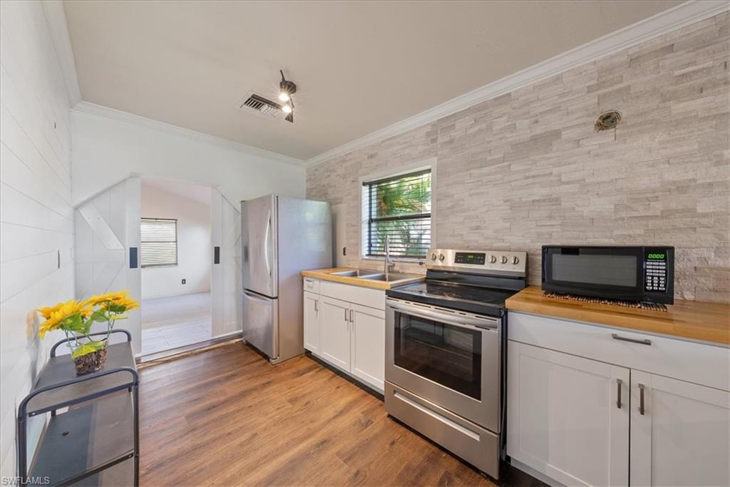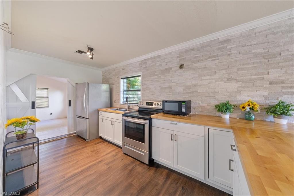 Nestled in the dynamic and ever-evolving Bayshore Arts District, this meticulously crafted two-story home offers the perfect blend of style, comfort, and investment potential. Built in 2019, this 4-bedroom, 2.5-bath residence spans 2,104 square feet of thoughtfully designed living space.The spacious primary suite is conveniently located on the first floor, offering ample closet space, privacy and ease of access, while three additional bedrooms and a versatile loft occupy the second floor—ideal for families, guests, or a home office setup. The Chef-Inspired Kitchen is Equipped with quartz countertops, 48" solid wood cabinetry, stainless steel appliances, and a spacious breakfast bar that seamlessly connects to the great room—perfect for entertaining. Step outside to the covered lanai and enjoy a fully fenced yard that backs onto a serene nature preserve owned by the Naples Botanical Garden, ensuring ultimate privacy and room for a pool. With no HOA fees and flexibility for short-term rentals, this property is well-suited for a variety of lifestyles, whether you're searching for a full-time residence, a seasonal retreat, or a high-performing rental opportunity. Located just minutes from downtown Naples, fabulous dining, entertainment, shopping, and the beautiful Gulf beaches, this home places you at the center of one of Naples' most exciting and up-and-coming neighborhoods.
