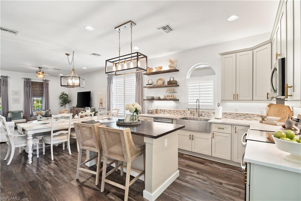 $300k price reduction. Stunning Ultra-Modern Home in Historic Bayshore Area – Minutes from Downtown Naples Experience the pinnacle of modern luxury in this brand-new, ultra-modern home, ideally located in the historic Bayshore area—just minutes from the vibrant downtown Naples. Designed with sleek, contemporary style & meticulous attention to detail, this home combines the best of modern living with the charm of one of Naples’ most desirable neighborhoods. Boasting 2,262 sq. ft. of living space & 3,520 sq. ft. total area, this spacious home features an open great room with soaring 20-foot ceilings, creating an airy & inviting atmosphere throughout. With 4 bedrooms, 3 bathrooms & a 2-car garage, this home offers ample space for both family living and entertaining. The gourmet kitchen is a chef’s dream, complete with upgraded stainless steel appliances, custom cabinetry with LED lighting & sleek quartz countertops. Custom-built closets in every room provide organized, elegant storage. The luxurious master suite is a true retreat, featuring expansive walk-in closets and a spa-like master bath with a huge walk-in shower & separate soaking tub for ultimate relaxation. Wine lovers will delight in the custom-built wine room, while the large laundry room offers additional convenience & functionality. Each bathroom is elegantly appointed with modern lighted mirrors, adding a touch of contemporary luxury. Step outside to your private outdoor paradise, where you’ll find an outdoor kitchen, a screened-in, heated pool & spa, perfect for year-round enjoyment & entertaining. Throughout the home, porcelain tile flooring provides a sleek, modern finish, plus ceiling fans in every room ensure comfort throughout the seasons. This rare opportunity to own a brand-new, ultra-modern home in one of Naples’ most desirable locations—where modern design meets historic charm—won’t last long.