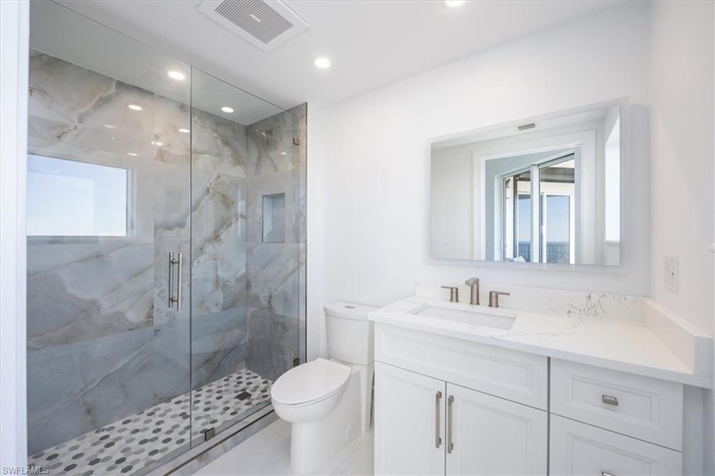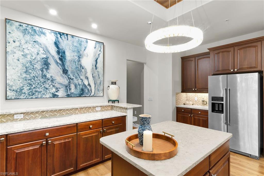 Stunning PENTHOUSE Skyhome with GULF VIEW. SELLER HAS OVER $1.3 MILLION INVESTED IN THIS HOME. SELLER’S LOSS IS YOUR GAIN! Discover unparalleled luxury and serenity in this FULLY REDESIGNED and RENOVATED 3-bedroom, 3.5-bathroom penthouse SKYHOME, located in the prestigious Aversana at Hammock Bay Golf and Country Club. Boasting soaring 12-foot ceilings and breathtaking PANORAMIC VIEWS of the Ten Thousand Islands, Marco Island, and the Gulf of Mexico, this exquisite residence includes ALL NEW KITCHEN, BATHROOMS, and LAUNDRY and offers the ultimate in elevated living. Step off your private elevator into an open-concept floor plan, where every room showcases sweeping vistas. The CHEF’S KITCHEN features custom cabinets, sleek stainless steel Bosche appliances, and elegant quartz countertops. The adjacent BAR AREA is perfect for entertaining, with a wine refrigerator, built-in liquor storage, and illuminated glass cabinets. TWO TERRACES invite you to indulge in the beauty of sunrise from the screened lanai - and sunset from the open terrace, while electric storm shutters ensure peace of mind when you're away. The LUXURIOUS PRIMARY SUITE is a true retreat, offering stunning views and private terrace access. The spa-inspired DESIGNER BATHROOM features custom cabinets, quartz countertops, dual sinks, a soaking tub, a glass shower, and a separate water closet. The suite’s impressive walk-in closet includes custom built-ins, providing ample space for all your wardrobe and storage needs. The thoughtfully designed split floor plan includes TWO ADDITIONAL GUEST SUITES, each with designer bathroom, lighted mirror, glass-enclosed shower, built-in closet, and open terrace access, ideal for enjoying the vibrant sunsets over the Gulf. Residents of Aversana enjoy a wealth of RESORT-STYLE AMENITIES, including a sparkling pool and spa, pool pavilion with grilling area, fitness center, a media room, and two guest suites that can be reserved for guest overflow. Additional SECURE STORAGE and TWO COVERED PARKING SPACES are included, providing ultimate convenience. Ideally located near WORLD-CLASS DINING and SHOPPING, Marco Island’s pristine beaches, and just minutes from the Marco Island Executive Airport, this Skyhome offers a harmonious blend of relaxed luxury and refined sophistication.