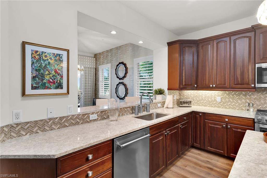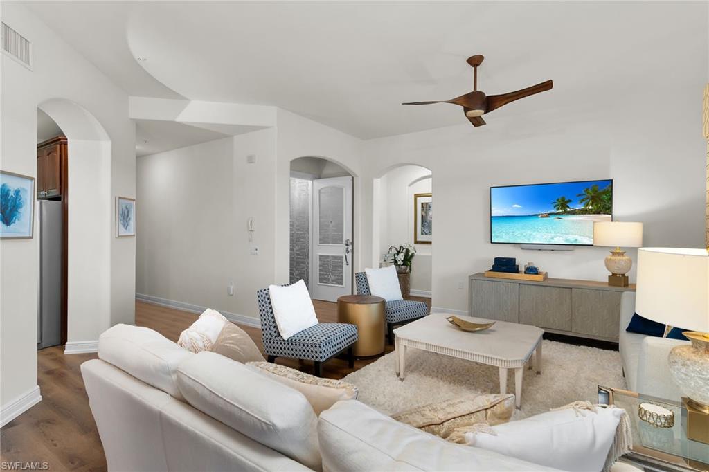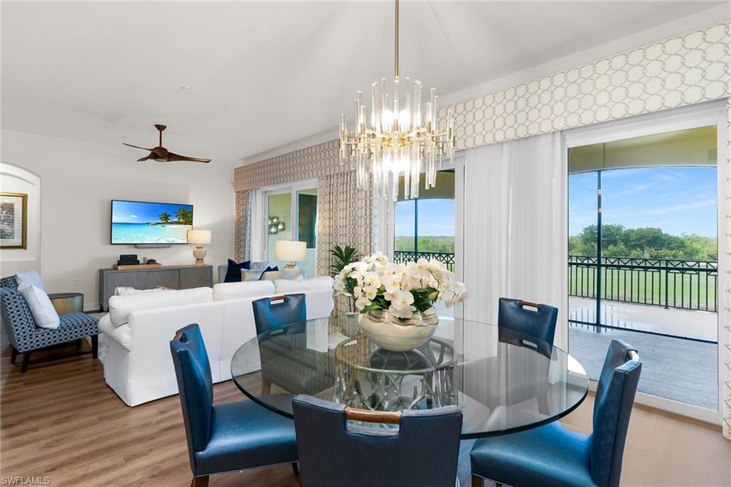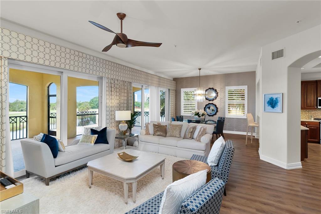 Lesina at Hammock Bay Golf & Country Club offers a rare blend of resort living and refined elegance—gated, prestigious, and rich in world-class amenities. This expansive, tastefully furnished 4-bedroom, 3.5-bath luxury condo lives like a sprawling private home, and is offered at pricing rarely seen in a community of this caliber making it an exceptional opportunity for discerning buyers. Arrive via secured elevator, to a private foyer. Enter to the open living grand salon, formal dining and family room areas all with views and access to the spectacular 45' wrap-around screened terrace. The chef's kitchen features a breakfast nook, breakfast bar, and a private balcony, perfect for hosting and everyday comfort. A sanctuary of privacy, the primary ensuite features a spa like bath with soaking tub, a walk-in shower, his-and-hers closets, and a lanai with stunning views. Two charming guest suites share a private balcony, while a fourth bedroom (currently an office) boasts a terrace. This home offers elegant indoor outdoor living and oodles of amenities. 3 points set Lesina apart, having completed the newly required SIRS (Structural Integrity Study) with no resulting assessments, ensuring a worry-free investment. This 2nd floor retreat also delivers lush tropical panoramic views of serene waterways with the skyline of Marco Island in the distance and a front-row seat to the resort-style pool oasis and cabanas, offering a warm, inviting ambiance. Lesina pampers residents with an elevated resort lifestyle, including a stunning pool & spa, world-class fitness center with sauna, theater, social room, bar and catering kitchen, billiards, library/games room, outdoor grills, and more. Residents benefit from secure elevator access, 2 deeded under-building parking spaces and 2 climate-controlled storage units, and on-site management with a welcoming front desk host. Nestled between Naples and Marco Island's world-famous beaches, restaurants and shopping, this serene, elegant enclave offers luxury, space, and exclusivity rarely found in the area. A rare opportunity to secure a move-in-ready, spacious condo at an exceptional value.