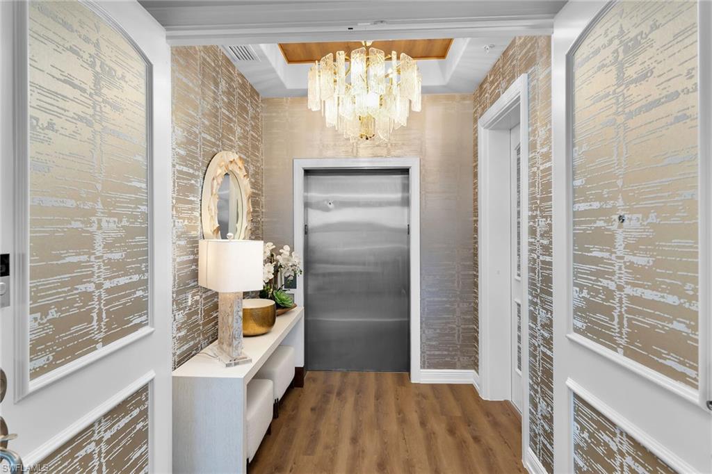 *Spacious 9th-Floor Lesina at Hammock Bay Condo with Stunning Views in Naples, FL** Located at 1050 Borghese LN #902, Naples FL, this luxurious 9th-floor apartment offers an impressive living experience complete with spectacular water and golf course views. Spanning 2,606 square feet, this residence features 5 rooms including 3 bedrooms and 3.5 baths. As you enter, from your very own private elevator you'll notice the hardwood flooring that extends throughout the main living areas, providing a warm and elegant feel. The gourmet kitchen is truly a standout feature of this apartment. Equipped with solid wood custom cabinets and self-closing drawers, it combines both functionality and style. High-quality Kitchenaid Stainless Steel Appliances complement the granite countertops and the exquisite marble backsplash, making meal preparation a delight. The Building amenities are designed to enhance your living experience. The Theatre Room boasts surround sound and tiered seating, creating a cinematic experience at home. For social gatherings, the Social Room, complete with a kitchen, bar area, billiard table, and large screen TVs, is perfect. There’s also a Grand Salon with a fireplace and expansive views, ideal for relaxation. Lesina is 19 feet above sea level and built to the highest level of building code in Florida which can withstand cat 5 level storms. Outdoor amenities include a heated swimming pool with a whirlpool spa and a poolside air-conditioned social pavilion. For those looking to stay active, the fully-equipped state-of-the-art fitness center with a sauna provides everything needed for a comprehensive workout. The building also offers a library, bicycle storage, and other conveniences to make daily life easier. Naples, FL is known for its beautiful beaches, upscale shopping, and fine dining. The area around the property is vibrant yet tranquil, providing the best of both worlds. Transportation options are convenient, ensuring easy access to nearby attractions and essential services. This is more than just a place to live; it offers a genuine lifestyle upgrade with its array of amenities and prime location.