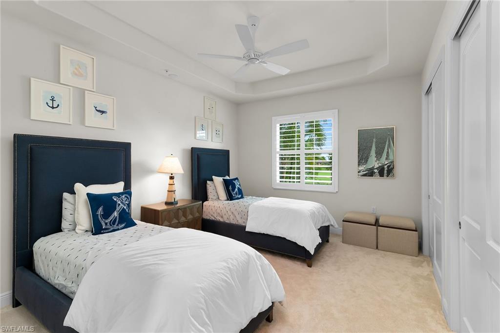 Live the Resort Lifestyle Every Day with a transferable FULL BEACH/SOCIAL MEMBERSHIP—bypassing the extremely long waiting list. Enjoy immediate daily access to the JW Marriott’s world-class amenities: club and spa privileges, complimentary parking, food and beverage discounts at Marriott properties, two stunning clubhouses, an incredible tiki bar with an exceptional chef, resort-style pool and hot tub, tennis, bocce, a full fitness center, and exclusive access to the Members-Only Cove. Beach days are effortless with five complimentary lounge chairs and an umbrella set up for you each visit at the JW Marriott. This is truly the ultimate coastal lifestyle package—ready for you on day one. Perfectly positioned between iconic 5th Avenue South and world-renowned Marco Island, this home offers unbeatable access to the best dining, shopping, beaches, and coastal experiences in Southwest Florida. Step inside this light, bright, beautifully maintained 3 Bedroom + Den, 2 Bath residence filled with natural Florida sunshine. Freshly painted throughout—including the two-car garage—this home features brand-new carpet, elegant plantation shutters on every window, NEW ROOFS and IMPACT WINDOWS, providing beauty, comfort, and peace of mind in all seasons. The kitchen shines with upgraded light-almond cabinetry, granite countertops, and GE appliances, opening seamlessly to a warm and welcoming dining and living space. The primary suite includes a custom wood-shelved walk-in closet, while both guest rooms feature upgraded closet shelving. A 2023 water heater, newly installed state-of-the-art smoke detectors, and elevator access add convenience and security. The laundry room offers upper cabinetry plus a Maytag washer and dryer for excellent everyday functionality. The showstopper is the expansive screened lanai delivering what is arguably the best view in the community—a sweeping panorama of the first hole framed by a wide, private green buffer for exceptional openness and privacy. Towering palms and lush landscaping create a serene, authentic Florida backdrop you’ll love coming home to. Immaculate, tastefully updated, and truly move-in ready—paired with full Social and Beach privileges and a prime location between Naples and Marco Island—this home offers one of the most complete and compelling lifestyle opportunities in the community.