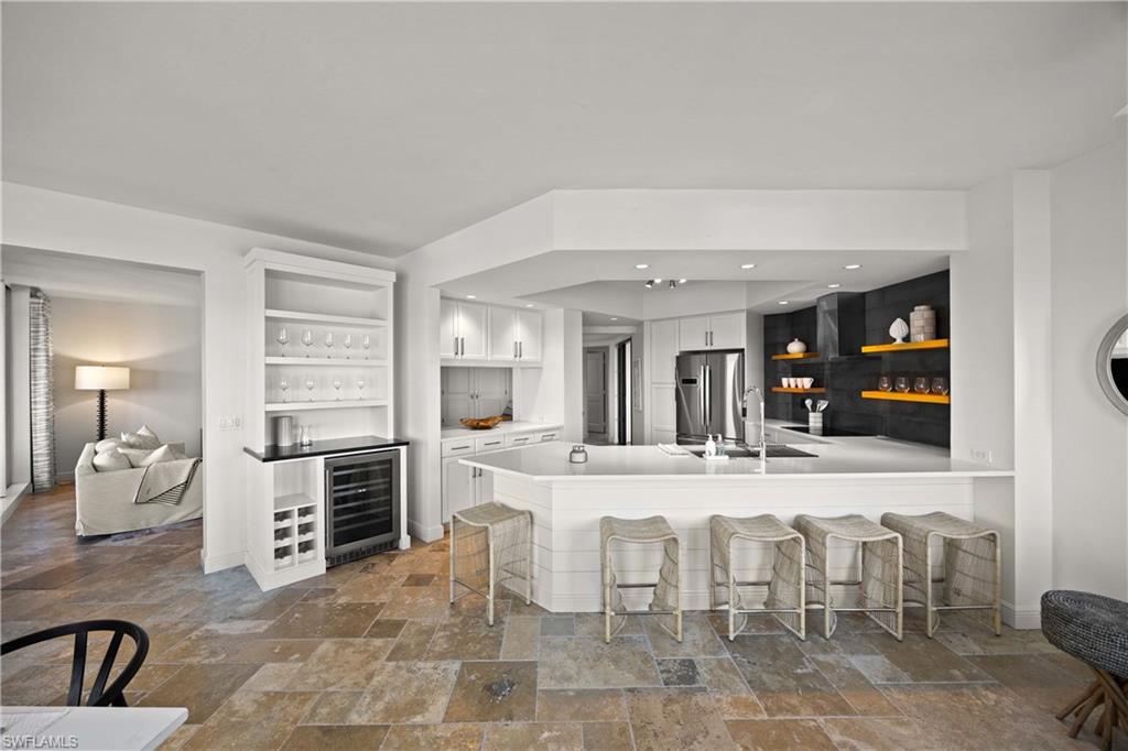 Step into a world of sophisticated luxury at Hammock Bay Golf & Country Club. This spectacular, professionally furnished 2,800-square-foot corner residence showcases exceptional design and sweeping panoramic views of the Gulf of Mexico, surrounding waterways, sparkling lakes, the championship golf course, and the iconic 10,000 Islands. A private, secured elevator opens directly into the residence, where you’re welcomed by a sophisticated blend of modern style and curated luxury. The fully renovated gourmet kitchen is a chef’s dream, featuring high-end Bosch appliances, a Wolf cooktop, organic white Caesarstone quartz countertops, floating shelves set against a concrete backsplash, a wine cooler, and elegant Clive Daniel bar stools. Every space in this home has been elevated with spectacular designer selections. Custom window treatments frame the remarkable views and enhance the serene ambiance throughout. The primary suite is a private retreat designed for complete relaxation, offering peaceful vistas and a beautifully appointed spa-like bath with custom countertops, a dual-sink vanity, a spacious walk-in shower, and custom closets by Closets by Design. Additional features include a new A/C system, 2020 water heater, new roofs, impact glass, and hurricane shutters—providing both modern comfort and peace of mind. The residence includes two secured parking spaces and a dedicated storage locker. Aversana’s luxury amenities are simply unmatched. Residents enjoy a newly remodeled grand lobby, resort-style pool and spa, theater, fitness center, sauna, locker rooms, guest suites, BBQ area, and an exceptional social room. The club’s Tiki bar offers the perfect spot for lunch or cocktails, and the pet-friendly environment adds to the welcoming community feel. Ideally located just minutes from Marco Island and a short drive to Olde Naples—with its world-famous beaches, upscale shopping, and fine dining—this residence offers an extraordinary lifestyle of elegance, convenience, and natural beauty.