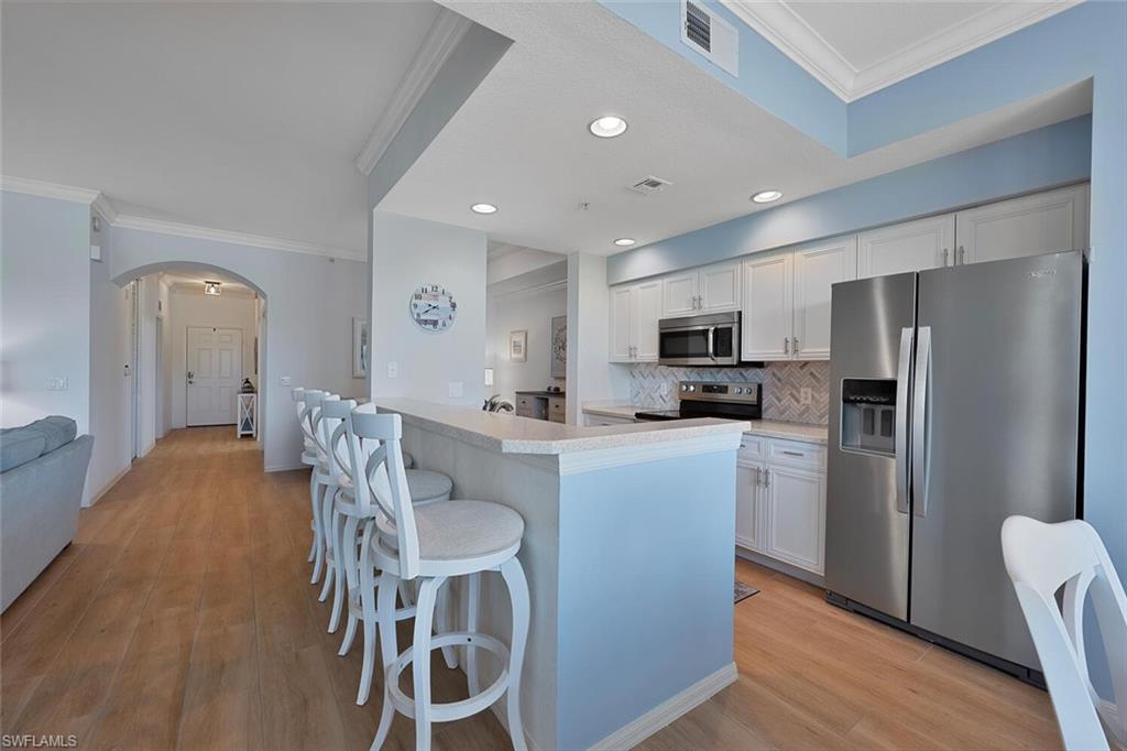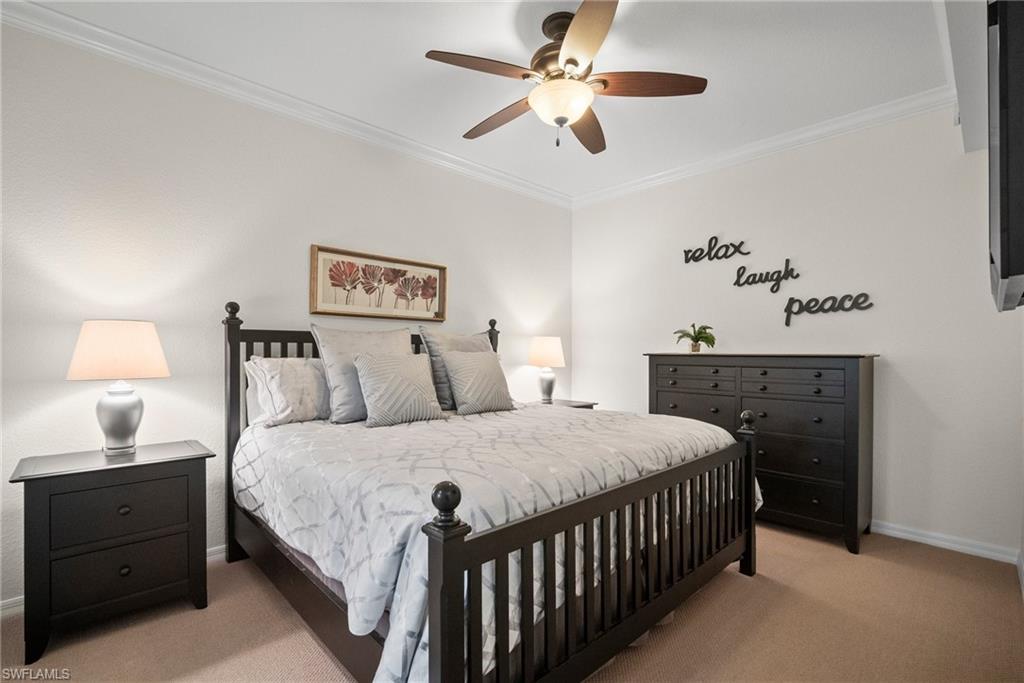Step into this beautifully appointed first-floor Brookside model in the prestigious Heritage Bay Golf & Country Club. Featuring all-new furniture, a new water heater, and a newer A/C, this 2-bedroom + flex space for office, 2-bathroom home is completely move-in ready for either full-time or seasonal residents looking for an Active lifestyle with access to world-class amenities at an affordable price. An extra storage closet is perfect for beach gear, while your covered parking adds convenience and peace of mind. With its ground-floor location, you’ll enjoy the ease of no stairs or elevator wait times. Take in sweeping views of the Cypress Tee #13 and 14th fairway, creating a serene backdrop for morning coffee or evening relaxation from your private lanai with a no-see-um screen offering protection from the outside. Life at Heritage Bay offers an unbeatable blend of luxury, recreation, and community. Your bundled golf membership includes access to 27 holes of championship golf, an aqua driving range, and full-service locker rooms. Stay active with an incredible tennis and pickleball program or enjoy bocce ball, and a full-service fitness center and a clubhouse with a sauna. Relax and recharge at the resort-style pool, one of the 5 satellite pools, or meet friends at the Cabana poolside bar and grill for a casual bite. The vibrant Grille Room features indoor and outdoor dining, plus a lively bar, while the community calendar of activities ensures there’s always something fun and social to enjoy. This home is the ideal blend of comfort, convenience, and a true resort lifestyle — making it a rare opportunity in one of Naples’ most desirable golf and country club communities. Once you have made Heritage Bay home, you will never want to leave, but when you do, you are just minutes away from top medical facilities, shopping, and dining. Come see why so many have chosen Heritage Bay as their home away from home!