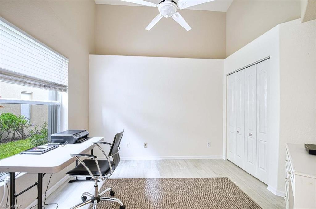 POOL HOME IN NORTH NAPLES FOR UNDER $500,000!!! Spacious 2 bedroom + den, 2 bathroom SINGLE FAMILY HOME has a NEW roof (2023). In the kitchen: QUARTZ countertops, glass tile backsplash and NEWER black stainless steel appliances. All tile and laminate flooring throughout (no carpet). The home is located in a quiet part of Ibis Cove with an amazing private landscaped and golf course view. Ibis Cove has FANTASTIC amenities that include: two lighted tennis courts (one of which has lines and nets for 2 PICKLEBALL courts), a playground, heated pool and spa with sundeck and an expansive clubhouse offering an exercise room, library, billiards room, card room, meeting room and kitchen. Ibis cove is located within "A" rated schools as well. Ibis Cove is only a SHORT drive to the NEW restaurants at Logan Landings and Founders Square. (Logan Landings is within walking distance). Only about a 15 – 20 minute drive to the FAMOUS restaurants and shopping at the Mercato and TWO of Naples finest beaches. ***** THERE ARE 2 VIRTUAL TOUR LINKS YOU CAN CLICK ON FOR MORE INFORMATION *****