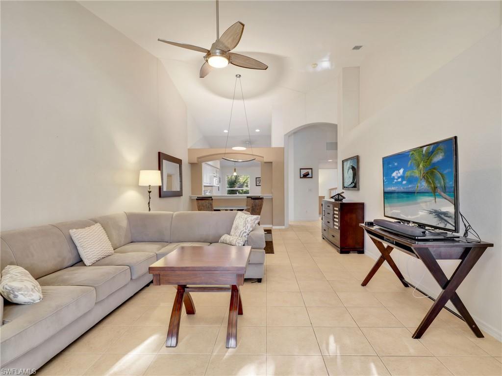 This beautifully maintained 3-bedroom, 2-bath villa in Ibis Cove is being offered turnkey furnished for your immediate enjoyment. NEW AC in 2025, NEW IMPACT GLASS on 3 Windows, Roof is 2018. Enjoy tranquil lakefront views from both the covered lanai, equipped with an accordion shutter for added security, and the expansive extended lanai, providing plenty of space for outdoor living and entertaining. Inside, volume ceilings create an open, airy feel, while the sunny kitchen offers a dining area, breakfast bar, granite countertops, and plenty of space for entertaining. The formal dining room flows seamlessly into the family room, providing an inviting space for entertaining and everyday living. Tile runs throughout the main living areas, with gorgeous new plank tile flooring in the guest bedrooms. The primary suite includes his-and-her closets and an en-suite bathroom for comfort and convenience. Additional highlights include a two-car garage and low HOA fees. Residents of Ibis Cove enjoy a newly renovated community center offering resort-style amenities, including a pool and spa, fitness center, tennis and pickleball courts, billiards, a card room, playground, and more. This vibrant and welcoming neighborhood provides plenty of opportunities to stay active, connect with neighbors, and enjoy a truly social lifestyle. Conveniently located in North Naples near I-75, top-rated schools, shopping, dining, entertainment, and just minutes from the beach, this pet-friendly community is perfect for enjoying everything Southwest Florida has to offer.