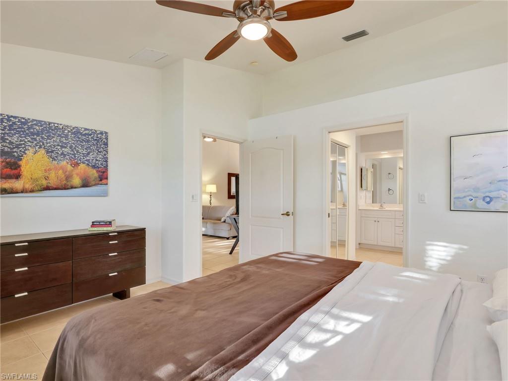 Gorgeous villa located in private, gated Ibis Cove boast stunning lake views and a private pool. This well maintained 3 bedroom, 2 bath home features soaring ceilings, ample natural light, tile flooring throughout the main living space, and much more. The spacious kitchen is complete with breakfast bar, eat-in dining area, beautiful counters, white cabinetry, stainless appliances, and pantry. The master suite is a private retreat with views of the pool and lake. The ensuite bath offers a spa-like atmosphere with walk-in shower and dual vanities. The additional 2 guest bedrooms provide plenty of space for friends or family. The living room opens to the screened lanai with covered seating area and large pool – all overlooking the picturesque lake. This is the perfect place to relax and unwind while enjoying the Florida sunshine. Ibis Cove offers many resort-style amenities including fitness center, tennis and pickleball courts, playground, heated pool and spa, clubhouse, and more. Ibis Cove is located in the heart of Naples, only a short drive to Naples’ pristine beach. Enjoy the convenience of all the nearby shopping, dining, and entertainment options. Make this magnificent lakeside villa your piece of paradise.