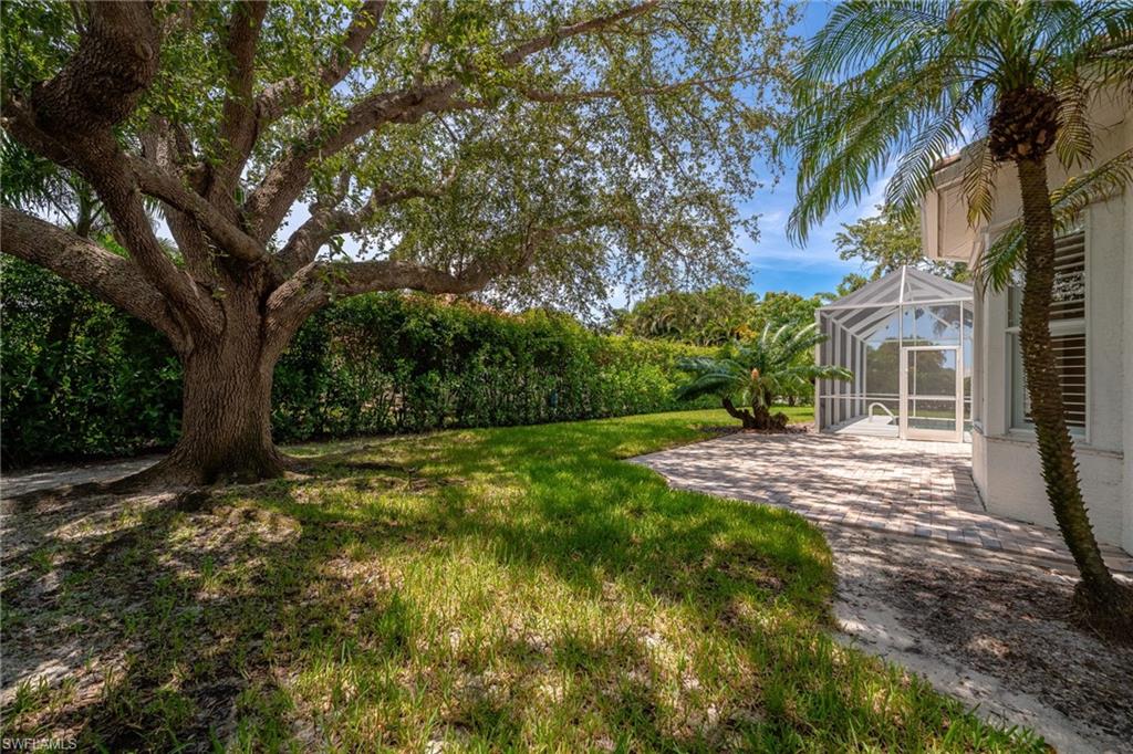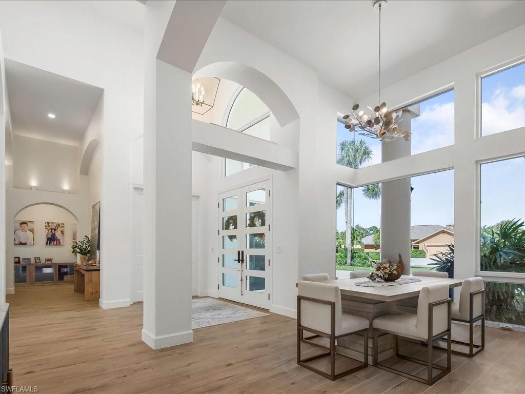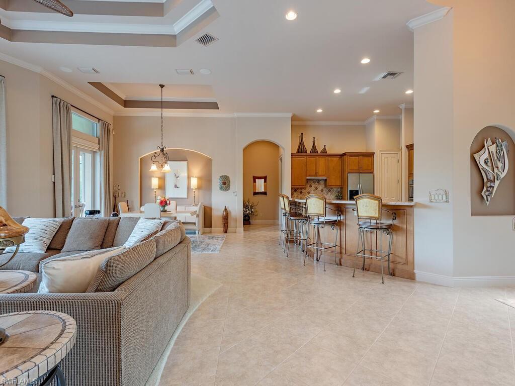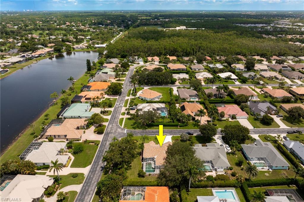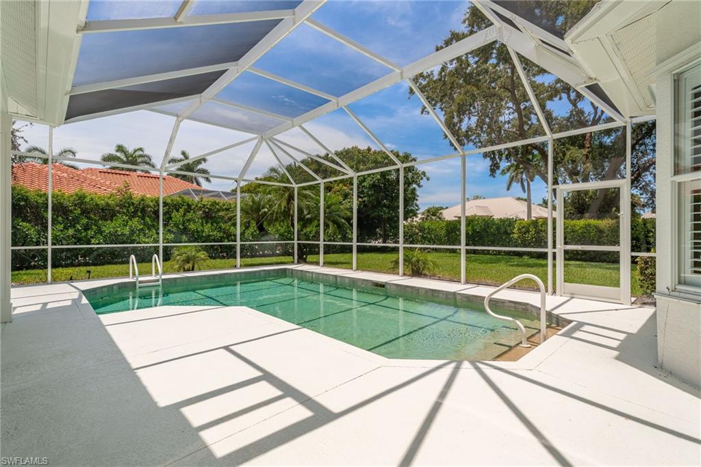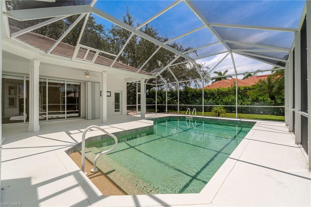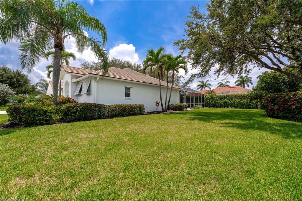 Unique & Rare opportunity .61 over half acre lot with golf & water views!! Take note most lots are only .30. Discover a harmonious blend of sophistication and serenity in this beautifully updated home. Be sure you click on Lifestyle video. The nearly 3,000 sq ft residence boasts breathtaking views of the lake and golf course. The inviting courtyard entrance makes a lasting first impression from the moment you arrive, setting the stage for the elegance that awaits inside. The grand entryway leads to the thoughtfully designed layout that is prime for entertaining and privacy, where every space exudes warmth and intimacy, from the formal living and dining rooms to the inviting family room with a cozy fireplace. A wet bar makes entertaining effortless, while the spacious kitchen inspires culinary creativity. Updates abound with wide-panel maple hardwood floors in every bedroom, custom porcelain and granite tile in the office, fully renovated bathrooms, a brand-new AC, and stylish recessed LED lighting with updated fixtures in the kitchen and baths. Three generously sized bedrooms, 2 1/2 baths and a versatile office space are strategically positioned for optimal privacy. The primary suite boasts a beautifully updated ensuite bath with a freestanding soaking tub, dual sinks, and a separate shower. Outdoor living is just as impressive. A sprawling screened lanai offers multiple lounging and dining areas, all overlooking the oversized pool. Recent updates—including brand-new tinted screening, a paved deck, and lush landscaping—enhance the ambiance of this serene retreat. Ideally located just minutes from Gulf beaches, shopping, and fine dining—with easy access to both US-41 and Livingston Rd. This exceptional home offers the perfect balance of tranquility and convenience. Schedule your private showing today!
