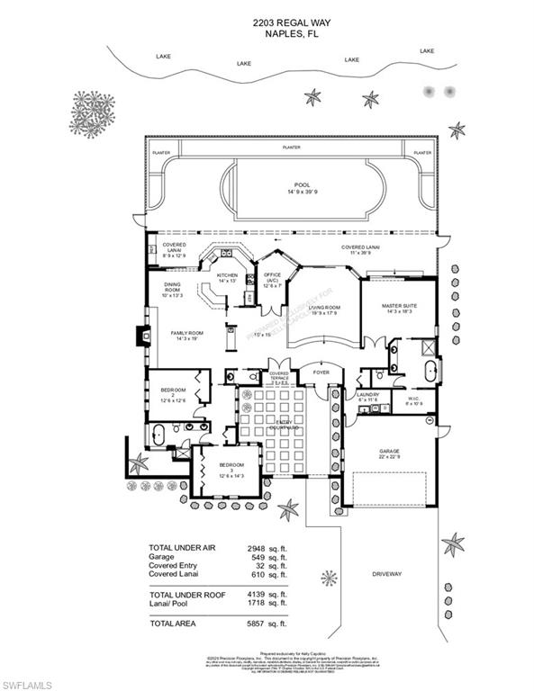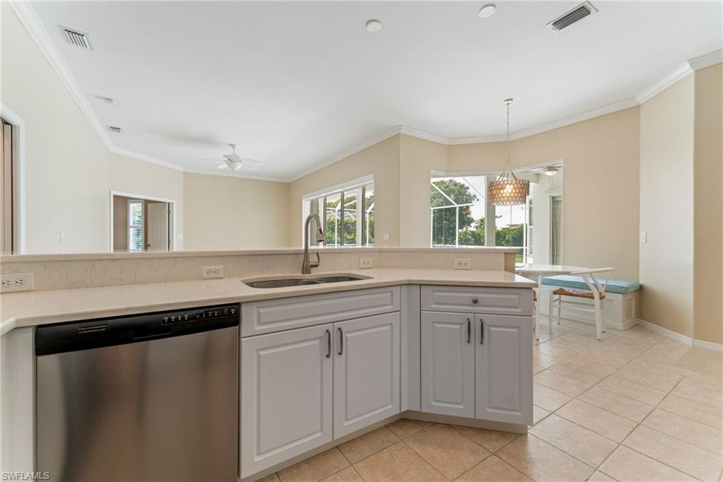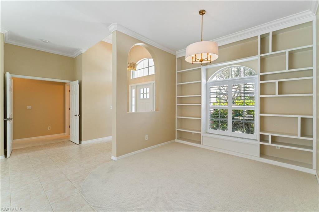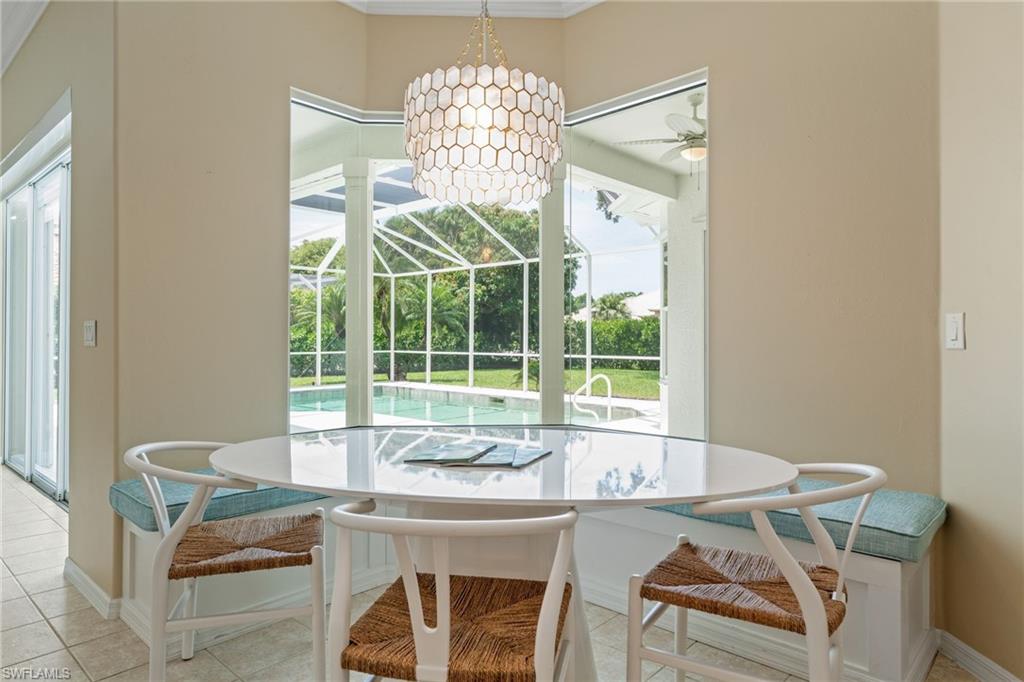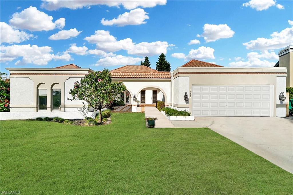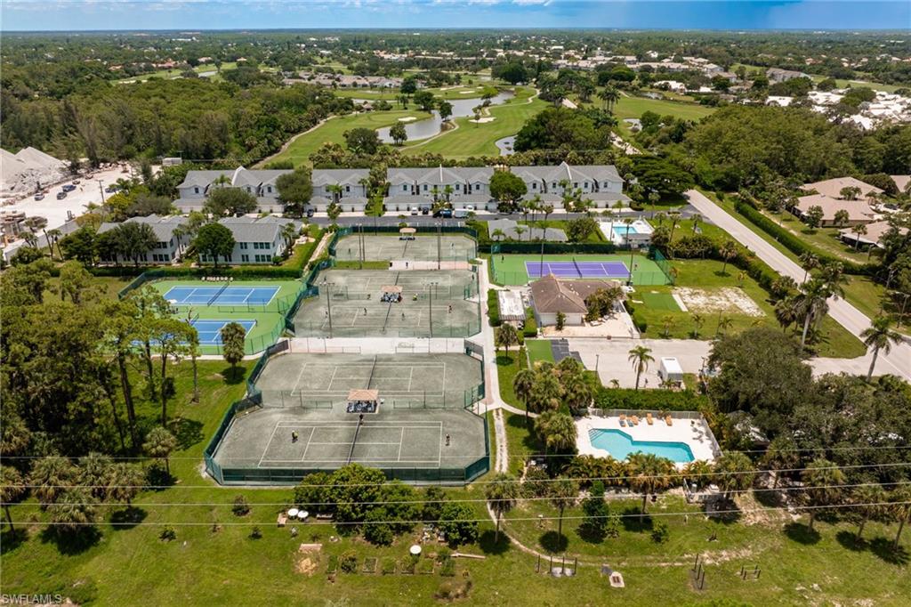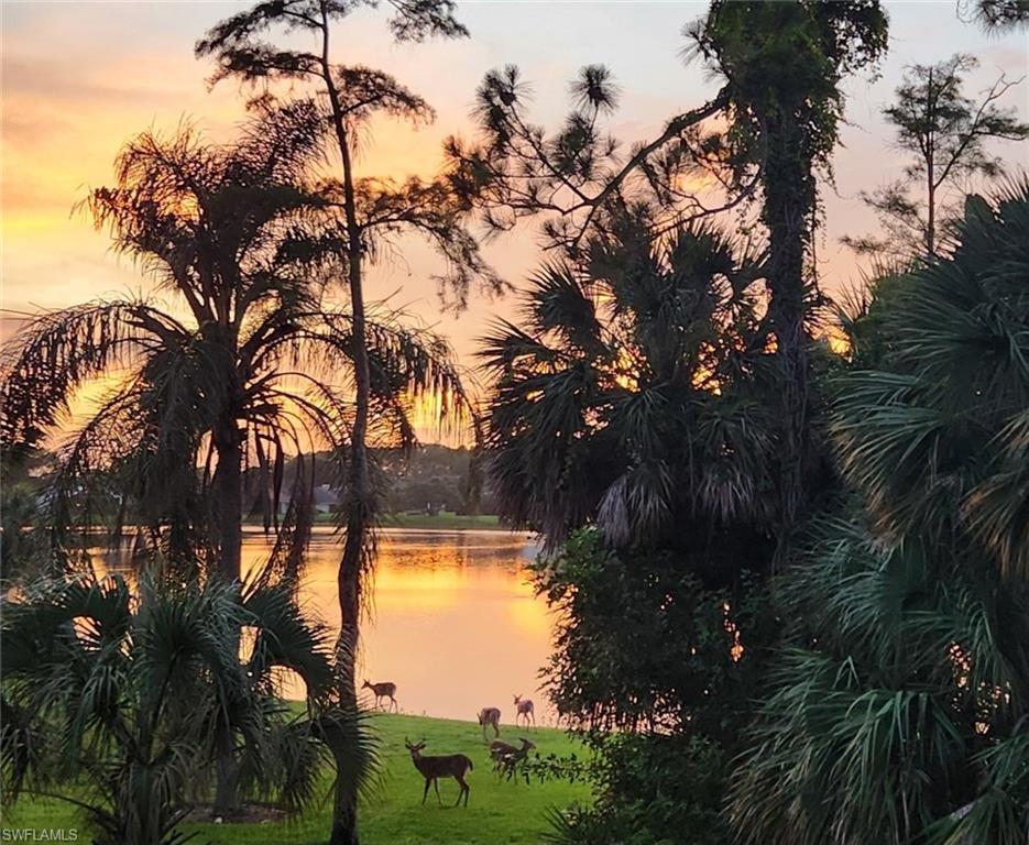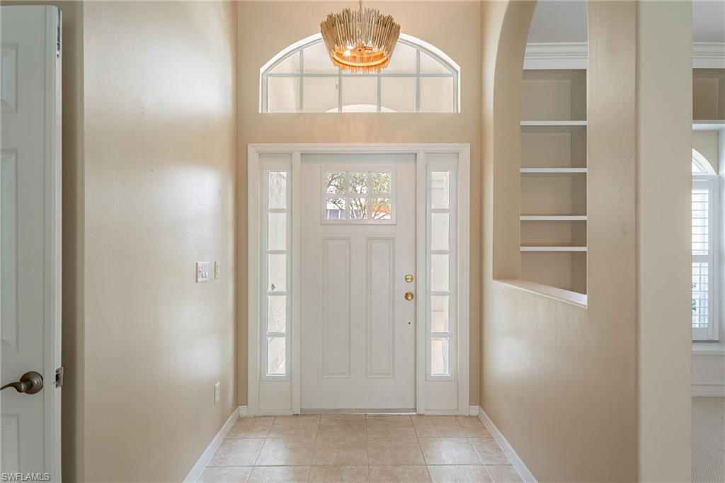 Unique & Rare opportunity .61 over half acre lot with golf & water views!! Take note most lots are only .30. Discover a harmonious blend of sophistication and serenity in this beautifully updated home. Be sure you click on Lifestyle video. The nearly 3,000 sq ft residence boasts breathtaking views of the lake and golf course. The inviting courtyard entrance makes a lasting first impression from the moment you arrive, setting the stage for the elegance that awaits inside. The grand entryway leads to the thoughtfully designed layout that is prime for entertaining and privacy, where every space exudes warmth and intimacy, from the formal living and dining rooms to the inviting family room with a cozy fireplace. A wet bar makes entertaining effortless, while the spacious kitchen inspires culinary creativity. Updates abound with wide-panel maple hardwood floors in every bedroom, custom porcelain and granite tile in the office, fully renovated bathrooms, a brand-new AC, and stylish recessed LED lighting with updated fixtures in the kitchen and baths. Three generously sized bedrooms, 2 1/2 baths and a versatile office space are strategically positioned for optimal privacy. The primary suite boasts a beautifully updated ensuite bath with a freestanding soaking tub, dual sinks, and a separate shower. Outdoor living is just as impressive. A sprawling screened lanai offers multiple lounging and dining areas, all overlooking the oversized pool. Recent updates—including brand-new tinted screening, a paved deck, and lush landscaping—enhance the ambiance of this serene retreat. Ideally located just minutes from Gulf beaches, shopping, and fine dining—with easy access to both US-41 and Livingston Rd. This exceptional home offers the perfect balance of tranquility and convenience. Schedule your private showing today!
