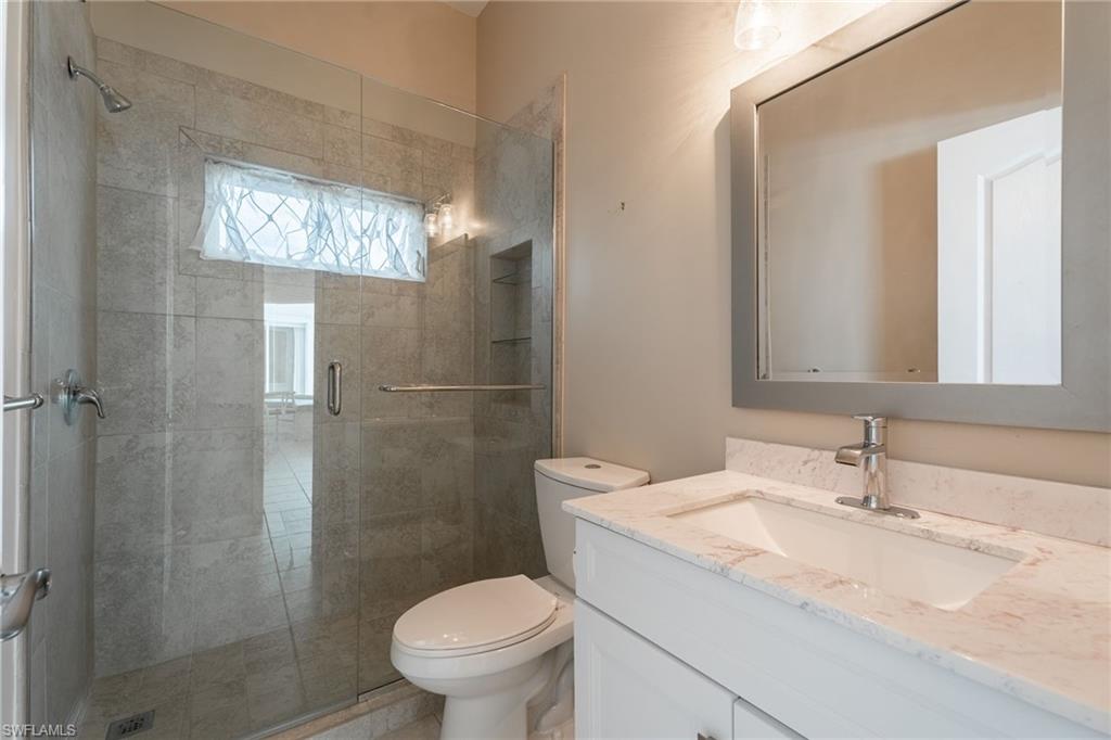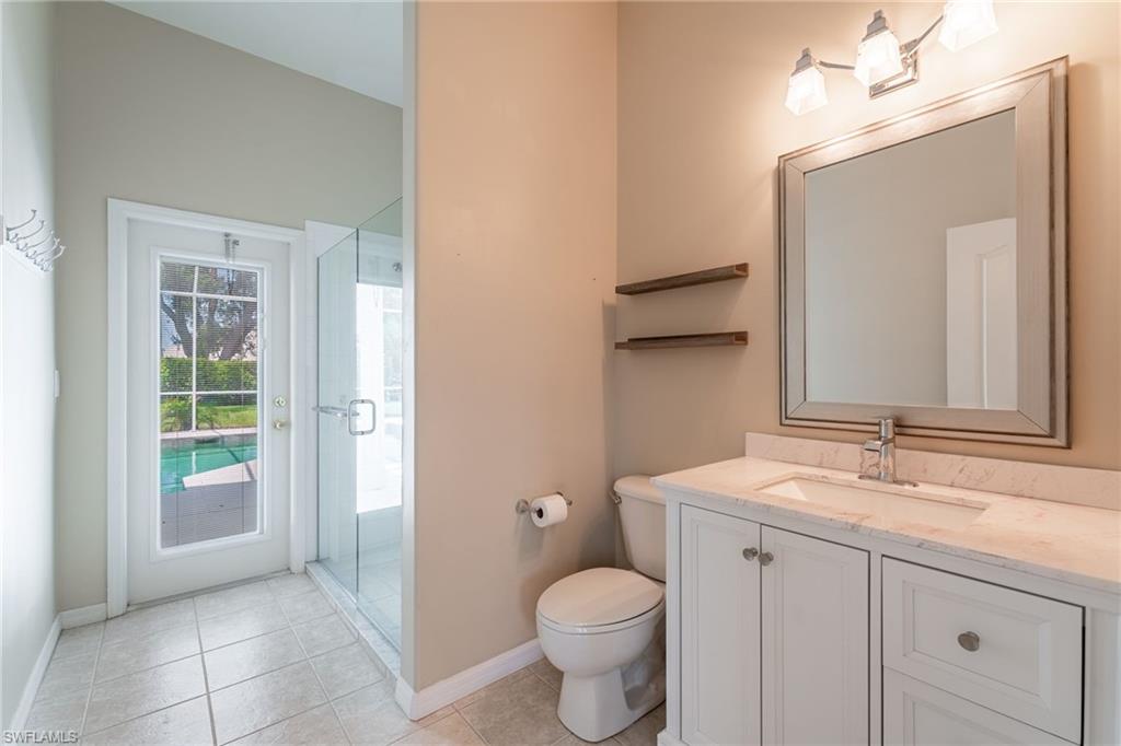 This beautifully redesigned home is nestled on an oversized lot in the highly sought-after Imperial Golf Estates, offering approximately 2600 sq. ft. of living space with 3 bedrooms and 2½ bathrooms. Originally built in 1988, the residence has been fully renovated between 2022–2025 with premium upgrades for modern living and peace of mind. From the moment you step inside, soaring vaulted ceilings and a wall of French doors fill the interior with natural light, creating a bright and airy ambiance. Neutral tones and clean architectural lines provide a timeless backdrop that complements any style of décor. The well-appointed kitchen boasts custom cabinetry, double oven, propane cooktop, serving counter, and solid-surface countertops, seamlessly connecting to a casual dining area. A convenient powder bath serves guests with ease. The master suite is a true retreat, featuring dual walk-in closets, a tray ceiling, and a beautifully updated en-suite bath. One guest suite is oversized and offers a private en-suite bath with direct pool access—perfect for family or visitors seeking privacy. Outdoor living is at its finest with a brand-new oversized pool (lap and regular) with a sun deck, expansive paver lanai, covered patio for shaded entertaining, and lush tropical landscaping that enhances privacy. The spacious lot provides room for children and pets to play, complemented by a new fenced yard and turf. Additional highlights include an elegant circular drive, side-load garage with utility/storage space, and a lanai storage closet. This home is equipped with exceptional upgrades: all new hurricane-rated windows and doors, roll-down shutters for the front and rear, roll-down lanai screen, standing seam metal roof, solar system, new insulation, new A/C with ductwork, dual tankless water heaters (one propane, one electric), new Pex plumbing and fixtures, upgraded cabinetry and lighting, and a 24kW Generac standby generator with a 750-gallon buried propane tank powering the entire home, including the pool. Modern security is in place with a Ring camera system, ensuring peace of mind. Truly move-in ready, this home blends timeless design with today’s most sought-after features—an exceptional opportunity in one of Naples’ most desirable communities. Images feature digital staging for visualization purposes only; property is unfurnished.