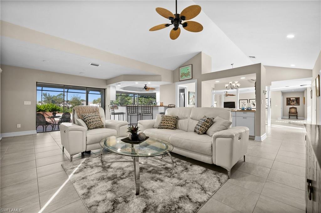 Exceptional 5 Bedroom Home in Imperial Golf Estates! Ideally located near the Owner’s Gate off Livingston, this stunning single-family home offers 5 spacious bedrooms, 3 well-appointed bathrooms, and a 3-car garage for all your vehicle and storage needs. Soaring 12-foot ceilings, a split floor plan, and a neutral palette that complements any style make this home both comfortable and functional. The open-concept layout showcases zero-post pocket sliders, creating seamless indoor-outdoor living, while the large kitchen boasts granite countertops and high-end appliances. Wood-look tile flooring throughout combines elegance with easy maintenance, and the in-ground pool and expansive lanai offer a private outdoor retreat perfect for relaxing or entertaining. The fifth bedroom is currently being used as a media room/office, offering flexibility to suit your lifestyle needs. Located in the prestigious Imperial Golf Estates, just minutes from beaches, dining, and top-rated schools. Golf membership is optional. Don’t miss this incredible opportunity to own in one of North Naples’ most desirable gated communities!