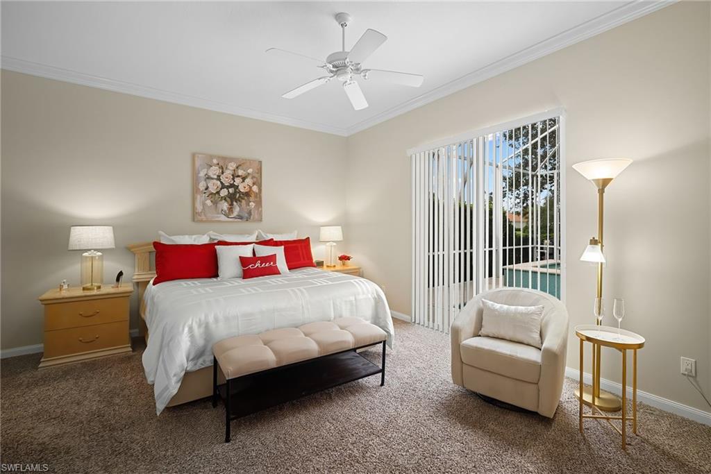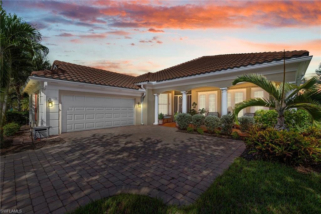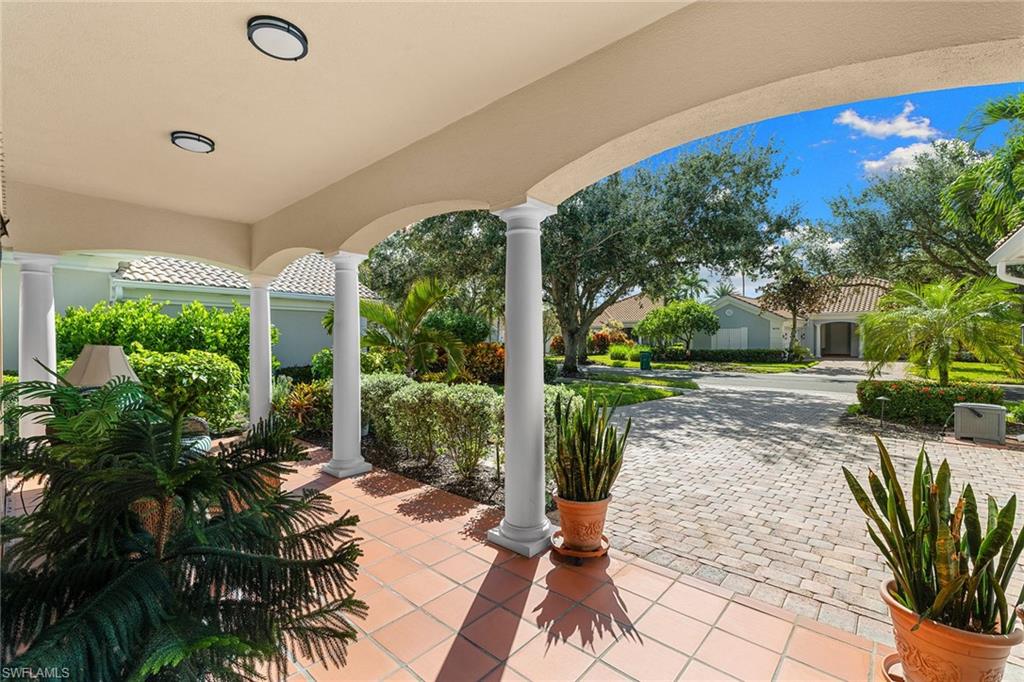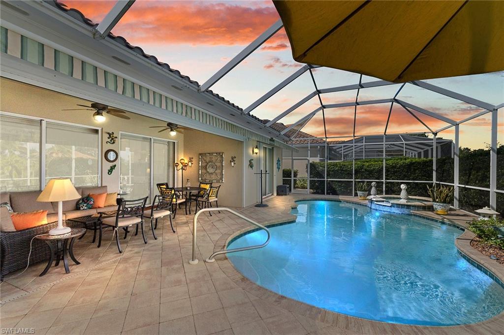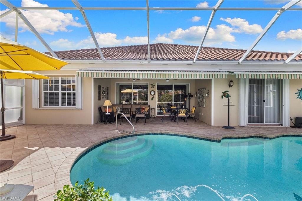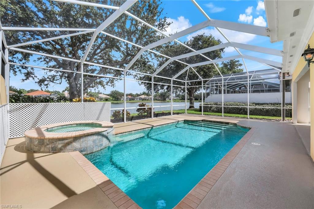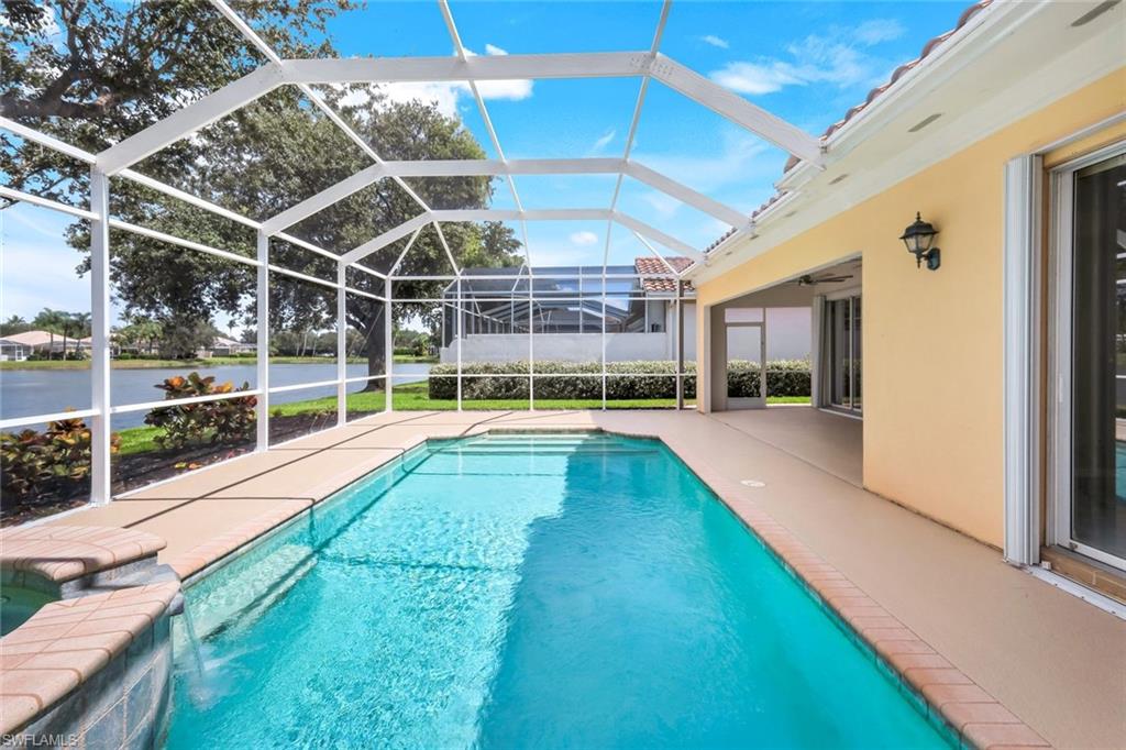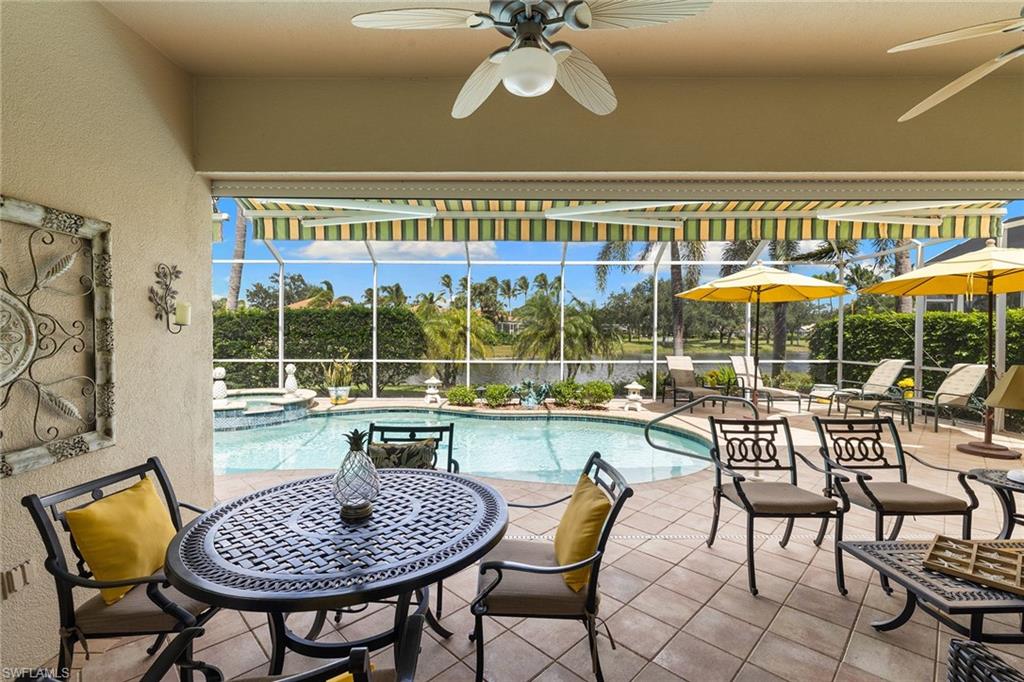 This exquisite home offers a perfect blend of classic sophistication and comfort, combined with the vacation lifestyle you've been dreaming of. Step onto the charming Southern-style front porch and into a thoughtfully designed 2,500+ sq. ft. Carlyle floor plan home featuring 4 bedrooms and 3.5 baths, providing plenty of space for you and your guests. Outside, the screened lanai invites you to relax by the sparkling pool, complete with a charming dolphin fountain and a new pool pump. An electric, retractable awning adds additional space beyond the covered lanai, offering plenty of shade for those warm Florida days. Enjoy stunning lake views and breathtaking sunsets as you entertain or unwind in your private backyard oasis, surrounded by lush, tropical landscaping. Inside, the home offers a well-defined floor plan, with a formal living room, spacious family room, and a beautifully appointed kitchen with a separate morning room for casual dining. The formal dining room provides an elegant setting for meals. The kitchen has been updated with gorgeous quartz countertops, a new deep stainless sink, new faucet, newer microwave, and new hardware. The owner's suite is a true retreat, offering easy access to the pool, generous closet space, and a true his-and-her bath with dual vanities, tumbled marble counters, a walk-in shower, and a soaking tub. Luxury touches throughout the home include plantation shutters or shades on all windows, crown molding, decorator lighting, new ceiling fans inside and out, new exterior lighting, professionally painted interior, and built-in closets that enhance both convenience and style. The finished laundry room features a new Samsung washer and dryer, cabinets, and a utility sink. With a brand-NEW ROOF just installed and a newer A/C, this residence provides a worry-free lifestyle for years to come. Storm prep is simple with accordion shutters and electric roll-down shutters. Located in Island Walk, a vibrant, amenity-rich community with a variety of recreational options to fit your lifestyle. The Town Center includes a large resort pool, lap pool, fitness center, tennis courts, pickleball, bocce courts, and a restaurant, along with everyday conveniences like a gas station, post office, and hair & nail salon. Take advantage of miles of scenic walking paths, complete with picturesque bridges over sparkling lakes, all while being centrally located in Naples, close to shopping, dining, and beaches. This home offers the perfect opportunity to enjoy the relaxed, resort-style living you've been dreaming of. Move in and start living the idyllic lifestyle that Naples has to offer!