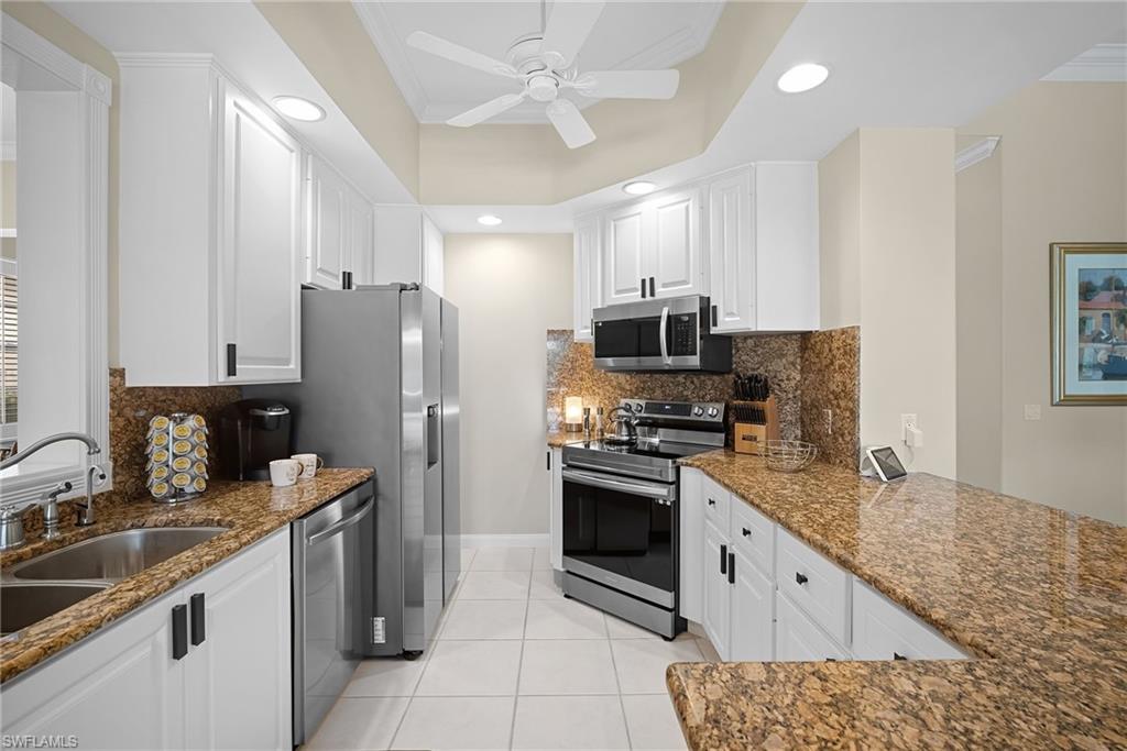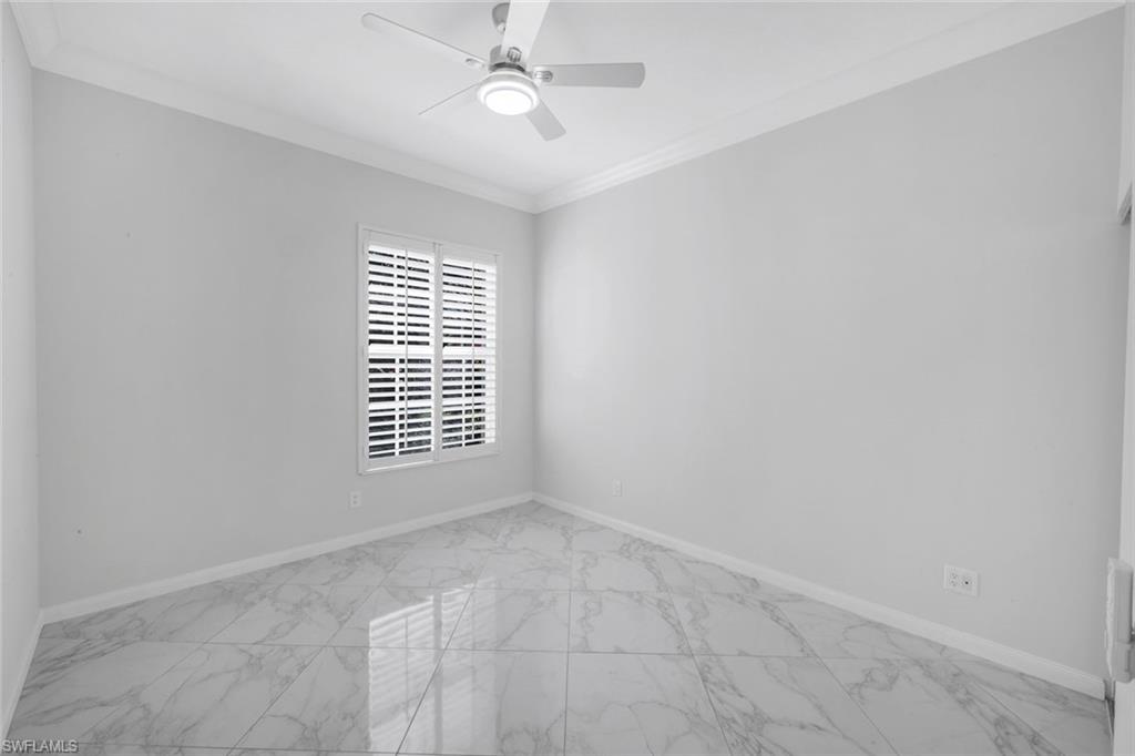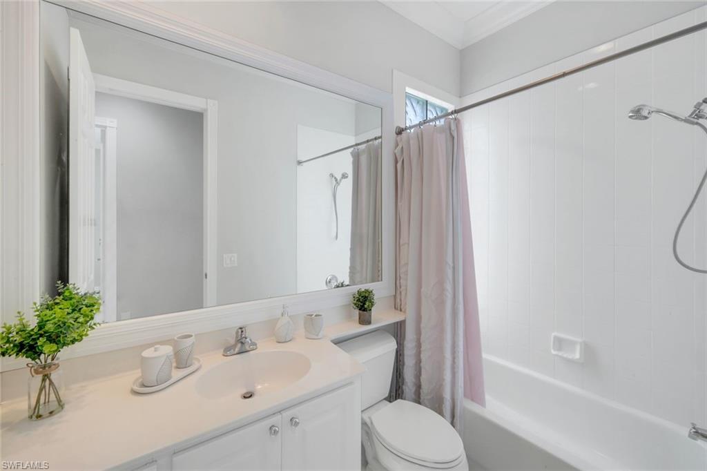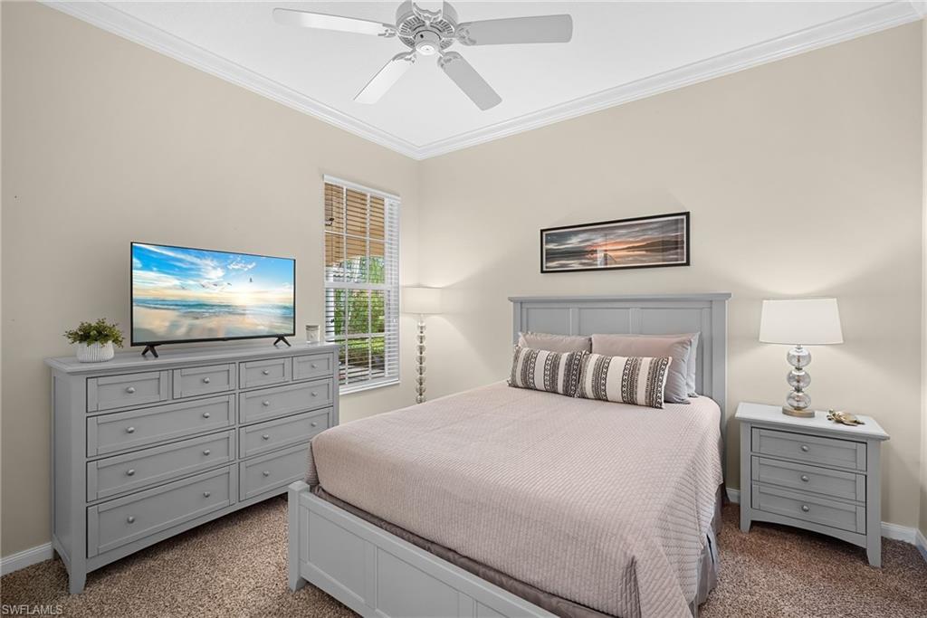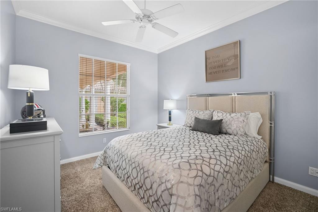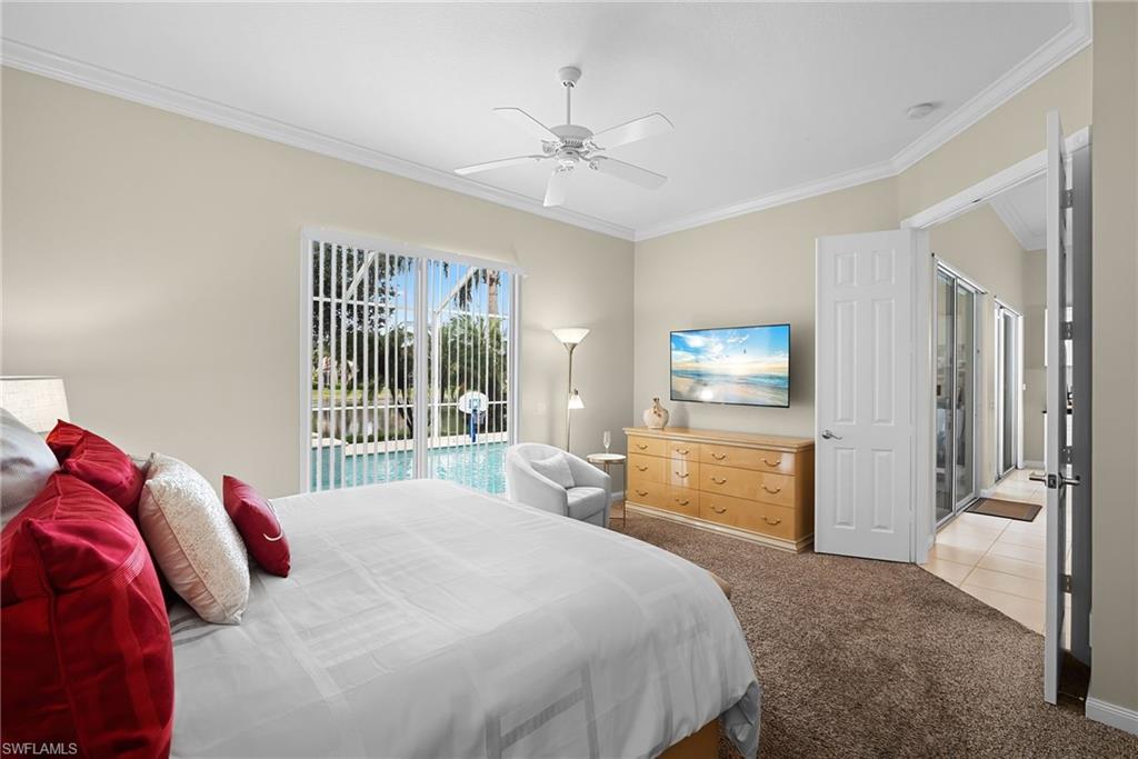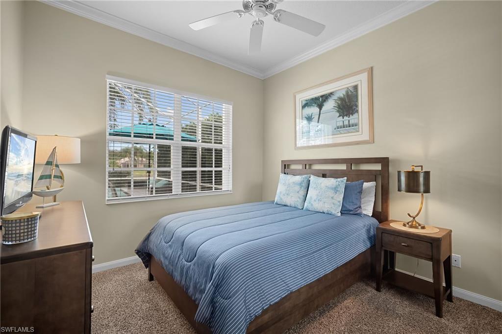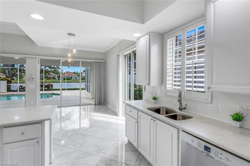 This exquisite home offers a perfect blend of classic sophistication and comfort, combined with the vacation lifestyle you've been dreaming of. Step onto the charming Southern-style front porch and into a thoughtfully designed 2,500+ sq. ft. Carlyle floor plan home featuring 4 bedrooms and 3.5 baths, providing plenty of space for you and your guests. Outside, the screened lanai invites you to relax by the sparkling pool, complete with a charming dolphin fountain and a new pool pump. An electric, retractable awning adds additional space beyond the covered lanai, offering plenty of shade for those warm Florida days. Enjoy stunning lake views and breathtaking sunsets as you entertain or unwind in your private backyard oasis, surrounded by lush, tropical landscaping. Inside, the home offers a well-defined floor plan, with a formal living room, spacious family room, and a beautifully appointed kitchen with a separate morning room for casual dining. The formal dining room provides an elegant setting for meals. The kitchen has been updated with gorgeous quartz countertops, a new deep stainless sink, new faucet, newer microwave, and new hardware. The owner's suite is a true retreat, offering easy access to the pool, generous closet space, and a true his-and-her bath with dual vanities, tumbled marble counters, a walk-in shower, and a soaking tub. Luxury touches throughout the home include plantation shutters or shades on all windows, crown molding, decorator lighting, new ceiling fans inside and out, new exterior lighting, professionally painted interior, and built-in closets that enhance both convenience and style. The finished laundry room features a new Samsung washer and dryer, cabinets, and a utility sink. With a brand-NEW ROOF just installed and a newer A/C, this residence provides a worry-free lifestyle for years to come. Storm prep is simple with accordion shutters and electric roll-down shutters. Located in Island Walk, a vibrant, amenity-rich community with a variety of recreational options to fit your lifestyle. The Town Center includes a large resort pool, lap pool, fitness center, tennis courts, pickleball, bocce courts, and a restaurant, along with everyday conveniences like a gas station, post office, and hair & nail salon. Take advantage of miles of scenic walking paths, complete with picturesque bridges over sparkling lakes, all while being centrally located in Naples, close to shopping, dining, and beaches. This home offers the perfect opportunity to enjoy the relaxed, resort-style living you've been dreaming of. Move in and start living the idyllic lifestyle that Naples has to offer!