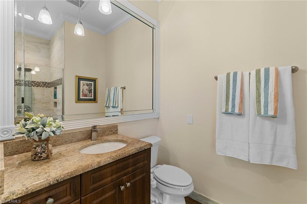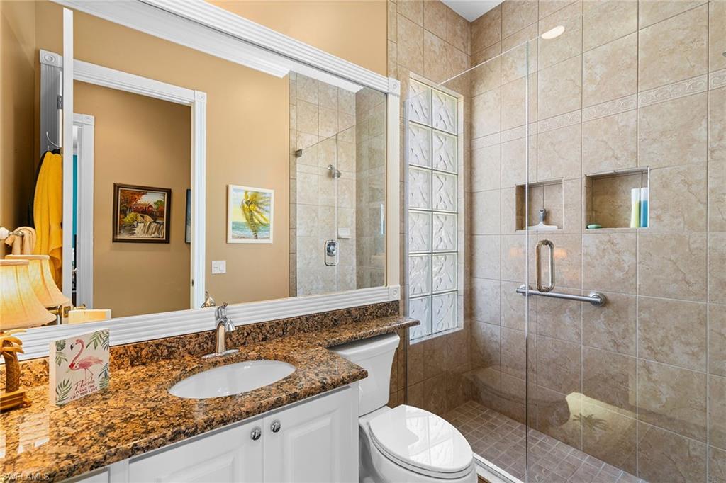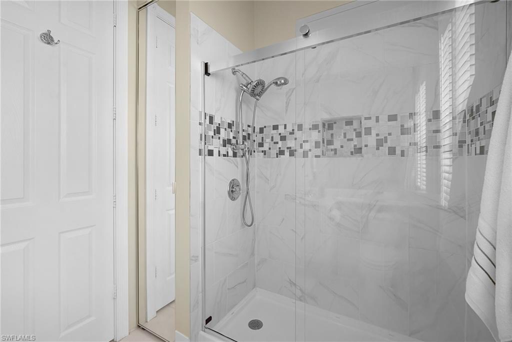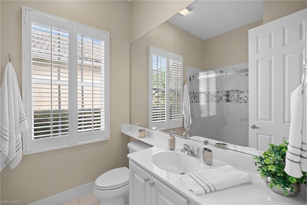 ISLAND WALK is one of the most highly sought after, full amenity communities Naples has to offer. This beautifully upgraded Oakmont model spreads over 2,181 square feet of living space with three bedrooms plus a den, three bathrooms, and an inviting saltwater pool overlooking the lake, and sits on the 2nd shortest cul-de-sac in the community. The home features OVER $100,000 in UPGRADES, including a PAID-OFF SOLAR SYSTEM that keeps the electric bill around $25 per month, with some months generating a credit from FPL. When you step inside, you’re greeted by the spacious living room, as your eyes are drawn to the serene lake view. High ceilings and natural light welcomes you home. The quality this home exudes is impressive. Inside, the kitchen is designed for those who love to cook, bake, and entertain, showcasing a custom designed oversized baker’s bar, wine cooler, double ovens, stainless steel appliances, slide-outs in the cabinetry, and ample counter space. There’s room for more than one chef in this kitchen. The primary suite features a unique bathroom layout with two separate bathrooms sharing a large walk-through shower, along with an upgraded Toto toilet, a large soaker tub, updated counters & fixtures and a separate vanity for her. The walk-in closet is spacious, but the hall is lined with closet space as well offering plenty of room for his clothes too. The den provides flexibility for an office or hobby room, while the laundry room includes built-in cabinets, a sink, and added storage. The guest quarters have their own wing of the house and include an updated bathroom as well. Additional upgrades include hurricane-rated windows and doors (with shutters for the kitchen door and one garage window), smart locks on all doors, epoxy flooring in the two-car garage with a built-in air compressor, a commercial-size water heater, and a full-house water filtration system. The home is located on the hospital electric grid—providing quick restoration of power during outages. Enjoy the screened saltwater pool with heater and pump replaced in 2020, perfect for relaxing with tranquil water views. 1-YEAR HOME WARRANTY INCLUDED for your peace of mind. Island Walk is a gated community known for its beautifully landscaped surroundings and resort-style amenities, including a Town Center with a restaurant, Casa Cotzelli, gas station, nail salon, hair salon, car wash, post office, fitness center, tennis and pickleball courts, bocce, lap pool, resort pool, and Venetian style scenic walking bridges throughout the neighborhood. Plus planned community activities to choose your level of socialization and activity. This ranks as one of the most desirable places to live in the country! Lawn maintenance, cable, and internet are all included in the HOA fees, allowing residents to fully enjoy the Naples lifestyle.