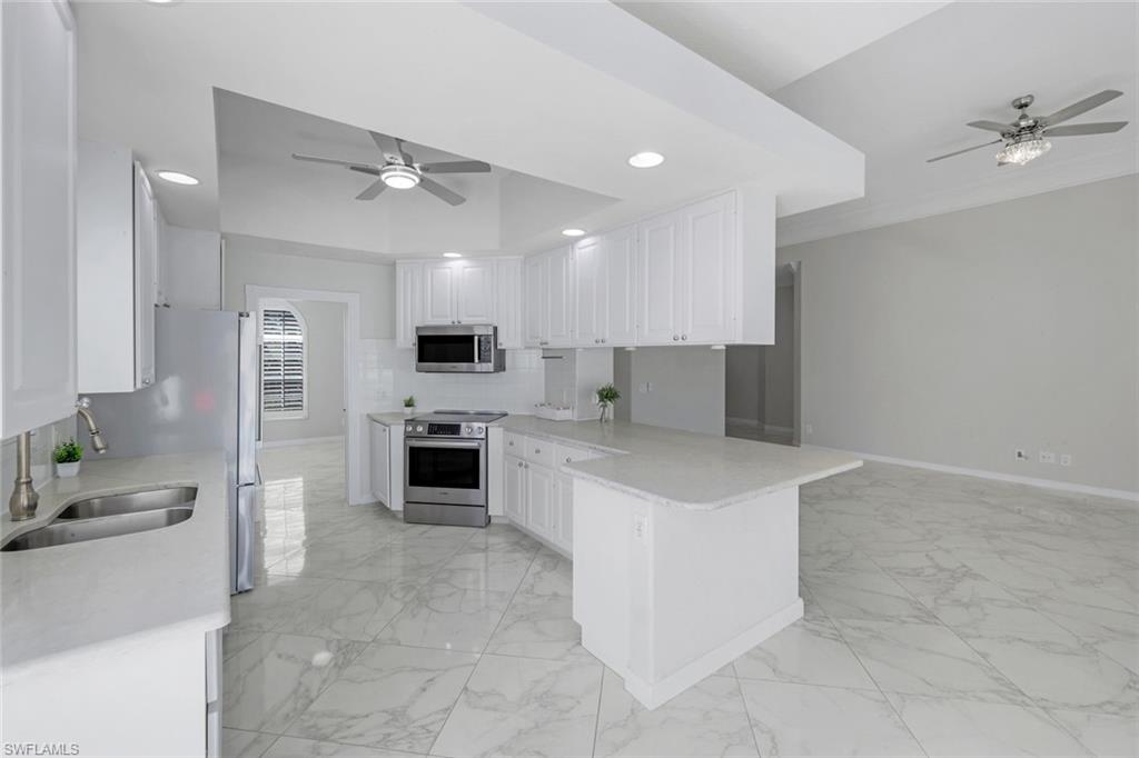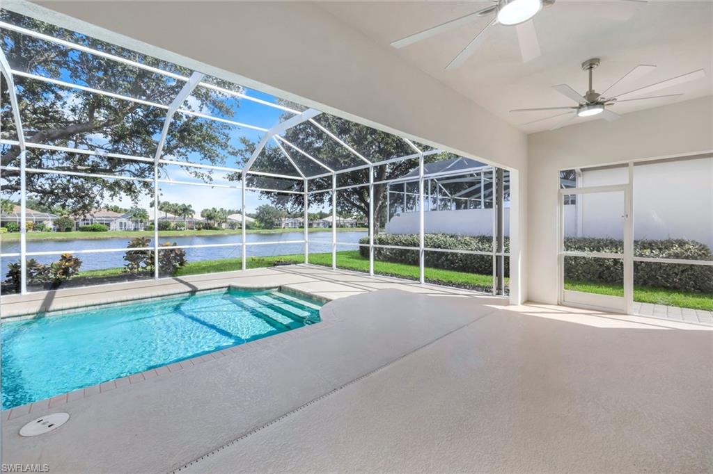 Located in the sought after community of Island Walk this beautiful three bedroom, three bath, plus den or office home offers over 2,000 sq ft of open concept living. Great for relaxing and entertaining. The home invites everyone to the private screened pool and patio. What a view! Sliding glass doors allow the natural light throughout the home. Please note this house has been completely renovated. NEW ROOF 2024/ NEW Flooring/NEW POOL EQUIPMENT/ NEW PAINT throughout. All new ceiling fans in every room and decorative lighting. The Kitchen, baths, and laundry all have new beautiful luxury countertops. Even the 2 car garage has new poly flooring. This home is ready for your own personal decorative touches. Amenities in this community include resort-style and lap pools, bocce courts, a putting green, lawn bowling, croquet, a fitness center, clubhouse, tennis courts, and pickleball courts along with a full calendar of social events at your leisure. The community also features a Town Center with a post office, bank, cafe, gas station, car wash and more... This lifestyle offers the discerning buyer everything right in your own community. Don't miss out on this fantastic home. All offers will be considered. Call and schedule your private showing today and live this amazing resort lifestyle.