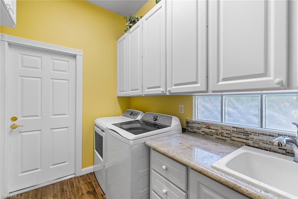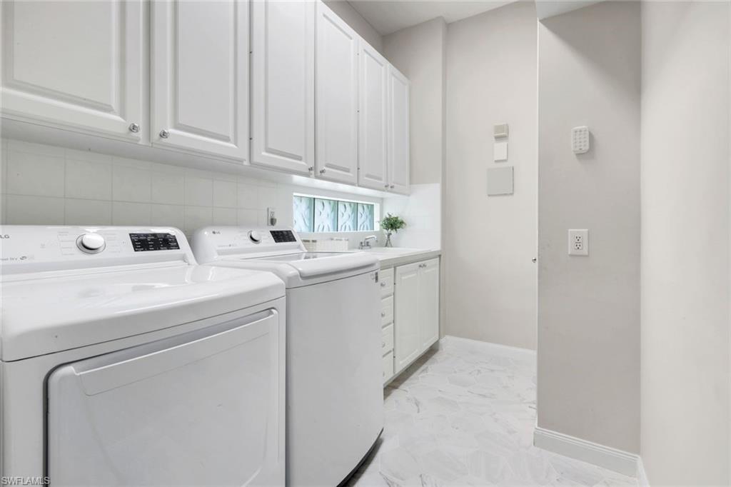 This home will make you the envy of all your neighbors with its extraordinary floor plan improvements and upgrades! Spacious and magnificent, this home strikes a tone. It’s one of a kind. Completely renovated Carlyle pool home features a custom, high-end chef's kitchen featuring self-closing cabinets, quality stainless steel appliances, large flat top granite countertops, large island and it lends itself to the ultimate modern, open floor plan. This home boasts custom, travertine stone flooring throughout and onto the lanai, and is nicely complemented by hardwood bamboo flooring in the flex room and primary bedroom. Crown molding, surround sound and custom cabinets fine-tune your place in the sun. Granite tops in all baths, additional custom side patio off the kitchen with awning. An extra wide driveway further serves your convenience as upgrade. New roof in 2019. New wall oven and new dishwasher in 2018. New refrigerator in 2019. New cooktop in 2019. New washer and dryer in 2021.