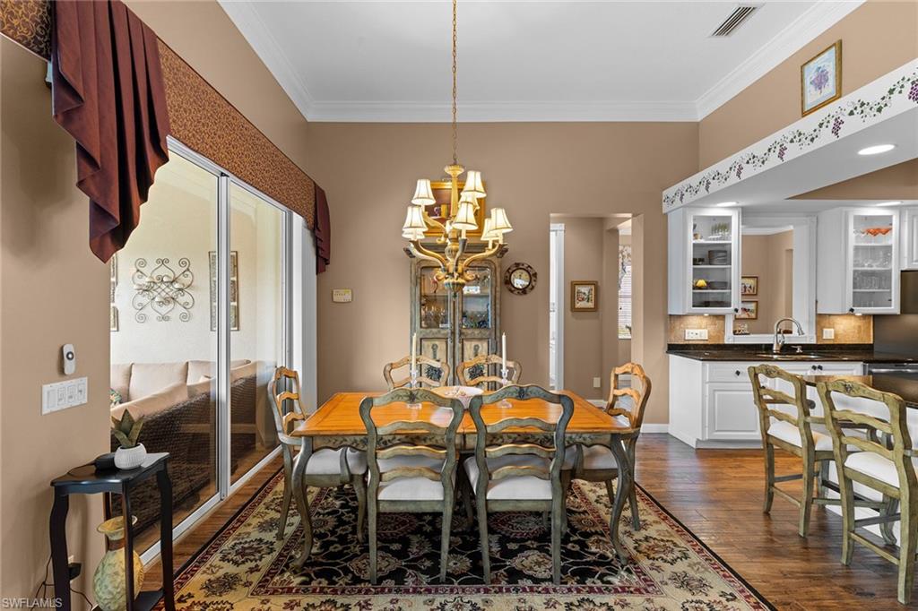 Welcome Home to the elegance, beauty and warmth of your turnkey home at 2888 Hatteras Way! This beautiful 4 bedroom/3.5 bath Carlyle model, nestled in the vibrant and active community of Island Walk, exudes elegance and Florida charm. Step inside the sophisticated living room with floor to ceiling windows with custom millwork and plantation shutters. The warm wood tones of the flooring is both inviting and functional. The large dining room is perfect for family gatherings. Make way to the great room and kitchen, with an informal eating area and service buffet with wine fridge and wonderful additional cabinet storage. The kitchen has been updated with granite countertops and new stainless steel appliances. Wraparound L-shaped island allows for ample breakfast bar seating. Sit back and relax in the family room that has a beautiful floor to ceiling entertainment center. An updated lanai and pool(2018) is a true showstopper! With glass surround tile, LED pool lights, sunshelf and hot tub, you will never want to leave this oasis! The large lanai has a built in grill and mini fridge, perfect for relaxing or entertaining family and friends and watching the big game! There is also a retractable awning for shade on those sunny days. West facing, the lanai is the perfect place to enjoy the beautiful Florida sunsets. Head through the double doors that lead to the master bedroom with newer carpeting and a slider for private access to the spectacular pool and lanai. Two spacious closets with custom built ins allow you to display all your purses and shoes! The bathroom is ingenious layout with his and her vanity sections as well as separate makeup vanity section and dual entry shower. The right wing of the home houses an additional full bath with updated custom tiled frameless glass shower door and hand held shower attachment. The left wing of the home accesses the additional 2 bedrooms and a third full bathroom. The laundry room has a laundry tub, newer washer and dryer, clothes rack and plenty of cabinet storage. From the laundry room, walk into the garage that has new epoxy flooring. Island Walk is one of the most walkable and amenity rich communities in North Naples, you will never want to leave! Fully renovated clubhouse, fitness center, community pool and lap pool, tennis, pickle ball, bocce, gas station, salon, post office putting greens, and the newly updated Casa Cotzelli Italian restaurant, Island Walk is resort living at your finger tips! The community offers convenience and security peace of mind with a 24 hour manned gate and on site management. Island Walk is minutes from the beautiful gulf beaches of Southwest Florida, highway access, Mercato, shopping and award winning restaurants. 2888 Hatteras is turnkey! Just unpack your bags and begin to live the good life! Welcome HOME!!