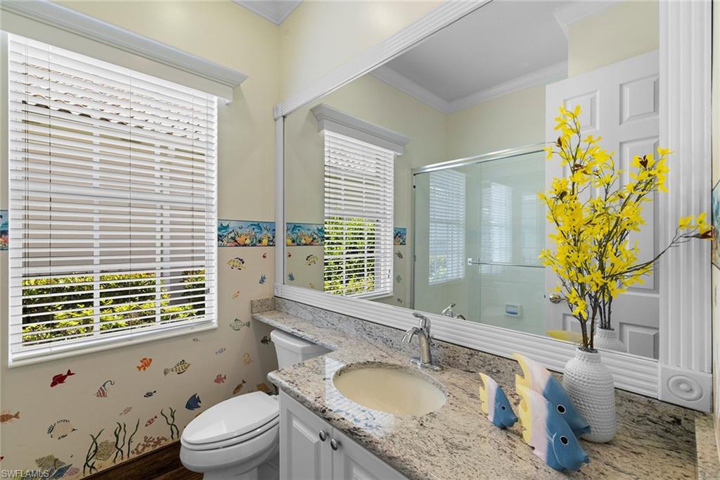 This beautiful Devosta built Carlyle home has been meticulously maintained with many updates and modifications that make it a highly desirable home. This 4 bedroom, 3.5 bath home features beautiful hardwood laminate flooring in the bedrooms and newly re-grouted tile throughout the rest of the floor plan. You will love the custom landscaping designed to provide not only year round beauty but also, extensive privacy. The beautiful and spacious lanai overlooks your private heated swimming pool and beautiful lake view. Enjoy world-renowned Floridian sunrises and sunsets from the lanai or spacious Southern style front porch surrounded by beautiful tropical plants. Nestled inside the award winning Island Walk Community with it’s resort like amenities you will find a beautiful park-like atmosphere. Island Walk encompasses 170 acres including over 18 miles of waterfront and miles of walking/ biking paths that feature Venetian style bridges connecting the numerous waterways with beautiful oak and palm trees throughout. Outdoor activities you can engage in everyday are the following: multiple manicured tennis and bocce ball courts as well as lawn bowling, croquet, table tennis and a large resort style swimming pool located in the town center along with a lap pool and state of the art fitness center. Other amenities within the town center include a fine restaurant, gas station, nail salon, car wash and post office. You are just a short drive to the beach, downtown area, shopping and excellent restaurants. Make an appointment soon to see this home.