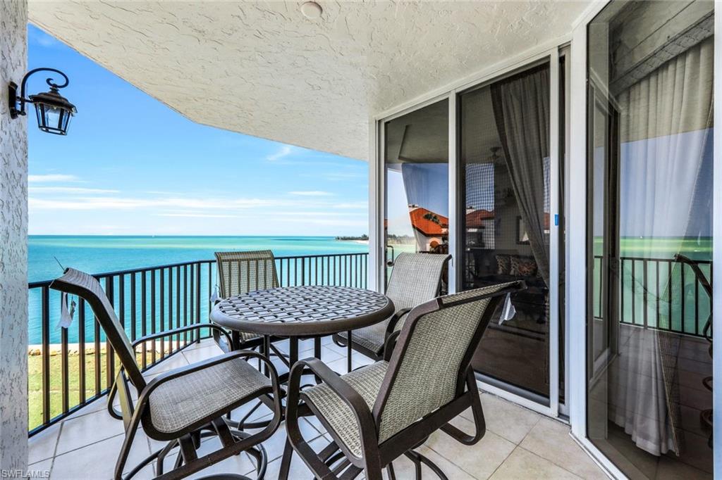 Experience mesmerizing southwest exposure and breathtaking, ever-changing water views from this fully reimagined luxury residence in the prestigious waterfront community of La Peninsula. Positioned to capture sweeping vistas where the Marco River meets the Gulf, this sophisticated third-floor retreat offers front-row views of dolphins, manatees, stingrays and passing boats, all enjoyed from the covered lanai with impact sliders and windows that provide year-round peace of mind. Nearly 1,800 square feet of inspired living space showcases an open-concept design by LivingStyles Interiors, blending coastal elegance with contemporary refinement throughout its spacious two-bedroom, 2.5-bath floor plan with a dedicated garage space. Inside, high-gloss polished porcelain tile flooring, shiplap accents on walls and ceilings, recessed lighting and modern fixtures set an elevated tone. A transformative 2023 remodel opened the main living areas, creating a seamless flow that highlights panoramic water views from every angle. Expansive glass invites natural light to illuminate beautifully curated furnishings and custom enhancements, including built-in shelving, upgraded doors and trim, and thoughtful storage solutions. The gourmet kitchen impresses with solid wood cabinetry, striking quartz countertops, under-cabinet and toe-kick lighting, and premium appliances including a Sub-Zero refrigerator, Wolf induction cooktop and speed oven, and an ultra-quiet Bosch dishwasher. A commercial-grade disposal and water filtration system add everyday convenience, while modern upgrades extend throughout the home with fully redesigned baths featuring basket-weave tile flooring, marble-topped vanities, and a spa-inspired primary suite boasting an expanded shower and freestanding soaking tub placed to capture the tranquil views. The primary suite also offers an oversized custom-designed closet for exceptional organization. Additional enhancements include a new Trane furnace and air conditioner, a Rheem water heater, upgraded electrical throughout, and the convenience of a dedicated garage parking space, along with private storage locker. Storm protection with impact windows and doors ensures comfort and security. Outdoors, a private dock with two lifts provides the ultimate amenity for boating or quiet waterfront leisure. Residents of La Peninsula enjoy a beautifully refreshed clubhouse with a library, game room and fitness center, along with a tropical waterfront pool and active social scene. Upcoming plans for a new sports complex, including pickleball, tennis and bocce courts, further elevate the coastal lifestyle. Milestone/structural inspection has been completed and passed with no assessments.
