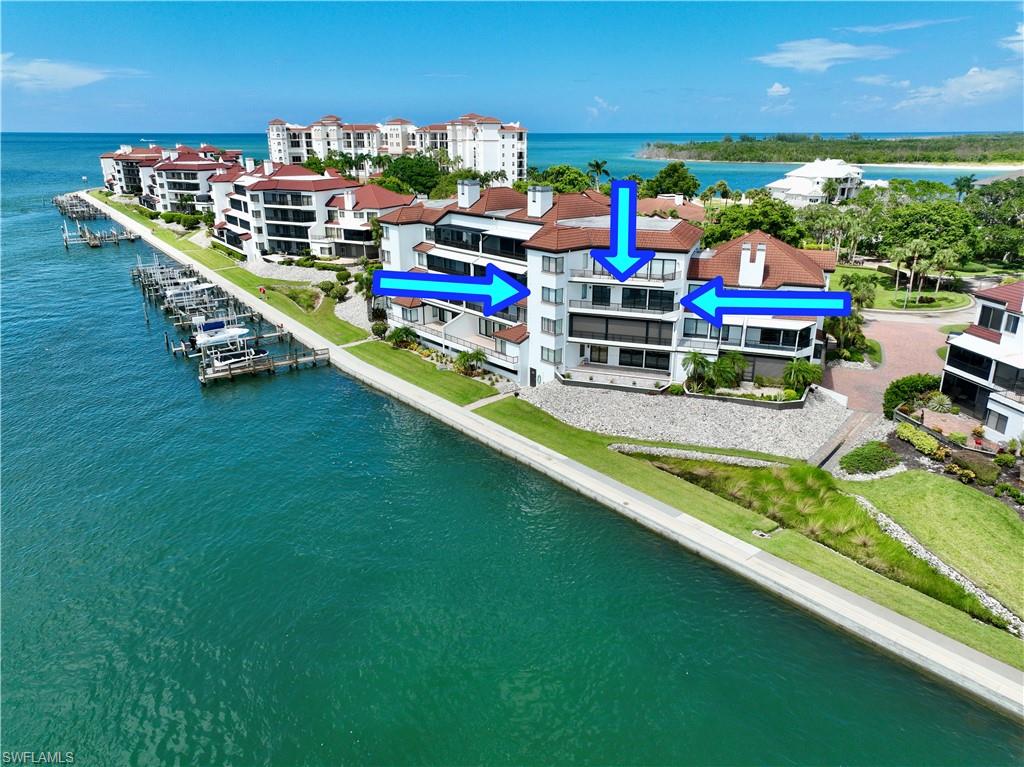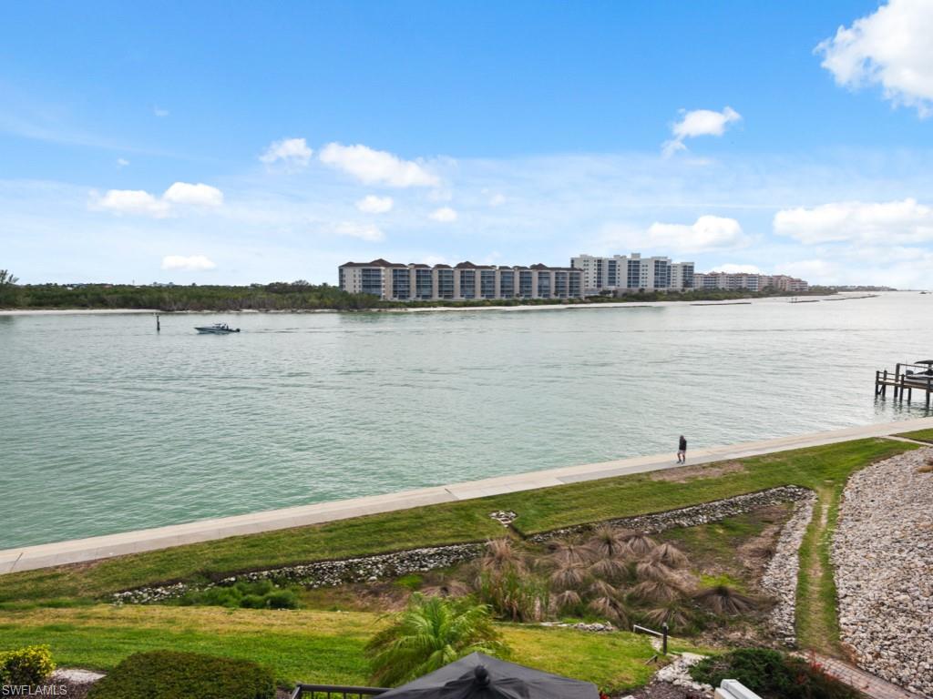 Step into this town house style waterfront condo sitting along the Marco River with Gulf vistas, and a direct view of your optional boat slip (boat slip not included at offering price; however, may be purchased separately). This 1760 Square Foot unit features a great combination of space and functionality. With two bedrooms upstairs, both with ensuites, it’s like having two master suites. The spacious main level features the kitchen, dining room, living room, wet bar, half bath, and a spacious lanai. Sitting on your lanai watching the dolphins play may just become a new favorite activity. With new A/C installed in 2024, this unit is ready for your touches. Move in ready or remodel as your dream home, this condo is sure to be a treasure for the new owners. The current owners cherished this unit for over 35 years and now are ready to let someone else enjoy relaxed Florida living. Uncommon for the town house style units at La Peninsula (and only available in the 200 building), this unit has full elevator access and only two required steps to its entrance via the elevator and elevated walkway. La Peninsula is a gated community tucked away between Marco Island and Naples, but with quick access to both. Great amenities include a pool, sauna, fitness room, and a walking path that stretches nearly a quarter mile along the river and Gulf. An upcoming sports complex including Tennis, Pickleball, and bocce courts are also in the works for this gated community. La Peninsula sits at the tip of the Isles of Capri, a unique and classic Southwest Florida neighborhood that features four restaurants, a church, several marinas, and a fire/rescue station. Surrounded by water with over three miles of walking path, Capri is a neighborhood that will remind you of simpler times, yet keep you close to everything.