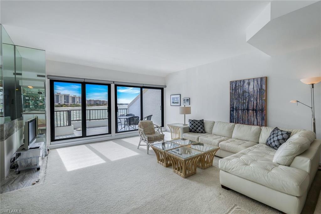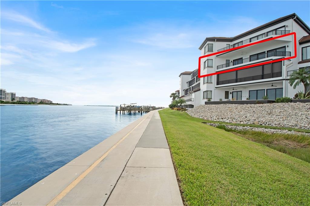 This gorgeous, renovated waterfront residence is ideally situated to provide stunning views of the Marco River and Gulf and offers 2 bedrooms, 2 baths, desirable open floor plan, and luxurious finishes. The kitchen boasts beautiful cabinetry, granite counters, and stainless appliances. The dining room and living room overlook the Marco River with a coastal color scheme, wet bar, and tile flooring. The generous master suite is a private retreat with walk-in closet and ensuite bath with dual sinks, walk-in shower, and jetted tub offering breathtaking water views. The screened balcony is the ideal place to relax and enjoy the island breeze while watching dolphins and manatees play. You will be delighted with phenomenal views of the River, Gulf, Coconut Island, and Hideaway Beach. La Peninsula is a private, gated community located on charming Isles of Capri, ideally located near both Marco Island and downtown Naples. La Peninsula offers gorgeous tropical landscaping, club house, large pool, waterfront walking path, and more.