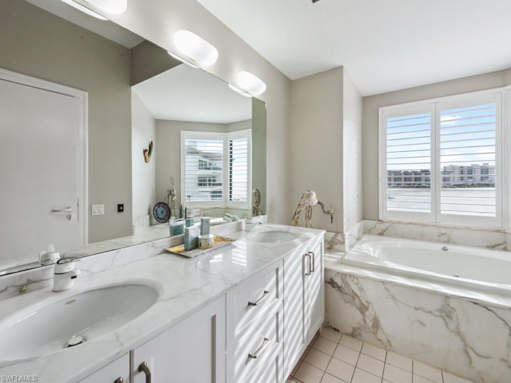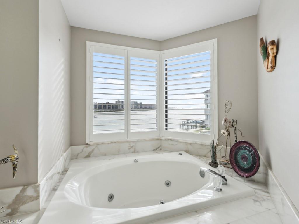 Phenomenal views of the Marco River and Gulf abound from this stunning, remodeled townhome residence. This 2 bedroom, 2 and a half bath home boasts a stunning, updated interior with thoughtful details throughout including plantation shutters and Hunter Douglas shades. The gorgeous kitchen has been opened to the living space to enhance the open floor plan and is complete with marble counters, beautiful white cabinetry, and stainless-steel appliances. The living area offers gorgeous views and opens onto the spacious terrace – the ideal place to relax and watch the dolphins and manatees play while enjoying the Florida sunshine and fresh salt air. The master suite is a private oasis overlooking the Marco River. The ensuite bath features dual sinks, walk-in shower, and jetted tub offering exceptional views of the water. Guests will enjoy the private guest bedroom with ensuite bath and custom nook with bunk beds. La Peninsula is a private, gated community located on charming Isles of Capri, ideally located near both Marco Island and downtown Naples. La Peninsula offers gorgeous tropical landscaping, club house, large pool, waterfront walking path, and more.