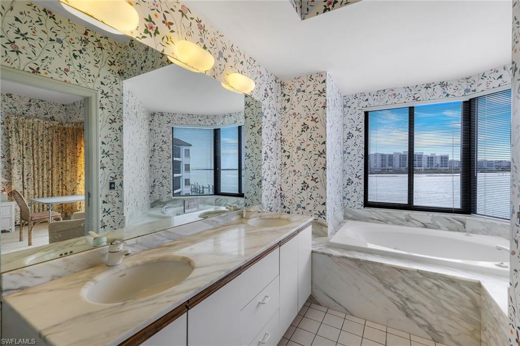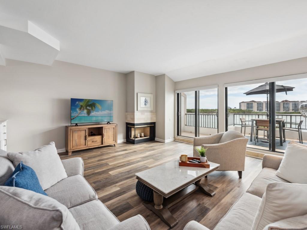 Welcome to Paradise! This lovely condo is located on the tip of Isles of Capri, in the beautiful La Peninsula. With some recent updates in Coastal Modern style, you will appreciate the new appliances, flooring and kitchen. Features include Impact windows, sliders, wet bar, a spacious floor plan and a large, covered lanai, to name a few. From the moment you walk in, you will be captivated by spectacular, panoramic views of the Big Marco river, Hideaway beach and Marco Island. You will enjoy non-stop action with boats passing by and lots of dolphins, birds, manatees and other wildlife, putting on a show that never gets old. The large, master bedroom faces the water and has a walk-in closet and sliders out to the lanai. In the bathroom you will find a dual vanity, separate shower and a jetted bath tub with glass windows that overlook the river so you never miss out on the magic. La Peninsula is a gated community which has lush tropical landscaping through out, Fitness room, club house, olympic-sized heated swimming pool, spa and a large promenade along the waters edge, which wraps around the whole point. A new sports center is coming soon, complete with pickleball, tennis and bocce. Boat slips can be purchased separately to make boating a breeze. Isles of Capri is a subtropical island that boasts and abundance of wildlife, four great restaurants and three marinas. Located one mile from Marco Island & only 20 minutes away from Downtown Naples with its sophisticated shopping & five star dining. Our area is famous for its white sand beaches, world class fishing & boating and fantastic golfing. Isles of Capri is the perfect place to sit back, relax, unwind and let the sights and sounds, soothe your mind, body and soul.