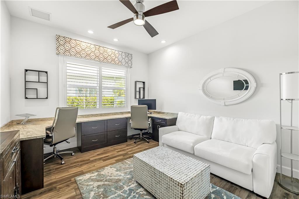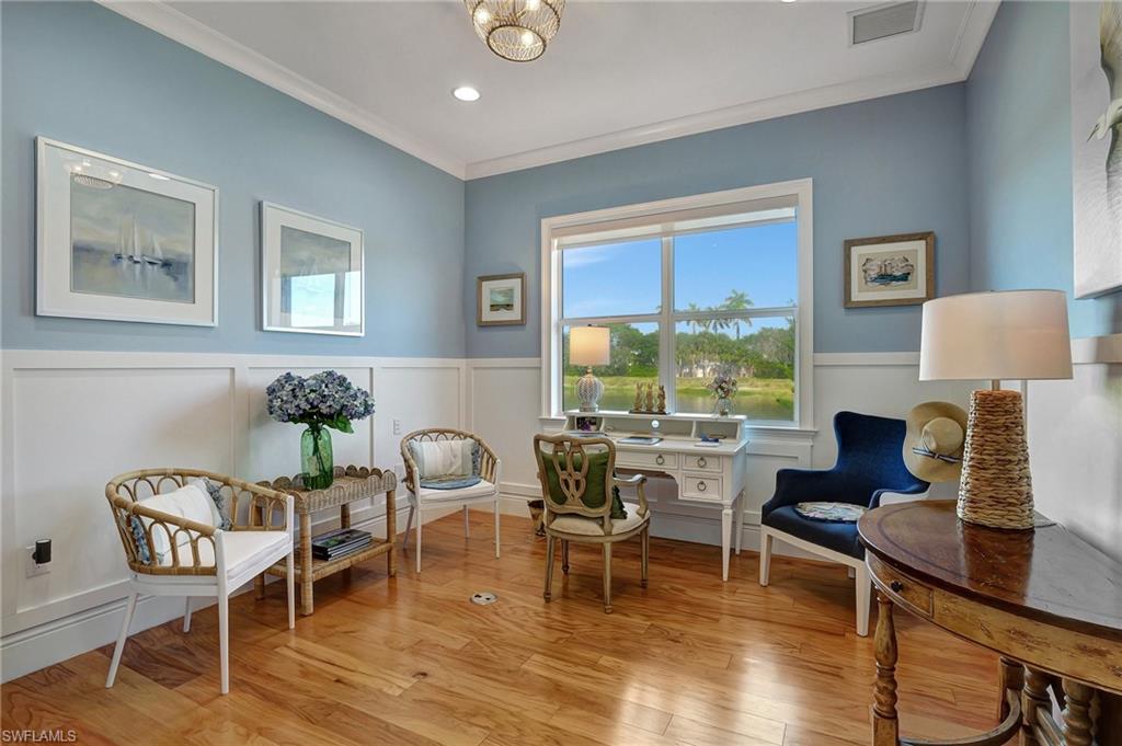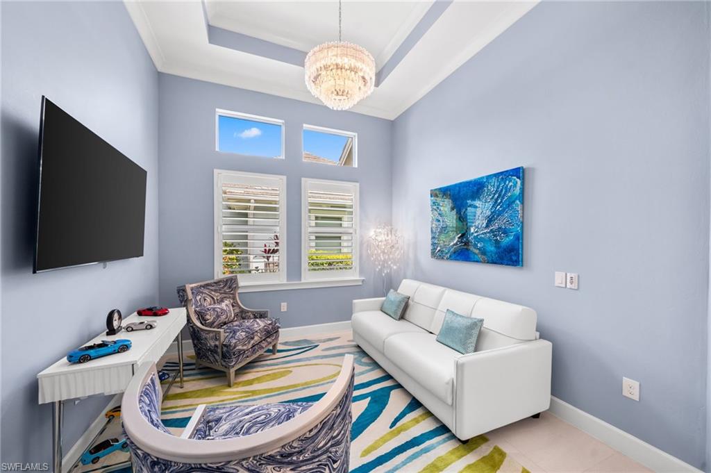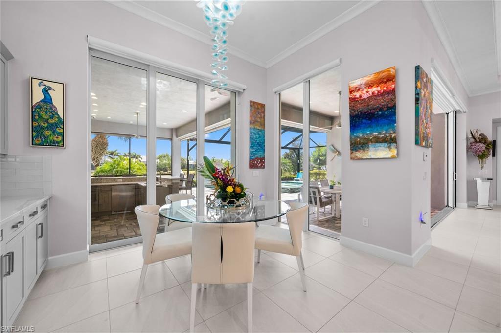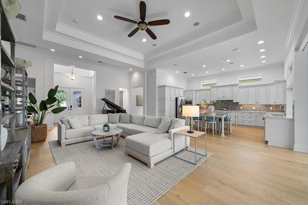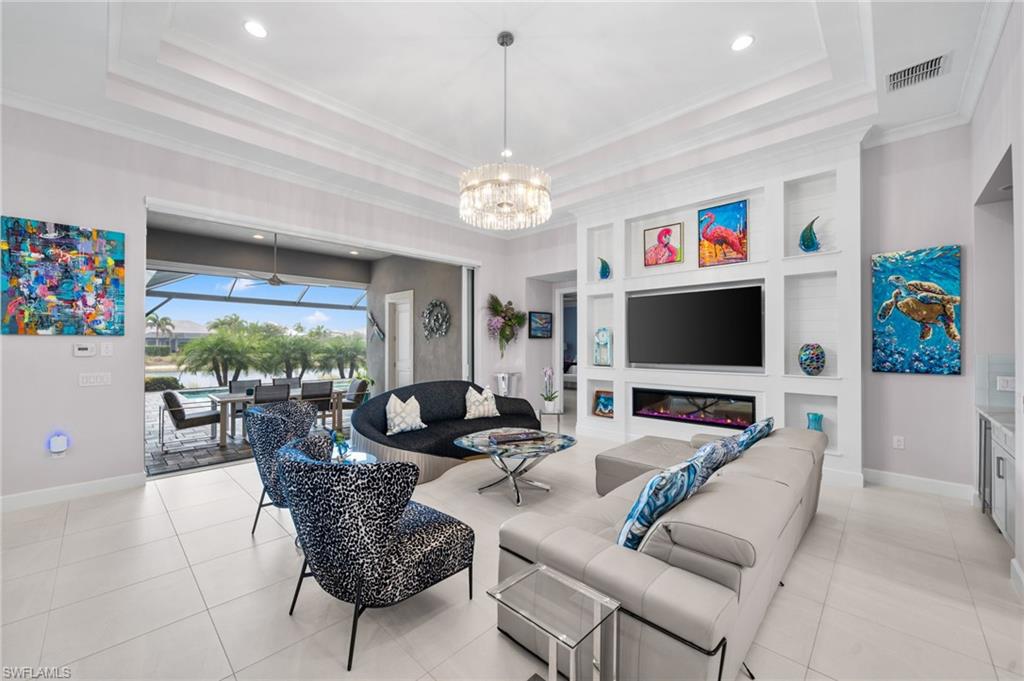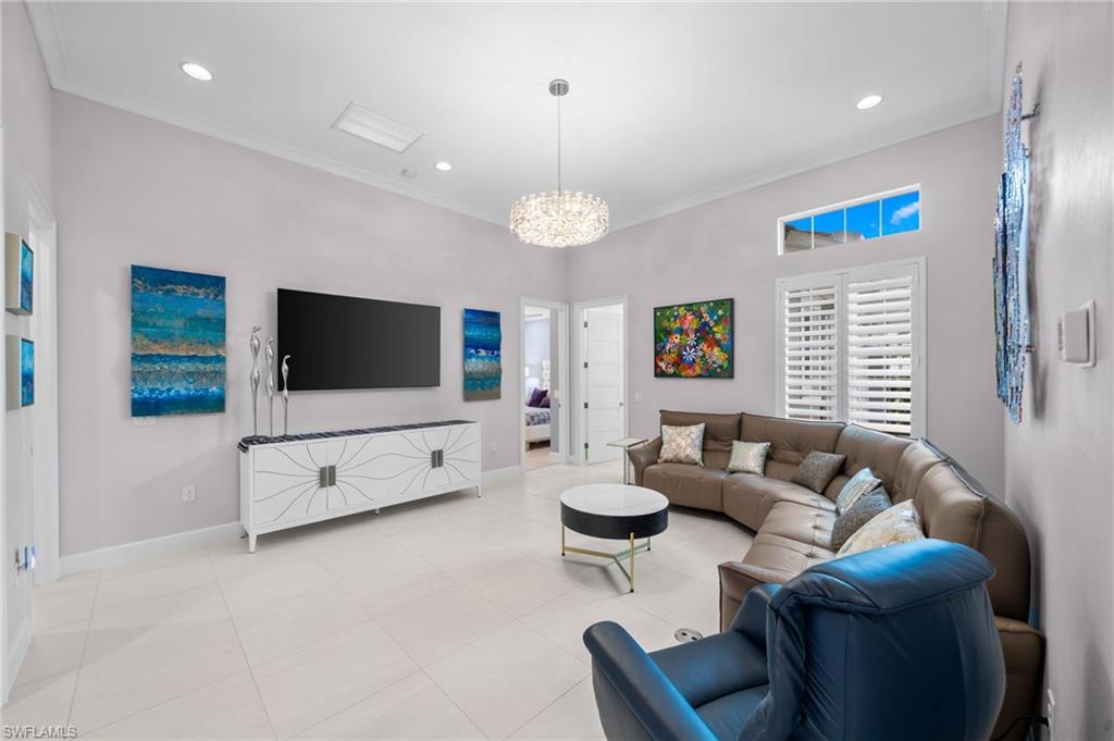 Rarely available, this meticulously maintained Jasmine Grande residence captures expansive private water views from nearly every room. Offering two spacious bedrooms, an office/den, a versatile flex room with wet bar, and 2.5 baths, the home blends everyday comfort with refined living. The impressive great room showcases 14-foot double tray ceilings, crown molding, and abundant natural light—an ideal backdrop for stylish entertaining. Seamlessly connected, the gourmet kitchen is a chef’s delight, featuring stainless steel appliances, granite countertops, and an oversized island with seating for four. A true showpiece, the Eastern-facing screened lanai is designed for relaxation and entertaining alike. Enjoy the sparkling pool, fully equipped outdoor kitchen with grill, and multiple seating areas—all while taking in tranquil water views. Set at the end of a quiet cul-de-sac with water wrapping two sides, the property offers unmatched privacy. Notable upgrades include 10-foot pocketing impact sliders, hurricane screens on the lanai, rich wood and tile flooring, and even an insulated garage door for year-round comfort. Beyond the home, the Isles of Collier Preserve spans 2,400 acres of pristine lakes and nature preserves, offering endless opportunities for recreation. Residents enjoy scenic walking and biking trails, kayaking, paddleboarding, tennis, pickleball, bocce, and a dog park. The community clubhouse features a state-of-the-art fitness center, resort and lap pools, and the inviting Overlook Bar & Grill. Perfectly located just minutes from Old Naples’ shops, dining, and beaches, and moments from the Naples Botanical Garden and acclaimed Naples Pickleball Center, this home offers the ideal blend of luxury, privacy, and vibrant community living.