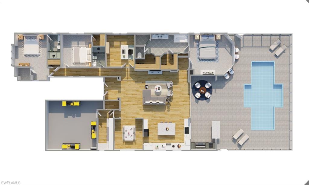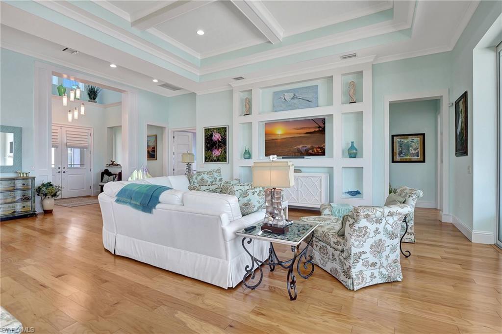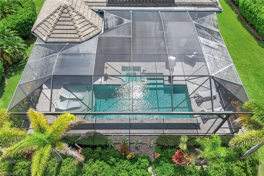 Welcome to your dream home, the Jacaranda floor plan in the Isles of Collier Preserve, now reimagined with an open floor plan for modern living. This exquisite three-bedroom plus den residence boasts three en-suite bathrooms and one powder room, seamlessly blending contemporary style with unparalleled comfort. Step outside to your private outdoor screened-in oasis. The western-facing lanai is perfect for viewing exceptional sunsets. Looking south, you have a long unobstructed view of the waterway. The oasis is complete with an outdoor kitchen, pool, and spa—ideal for relaxation and entertaining while enjoying breathtaking sunsets. Nestled on a private cul-de-sac with a pie-shaped lot spanning .37 acres, this home exudes elegance. The expansive open layout connects the living room, dining area, and gourmet kitchen, creating an inviting space filled with abundant natural light from large windows. The gourmet kitchen features state-of-the-art appliances, quartz countertops, and an oversized island, perfect for casual dining and entertaining. The three spacious bedrooms offer ample closet space and tranquil retreats for family and guests. The den provides a versatile space for a home office or additional relaxation area. The home also features impact windows and hurricane screens at the rear for added security. The three-car garage offers generous storage for vehicles, toys, and essentials. Located near the vibrant 5th Avenue and 3rd Street South in Old Naples, you'll enjoy exceptional dining and shopping experiences. Don’t miss the chance to make this magnificent, open-concept home your cherished residence.