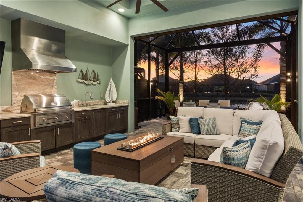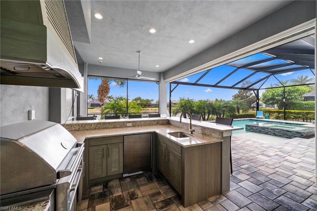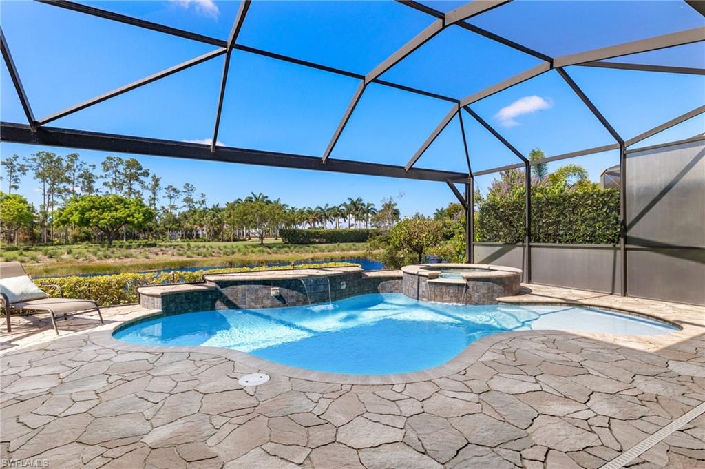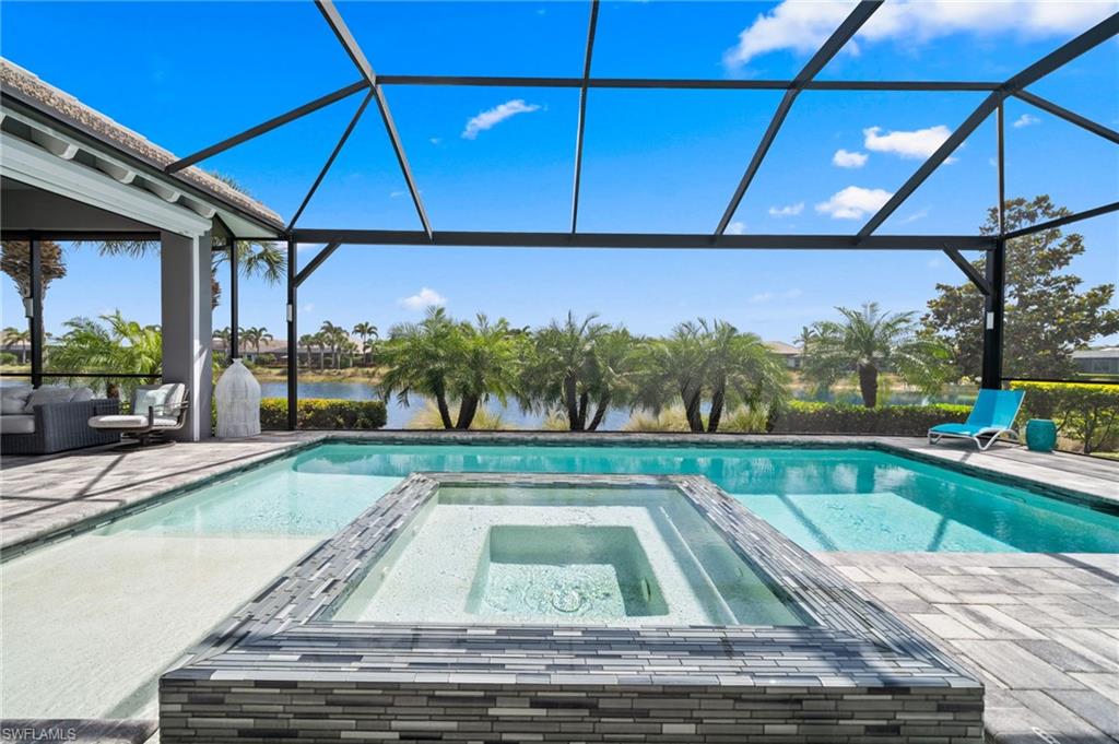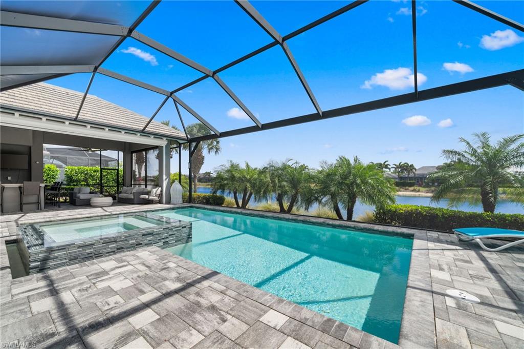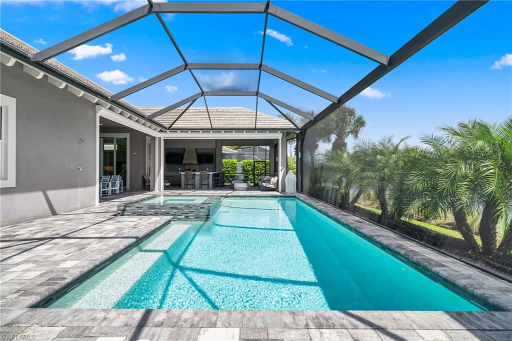 This stunning, highly sought-after Jasmine Grande home, offers exceptional detail and a breathtaking private water view in the coveted Isles of Collier Preserve. Are you ready to embrace the ultimate Naples lifestyle from the comfort of your own home? This property features a spacious lanai with ample room to live, dine, and soak in the sunshine. The expansive covered outdoor area includes a custom kitchen with a built-in grill, fridge, sink, and a generous island for dining. Cool off in the large private pool or unwind in the spa—you're bound to want to spend the entire day outdoors! Upon entering the home you'll immediately be captivated by the open-concept design and beautiful wood-look tile flooring throughout. The great room boasts soaring double tray ceilings and a custom entertainment center, designed just like the model home. The gourmet kitchen is a chef's dream, featuring a large island with quartz countertops, built-in oven and microwave, a separate cooktop, and an additional beverage fridge. The charming pass-through window to the outdoor kitchen makes entertaining family and guests a breeze. The spacious primary suite offers bay windows and an ensuite bathroom with his-and-her walk-in closets, dual vanities with granite countertops, a separate soaking tub, and a frameless glass walk-in shower. The versatile den is ideal for a home office or additional living space, while the elegant formal dining area provides the perfect setting for dinner parties or a stylish bar area. Each guest room includes a walk-in closet for added convenience. This home is equipped with impact-resistant windows and sliders throughout the home, electric shades in the great room and primary suite, a new Polyaspartic coating on the garage floor with a transferrable lifetime warranty, an air-conditioned garage, and a fresh exterior paint job. Located just minutes from downtown Naples and close to Bayshore, the Isles of Collier Preserve is a vibrant, resort-style community that offers endless amenities. Whether you're a pickleball or tennis enthusiast, you'll love the 14 pickleball courts, 6 Har-Tru tennis courts, and 8 miles of kayaking and hiking trails, including community provided bikes and kayaks. Unwind at The Outlook Bar & Grill, enjoy the resort-style pool, additional lap pool, stay active in the fitness studio, or take a sunset cruise on the community's boat. This home and community truly have it all! Seller is willing to offer seller financing.
