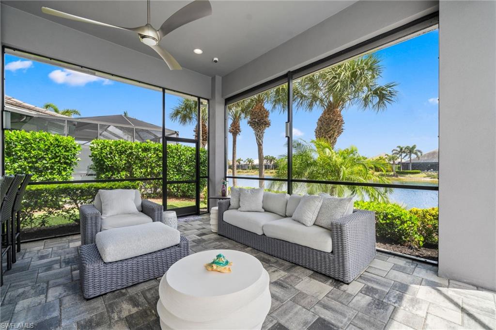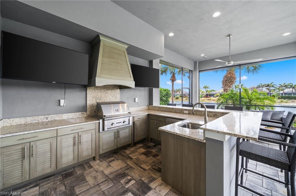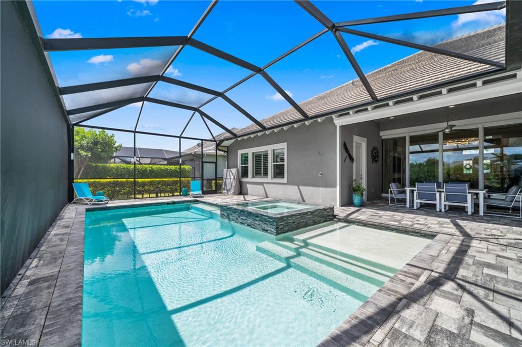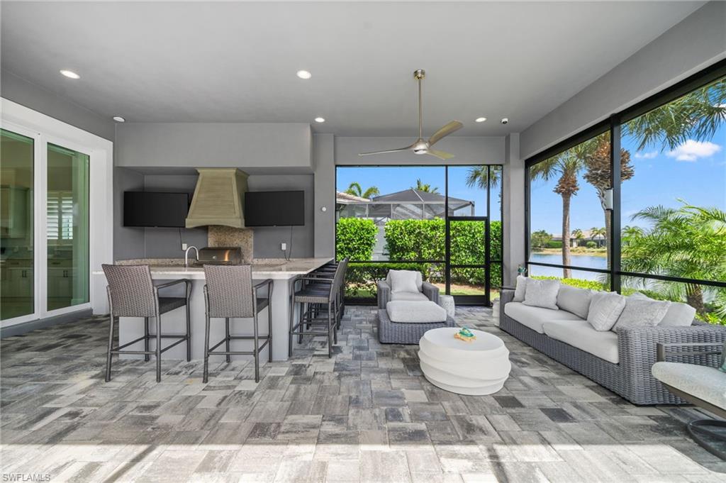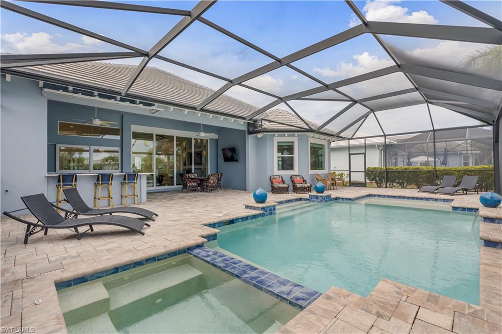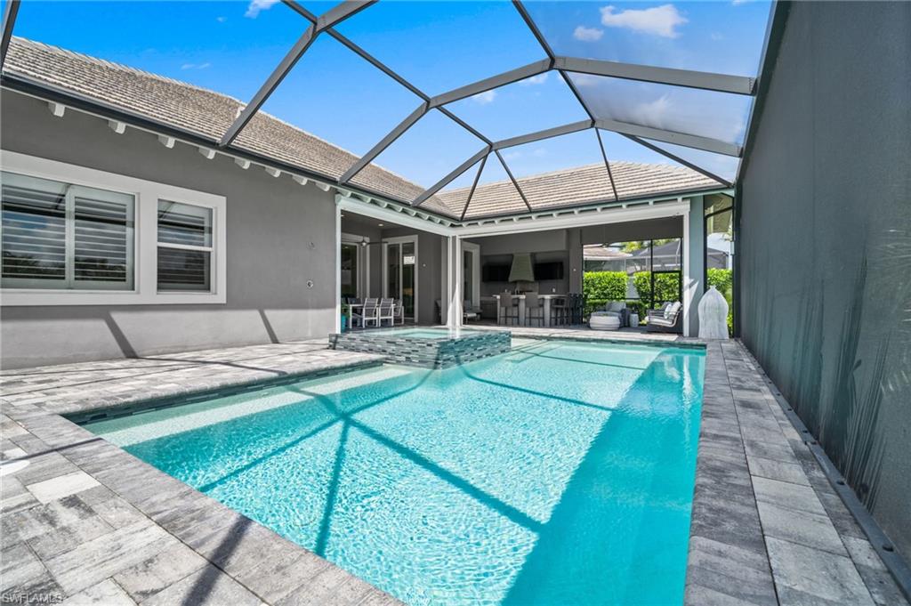 This stunning, highly sought-after Jasmine Grande home, offers exceptional detail and a breathtaking private water view in the coveted Isles of Collier Preserve. Are you ready to embrace the ultimate Naples lifestyle from the comfort of your own home? This property features a spacious lanai with ample room to live, dine, and soak in the sunshine. The expansive covered outdoor area includes a custom kitchen with a built-in grill, fridge, sink, and a generous island for dining. Cool off in the large private pool or unwind in the spa—you're bound to want to spend the entire day outdoors! Upon entering the home you'll immediately be captivated by the open-concept design and beautiful wood-look tile flooring throughout. The great room boasts soaring double tray ceilings and a custom entertainment center, designed just like the model home. The gourmet kitchen is a chef's dream, featuring a large island with quartz countertops, built-in oven and microwave, a separate cooktop, and an additional beverage fridge. The charming pass-through window to the outdoor kitchen makes entertaining family and guests a breeze. The spacious primary suite offers bay windows and an ensuite bathroom with his-and-her walk-in closets, dual vanities with granite countertops, a separate soaking tub, and a frameless glass walk-in shower. The versatile den is ideal for a home office or additional living space, while the elegant formal dining area provides the perfect setting for dinner parties or a stylish bar area. Each guest room includes a walk-in closet for added convenience. This home is equipped with impact-resistant windows and sliders throughout the home, electric shades in the great room and primary suite, a new Polyaspartic coating on the garage floor with a transferrable lifetime warranty, an air-conditioned garage, and a fresh exterior paint job. Located just minutes from downtown Naples and close to Bayshore, the Isles of Collier Preserve is a vibrant, resort-style community that offers endless amenities. Whether you're a pickleball or tennis enthusiast, you'll love the 14 pickleball courts, 6 Har-Tru tennis courts, and 8 miles of kayaking and hiking trails, including community provided bikes and kayaks. Unwind at The Outlook Bar & Grill, enjoy the resort-style pool, additional lap pool, stay active in the fitness studio, or take a sunset cruise on the community's boat. This home and community truly have it all! Seller is willing to offer seller financing.