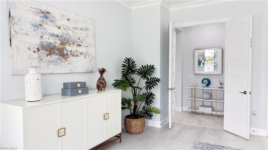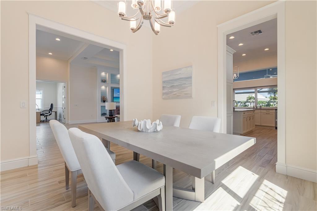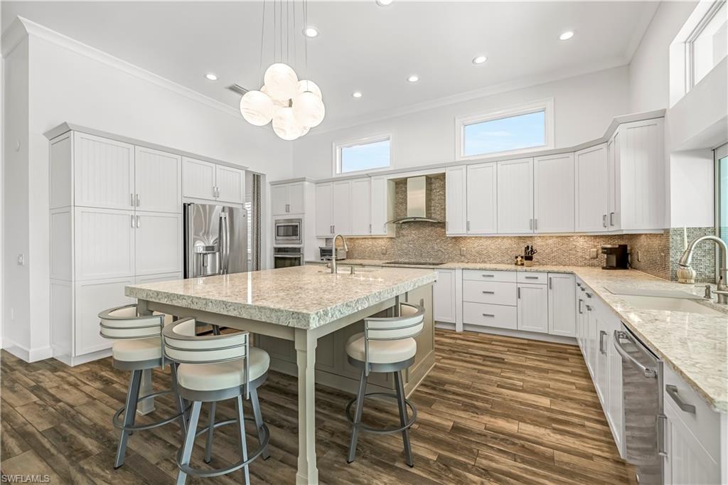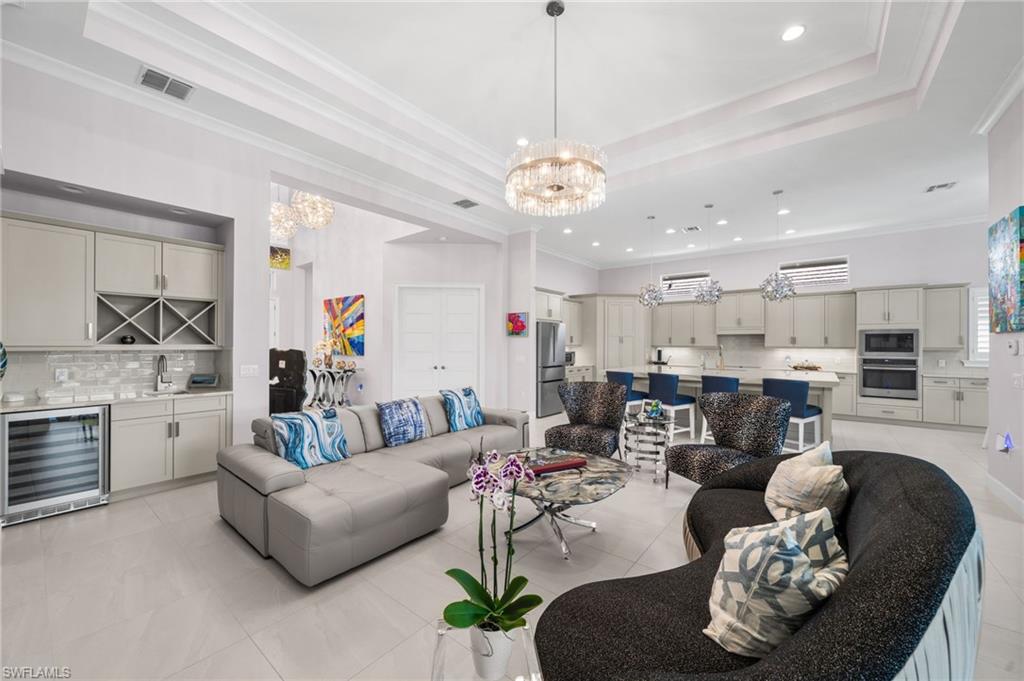 8791 Calypso is a superb single family home, nestled in undoubtedly one of the most popular communities in Naples, and offers both expansive water and west facing sunset views! This exceptional house includes a wealth of features and generous living room with high ceilings, upgrades galore, plenty of natural light and sense of space. A masterful fusion of modern coastal design and elegance, offering an extensive amenity-rich lifestyle with Pickleball, Tennis, Bocce, Fitness Center, Lap and Resort Pool, Restaurant, as well as miles of walking and biking possibilities. On entering this home the key reception areas flow effortlessly from the welcoming hallway, into a fabulous great room with bespoke kitchen, offering plenty of storage, walk-in pantry, quartz countertops and central breakfast island. Dining and living areas with sliding doors opening onto the lanai and pool area, (fabulous pool is in the process of being built - estimated completion January 2026) provide for al-fresco or inside dining and entertaining for family and friends. Four generous sized bedrooms, with the primary suite complete with built in wardrobes in the walk-in closets, and luxurious ensuite bathroom benefitting from dual vanities, walk-in shower and bath. Along with a fabulous study from which to work, there is also a good sized laundry room, powder room and integral double garage. The Isles of Collier Preserve is located next to Naples Botanical Gardens, Naples Pickleball Center, Bayshore Arts District and Bayview Park, fun local restaurants including the Celebration Park and is also minutes from downtown Naples dining, shopping and white sandy beaches