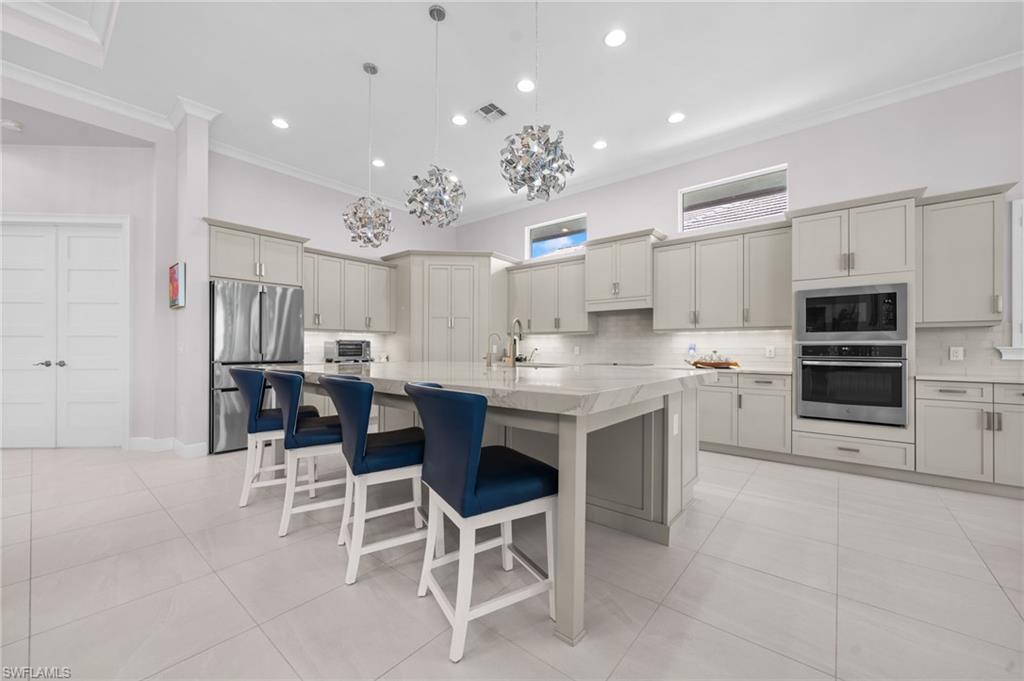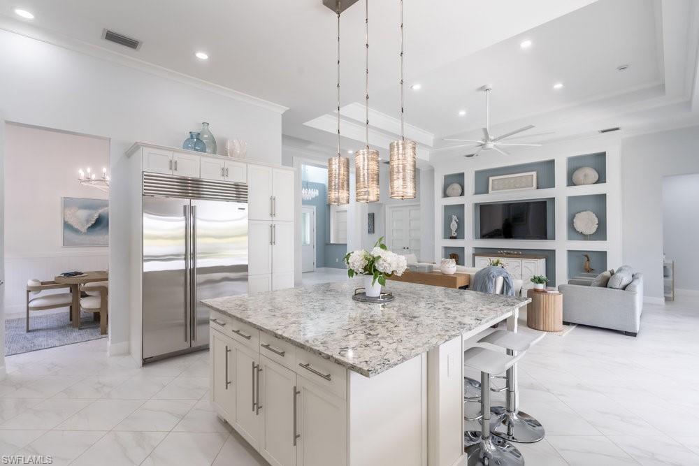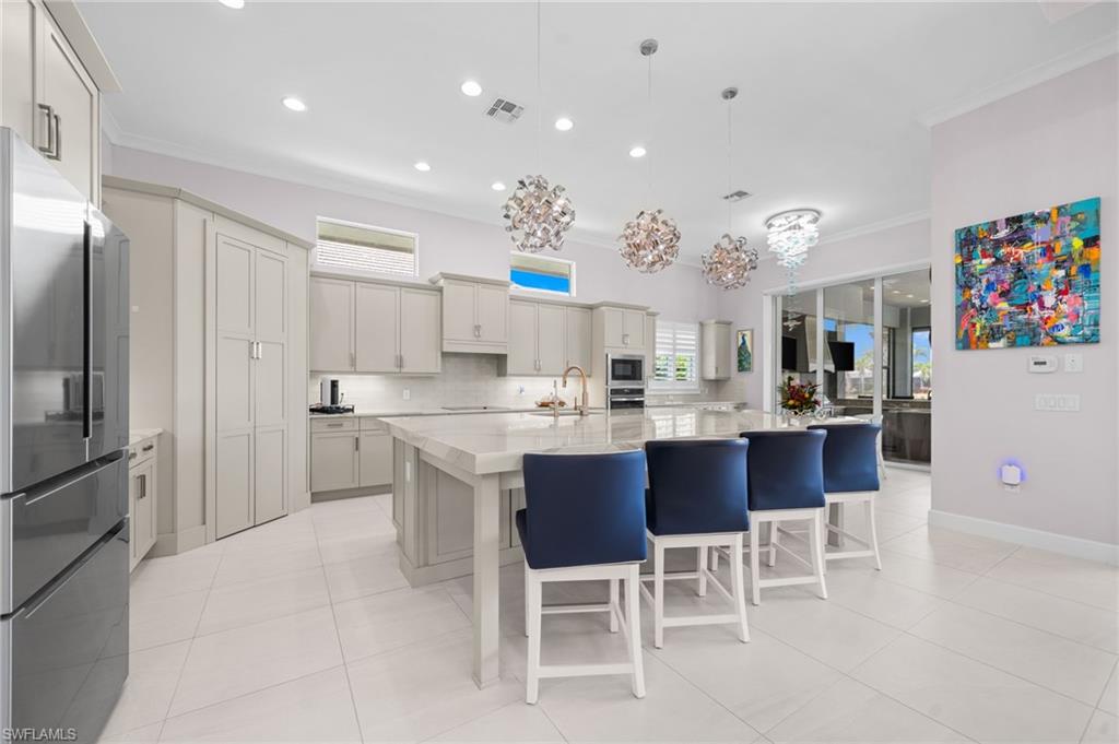 Welcome to this stunning home located in Isles of Collier Preserve. Boasting a chic living space coupled with an expansive outdoor living area, make this home perfect for entertaining. The elegant interior is bathed in natural light featuring a great room, adjacent gourmet kitchen, formal dining, bonus room and private study. The open-concept kitchen is a Chef’s dream complete with white cabinetry and large center island with plenty of seating. Relax at the end of the day in your serene, private suite overlooking the pool. The outdoor kitchen, sitting and dining area are perfect for relaxing and enjoying the beautiful Florida weather. Ideally located in desirable Isles of Collier Preserve, favored for its close proximity to 5th Avenue and beaches and their outstanding amenities, including two pools, pickle-ball, tennis, kayaking, miles of trails, fitness center & The Overlook Bar and Grill.