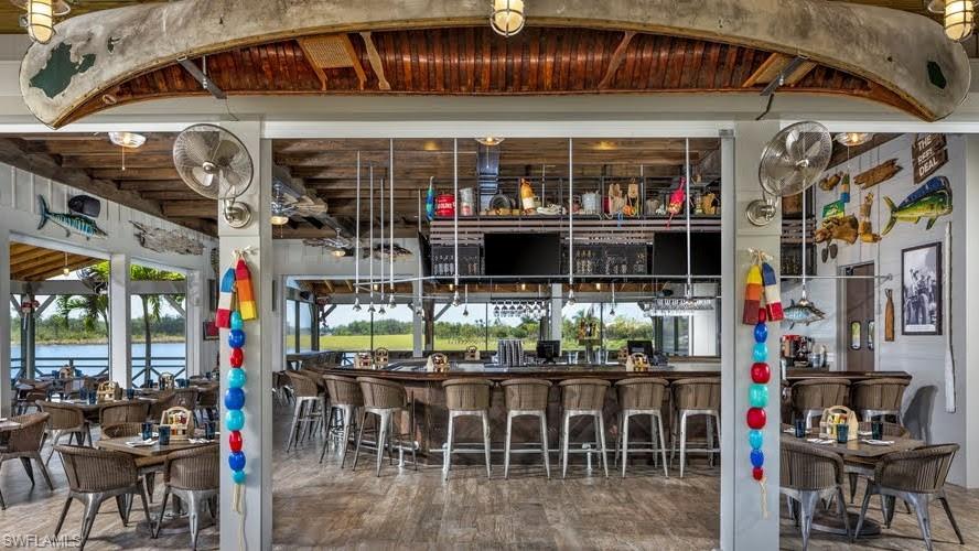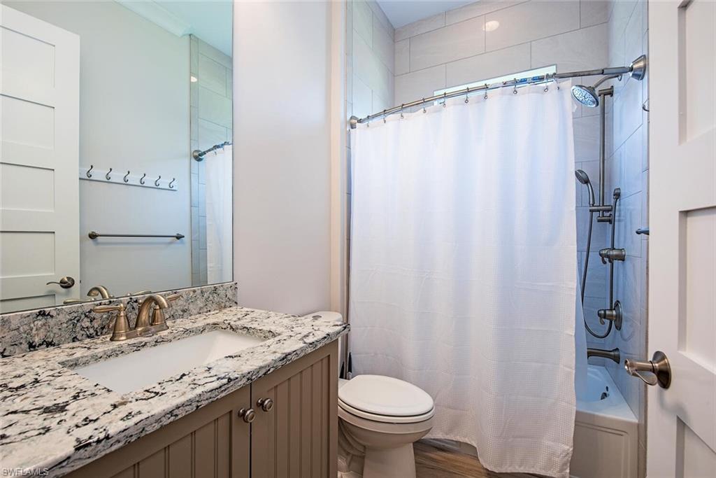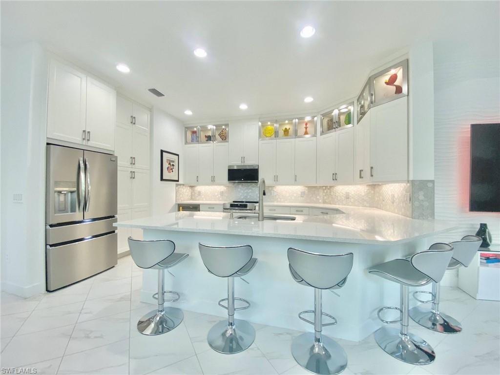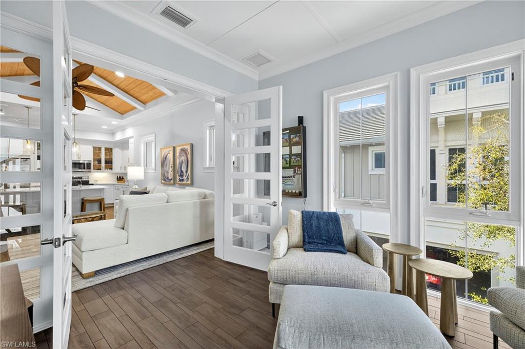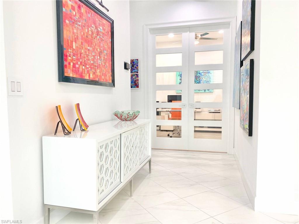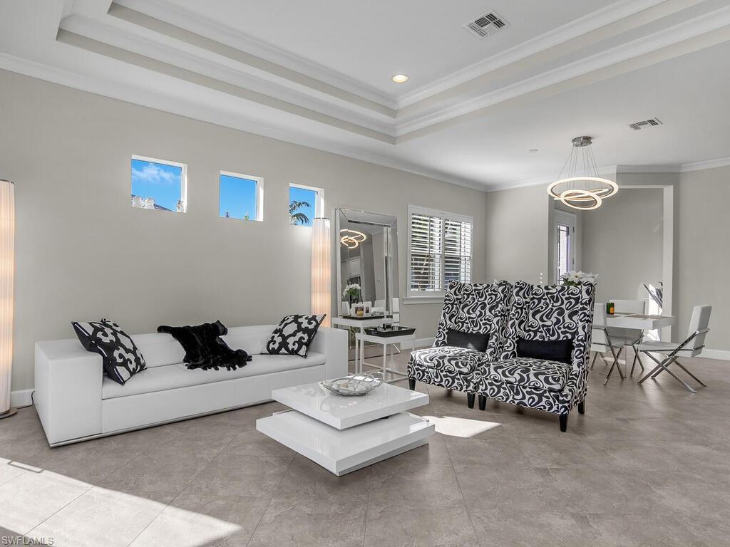 This beautiful turnkey 3-bedroom plus den villa offers a perfect blend of comfort, style, and convenience, all set within an amenity-rich community. Thoughtfully designed with a light-filled open layout, the home features a picture-framed screened lanai that overlooks serene water views, creating an ideal backdrop for both everyday living and relaxed entertaining. Inside, every detail has been thoughtfully crafted to create both elegance and comfort. The gourmet kitchen inspires gathering, with quartz countertops, upgraded cabinetry, a tiled backsplash, and custom features such as pots and pans drawers, a lazy Susan, and a wine refrigerator—perfect for entertaining friends or enjoying quiet nights in. The open living space, accented by a custom beam ceiling, Mohawk laminate flooring, recessed lighting, and plantation shutters, feels warm and welcoming while maintaining a refined sophistication. The owner’s suite offers a private retreat with upgraded cabinetry, beautiful tile, and a spacious shower with a ledge for added comfort. French doors open to a versatile den which boasts a sofa with pull out ideal for a home office or cozy reading nook. Thoughtful upgrades continue throughout the home, including impact glass and doors, a fully outfitted laundry room with cabinetry, sink, and countertop, and an epoxy-finished garage that feels as polished as the living spaces inside. Life here is as much about the lifestyle as it is the home itself. Within the community, every day feels like a getaway with access to a resort-style pool, pickleball, tennis and basketball courts, a modern fitness center, a kayak launch for adventures on the water, and even an on-site restaurant where neighbors gather and friendships are made. And when you’re ready to explore beyond your front door, downtown Naples and the white, sugar-sand beaches of the Gulf are just minutes away. This villa is more than a home—it’s a place where everyday moments feel like a vacation.