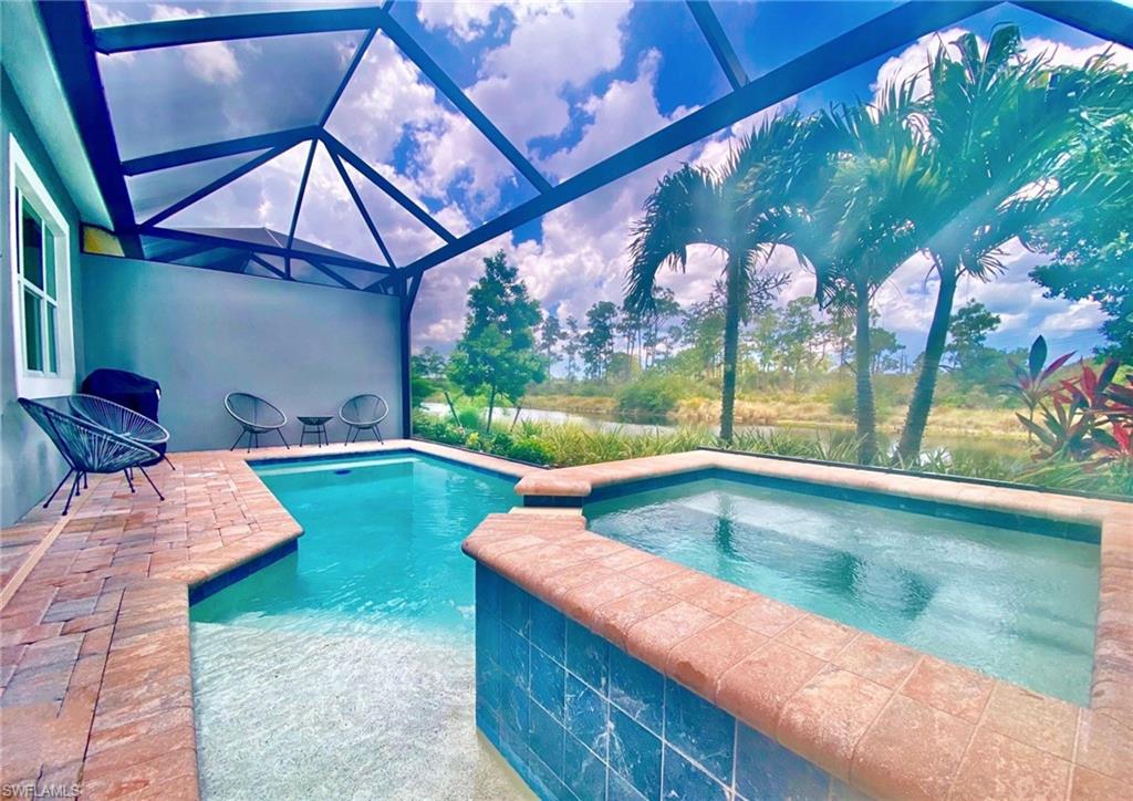 Move right into this pristine, upgraded Mimosa model villa located in the award-winning Isles of Collier Preserve, where modern comforts, a wealth of activities, and natural beauty combine seamlessly. Set on a premium private lot with “forever” water and preserve views, this bright, open, coastal-inspired pool home affords the quintessential Florida lifestyle. Enjoy outdoor living at its finest with a preferred southern exposure and unobstructed views from the picture-frame screened lanai and heated pool. The gourmet kitchen showcases floor to ceiling soft-close cabinetry, stainless steel appliances, and large stone countertops that provide plenty of room to sit, eat, talk, and gather comfortably. The spacious great room is well suited to entertaining, and features high, tray ceilings, upgraded trim and moldings, large format porcelain tile set on the diagonal, and plantation shutters. The primary suite includes twin sinks, a large walk-in shower, walk-in closet, and 6 panel solid core doors. The flexible den can serve as an office, guest space, or multipurpose room. A large, well-designed laundry room adds extra cabinetry and counter space. Impact-resistant windows and doors provide peace of mind. Offered partially furnished. The Isles of Collier Preserve spans over 2,400 acres of lakes, preserves, scenic waterways, walking and water paths, offering residents a unique connection to nature. Resort-style amenities include an Old Florida-style clubhouse, fitness center, resort and lap pools, tennis, pickleball, bocce, kayak and paddleboard launch, dog park, and the waterfront Overlook Bar & Grill. Miles of walking and biking trails wind through the community, and a vibrant social calendar makes it easy to connect and enjoy the Naples lifestyle. Located less than five miles from downtown Old Naples, 5th Avenue South, 3rd Street, and the Gulf’s white-sand beaches, this home combines serenity with convenience. Experience the best of coastal living in this meticulously maintained, partially furnished, move-in-ready Mimosa villa offering luxury, privacy, and style.