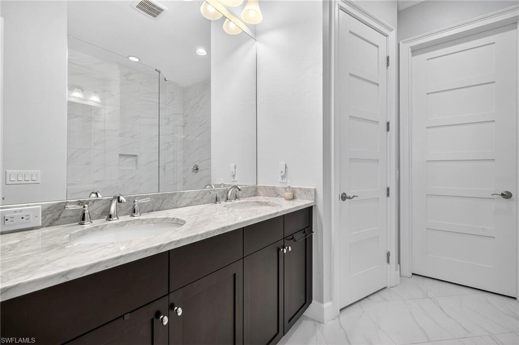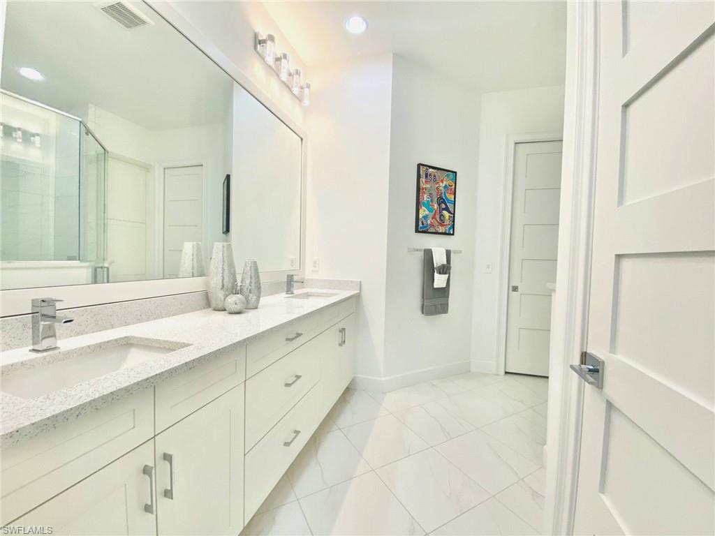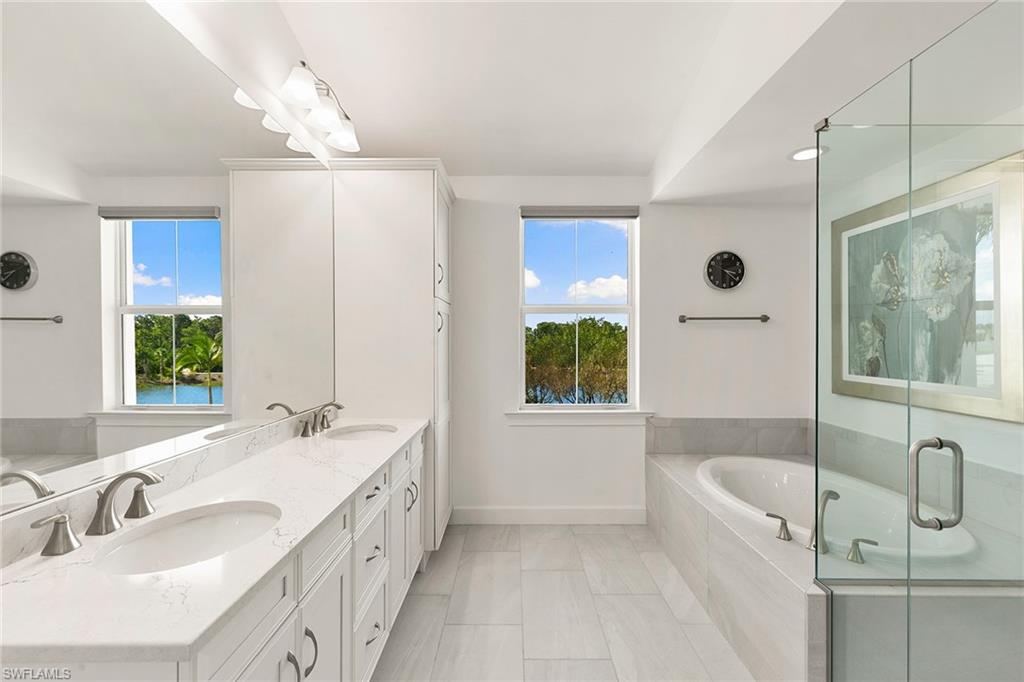 PREPARE TO BE WOWED! With over $200,000 in designer upgrades, this better-than-new, meticulously maintained Mimosa Villa offers rare privacy with sweeping water and preserve views — and no homes behind you. Enjoy the spacious feel of a single-family residence with the ease of low-maintenance villa living, all within the gated, award-winning, nature-inspired community of The Isles of Collier Preserve. This 2,366 sq. ft. villa, located in a no-flood zone, radiates luxury: soaring 10’–12’ double tray ceilings, an 85” custom TV wall, impact-resistant windows and doors, designer lighting and fans, quartz countertops, top-tier flooring (no carpet), custom motorized blinds, security system with wall safe, and motorized lanai storm shades. Even the laundry room has been elevated with a granite sink, custom cabinetry, and front-load washer/dryer on storage pedestals. The gourmet kitchen is a true showstopper. Featuring the largest island of all villa models, seamless raised-panel soft-close cabinets, high-end stainless steel appliances (including induction range with built-in air fryer and dual-zone wine fridge), pantry with pull-out shelves, and special-order stacked cabinetry to the ceiling with glass-front lighted uppers and crown molding. Custom stainless steel kick plates complete this one-of-a-kind culinary centerpiece. For entertaining, mix a cocktail at the built-in home bar and step out to your private tropical oasis. Relax in the heated saltwater pool and spa while savoring spectacular sunsets across your southwest-facing lanai. Surrounded by lush landscaping, water, and preserve views — plus no-see-um screening — you’ll enjoy unmatched privacy and comfort. Living at The Isles means being immersed in nature, with over half of its 2,400 acres devoted to preserves and waterways. Walk or bike eight miles of trails, kayak or paddleboard from the community launch, and enjoy pickleball, tennis, bocce, a resort-style pool with cabanas, a lap pool, dog park, state-of-the-art fitness center, year-round social events, and the waterfront Overlook Bar & Grill. This villa’s neighborhood is the closest to all amenities — so you can walk to everything! And when you’re ready to venture out, you’re adjacent to the US Open Pickleball Championships facility (with private community access), near top golf courses and yacht clubs, and just four miles from Naples’ famed 5th Avenue and white-sand beaches. Move in now for the season! Don’t miss this one-of-a-kind preserve and waterfront villa, designed and lived in by an award-winning international artist who has created a true masterpiece for your Naples lifestyle. (Furnishings available separately.)