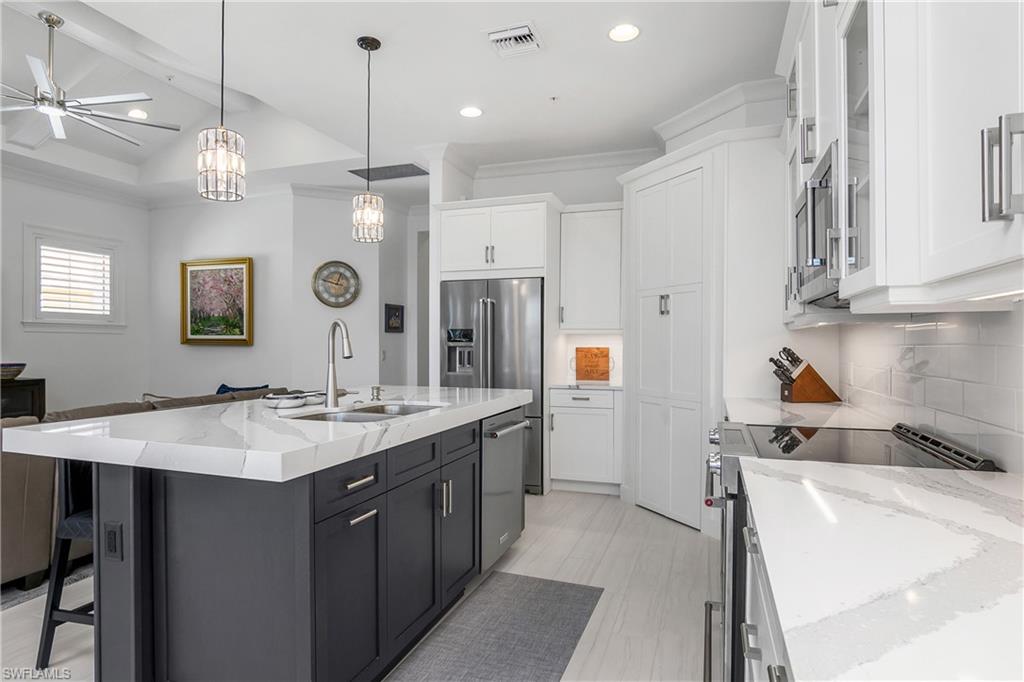 Welcome to your gorgeous nature inspired Coach Home with incredible views. The interior boasts of all the Designer detail that shows throughout the unit. Wonderful attention to volume with the high beamed ceilings and large impact windows. Well done cabinetry including walk in kitchen pantry. A Private elevator and an oversized garage with great storage. The Resort style living offers many amenities starting with Old Florida designed Club House with Fitness Center & Gymnasium plus gathering rooms, then step out to area complete with not only large Resort pool but a lap pool adjacent to the Outlook Bar & Grill. The Isles has also included Tennis, Pickleball, Bocce Ball courts. For water sports, Kayaks, Paddle boards and an electric tour boat are available. Six miles of walking paths are awaiting you. All of this is only 4 miles from the beach and Old Naples dining, shopping.