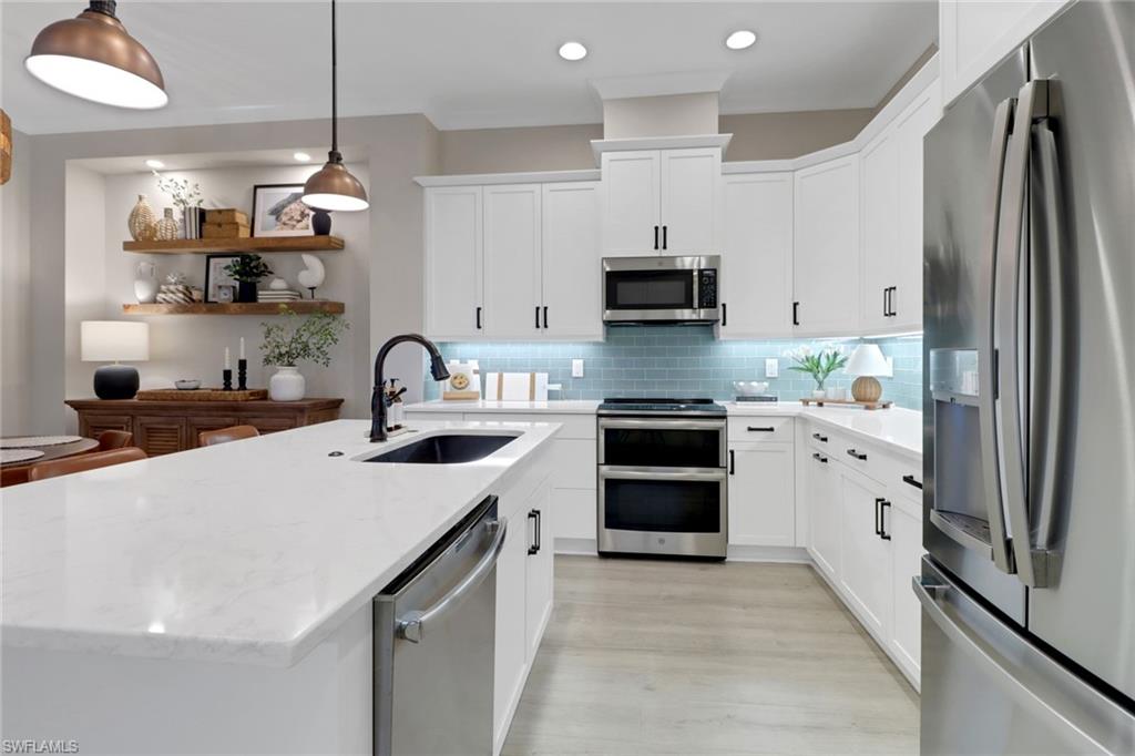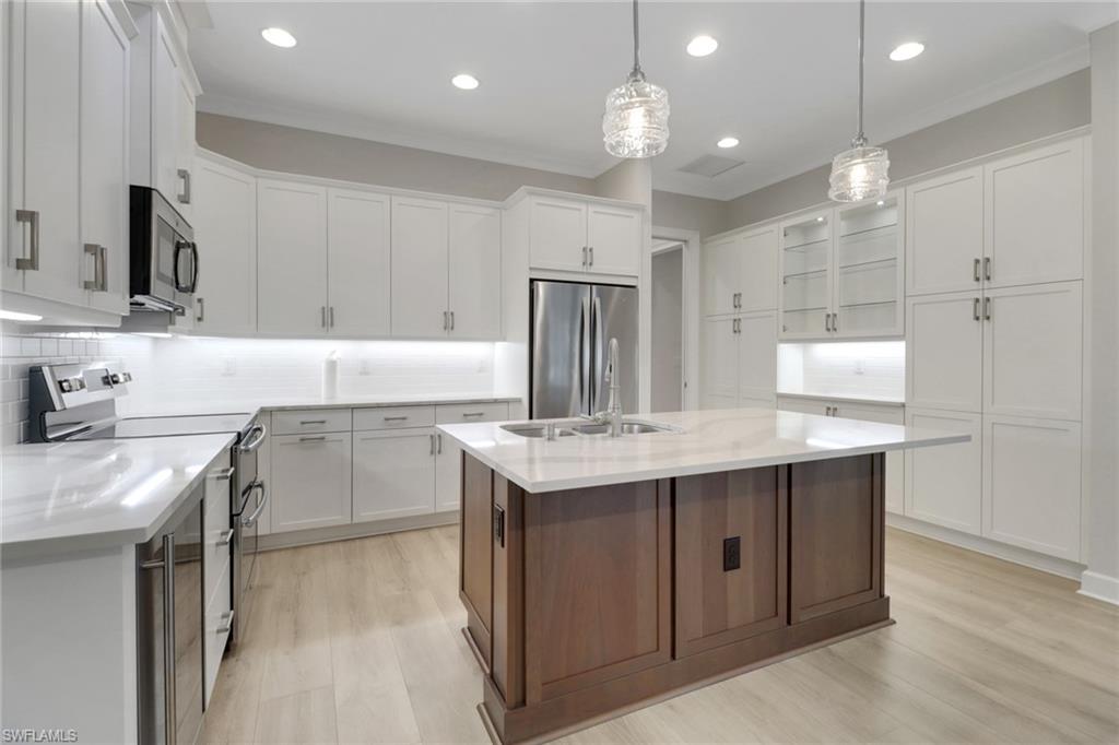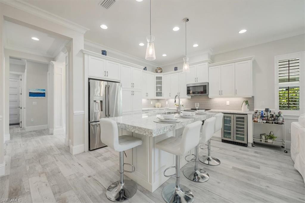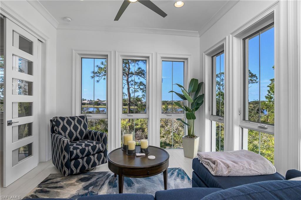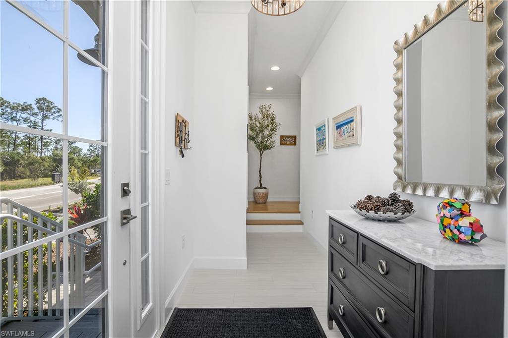Enjoy sweeping views of the natural Cypress Waterway, tranquil preserves, and picture-perfect Naples sunsets—all from the comfort of your private glass-enclosed sunroom. Floor-to-ceiling casement windows bring in an abundance of natural light and open fully to welcome in the fresh Florida breeze. This stunning 2022-built Coach Home, featuring the highly sought-after Orchid floor plan, is located in one of Naples’ most coveted gated communities—The Isles of Collier Preserve—adjacent to the National Pickleball Headquarters featuring 65 open and covered courts. If you’ve been searching for a residence that combines luxury, location, and lifestyle, this is it. Step inside and be amazed by over $100,000 in high-end upgrades and exceptional craftsmanship throughout. Quartz countertops are featured in the kitchen and all bathrooms, while wood flooring graces the primary bedroom suite. The rest of the home features elegant 7” x 48” porcelain tile for a continuous, open flow. High ceilings, crown molding, and wood trim detailing add architectural interest and a sense of grandeur to each space. The den offers flexibility for a home office, media room, or additional guest accommodations. The kitchen is a showstopper—upgraded Salem Alabaster cabinetry with glass inserts, soft-close doors, and full extension pull-out drawers for pots and pans. A stunning 3” mitered-edge quartz countertop adds substance and elegance, while a classic white tile backsplash laid in a brick pattern offers timeless appeal. The expanded range tower provides both form and function, making this kitchen ideal for entertaining or everyday gourmet cooking. The spacious owner’s suite offers peaceful views, two oversized walk-in closets, and a spa-like bathroom with dual sinks, quartz countertops, and a large step-in shower finished with premium tile and fixtures. Plantation shutters, upgraded designer lighting, and custom ceiling fans have all been thoughtfully selected to complete the home’s fresh, coastal-modern aesthetic. Tired of lugging groceries upstairs? Your private elevator makes access easy and convenient—no need to climb a single stair. This home is perfectly suited for full-time residents or seasonal enjoyment, offering lock-and-leave peace of mind. The Isles of Collier Preserve spans over 2,400 acres, nearly half preserved natural habitat. The Isles Club offers a resort-style pool, lap pool, spa, state-of-the-art fitness center, yoga, sauna, tennis, 14 pickleball courts, bocce ball, and scenic trails. Kayaks and paddleboards are provided for resident use. The Overlook Bar & Grill offers waterfront dining inspired by the historic Naples Beach Hotel. All of this just under 5 miles from downtown Naples and the beaches, with lowShown HOA fees and exceptional value. ** THIS PROPERTY IS NOT LOCATED IN A FLOOD ZONE** Furniture shown has been removed recently*