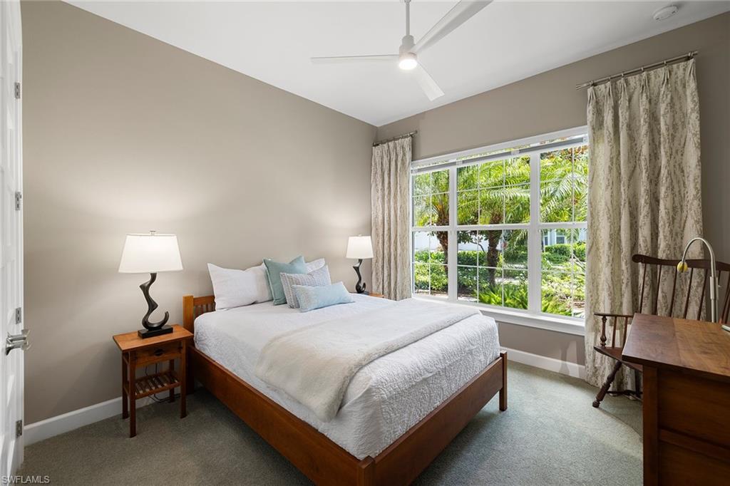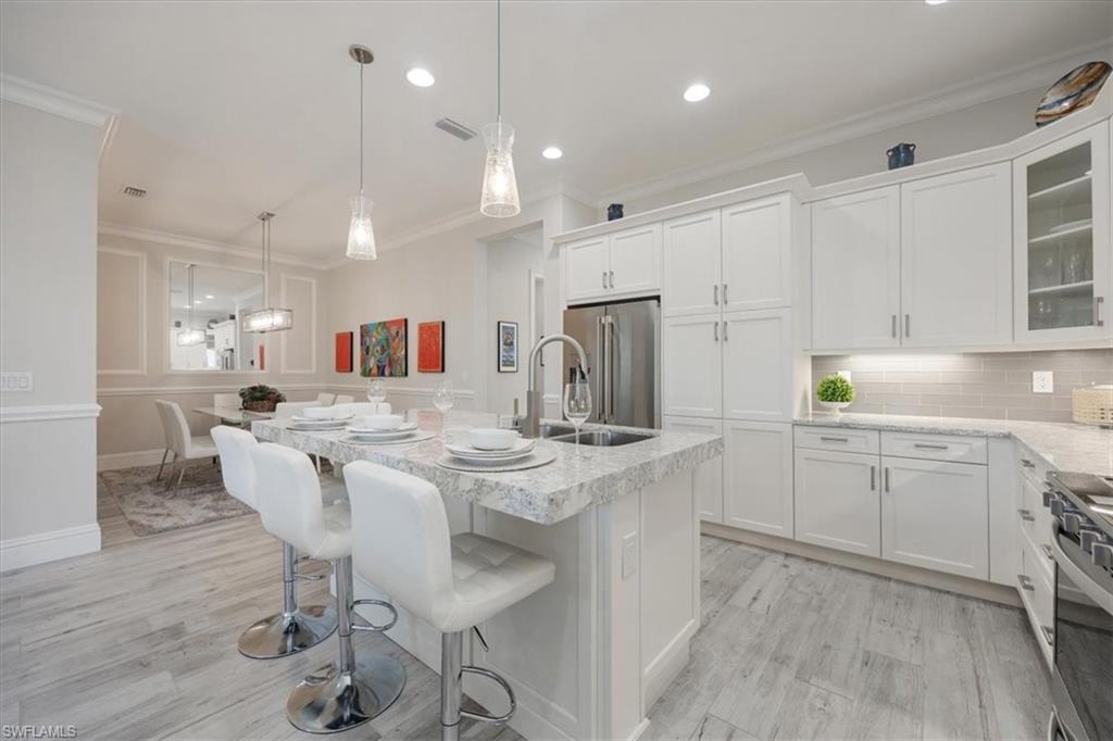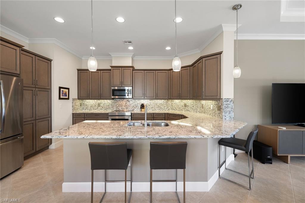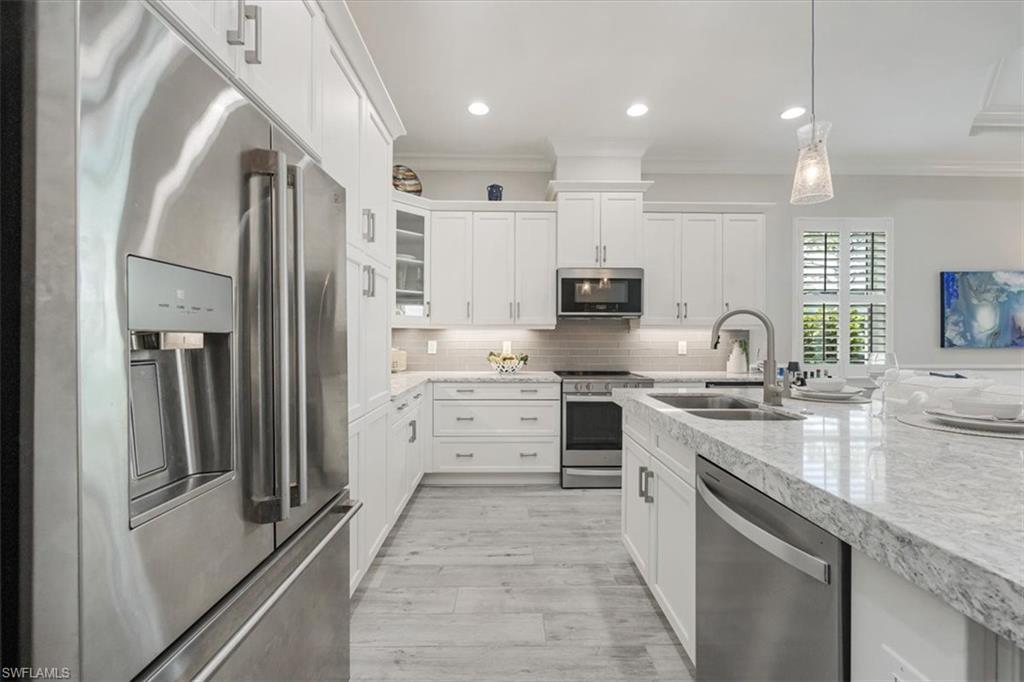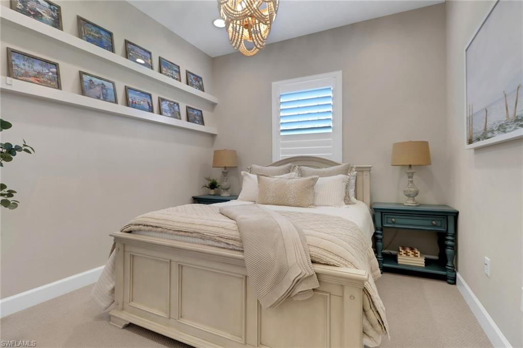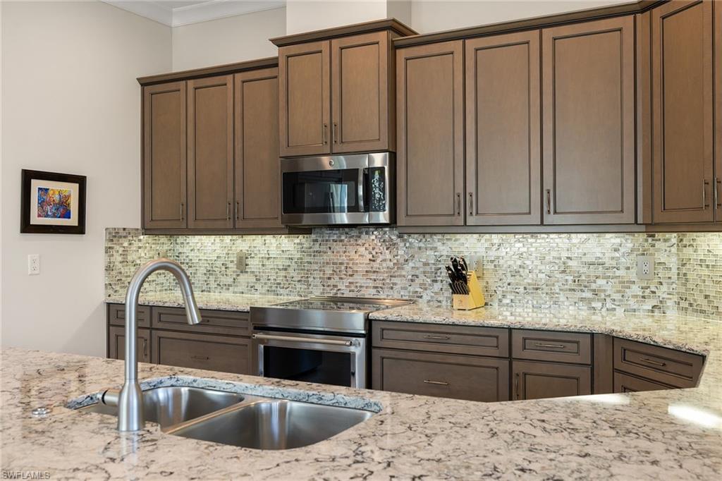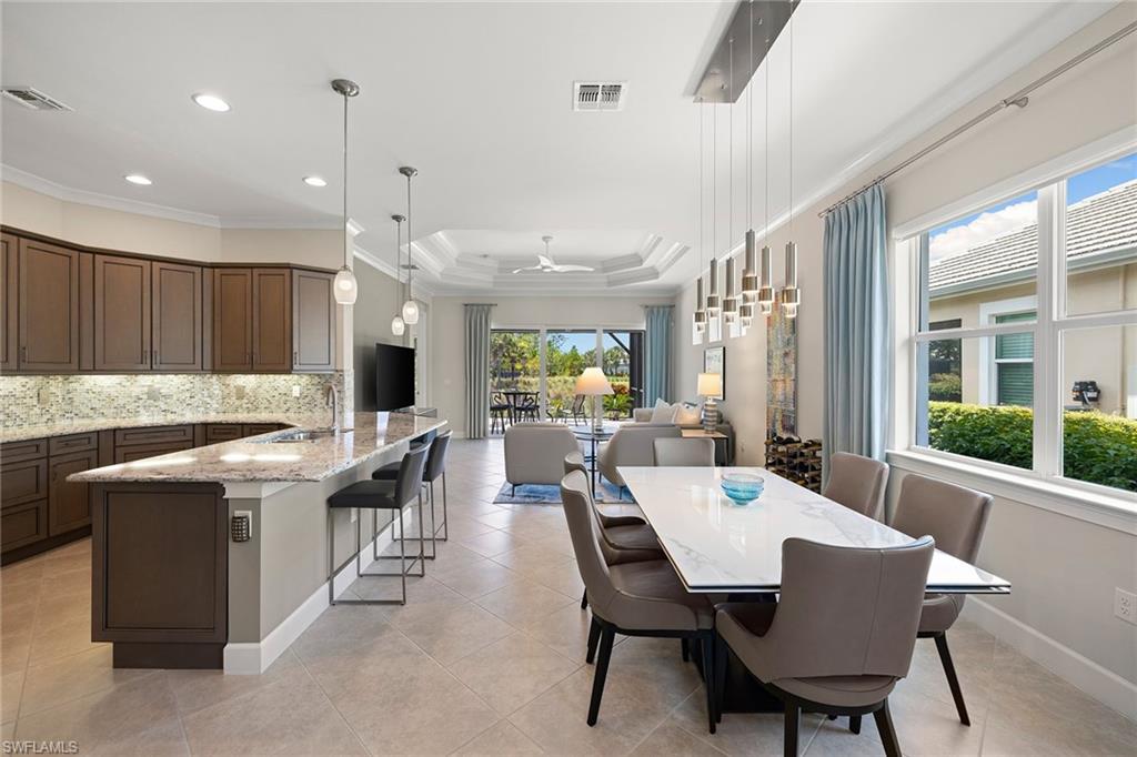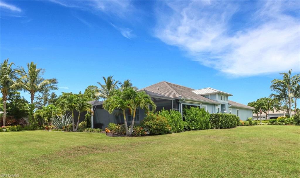 Experience resort-style living at the Isles of Collier Preserve in this elegantly appointed Dahlia model villa, set on a quiet cul-de-sac with a spacious, pie-shaped lot that widens toward the rear for enhanced privacy, generous backyard and stunning southern water views. For the Dahlia’s left-side front door entry, this lot is truly one of a kind! Beautifully maintained and offered substantially furnished, this home features two bedrooms plus a large den that can easily function as a third bedroom. The open-concept layout is ideal for both entertaining and everyday living, showcasing custom upgrades such as crown molding, plantation shutters, luxurious waterproof vinyl flooring, designer ceiling fans, upscale light fixtures, and a dramatic double tray ceiling. The kitchen boasts a chef’s island, French door refrigerator, a sleek black single bowl sink with matching faucet and cabinet hardware and a Purity Bay reverse osmosis water purification system. Additional features include hurricane impact windows and doors, motorized privacy shades on sliding doors, electric hurricane shutters, and “noseeum” screens on the lanai for added comfort and security. Step outside to enjoy the sparkling pool with waterfall hot tub, perfect for cooling off on warm afternoons or relaxing under the stars. Located just minutes from Naples 5th and 3rd avenues, you'll enjoy quick access to world-class shopping, dining, entertainment, and the Gulf’s pristine beaches. The Isles is an amenity-rich community with a grand clubhouse, state of the art fitness center, resort style walk-in pool, lap pool, spa, saunas, tennis, 12 pickle-ball courts, boccie, hiking, biking, kayak launch, dog parks and a full calendar of events, concerts and social gatherings. Don't miss your chance to own this stunning villa in one of Naples’ most sought after communities – schedule your private showing today!