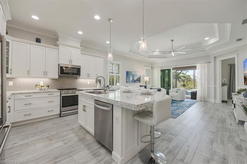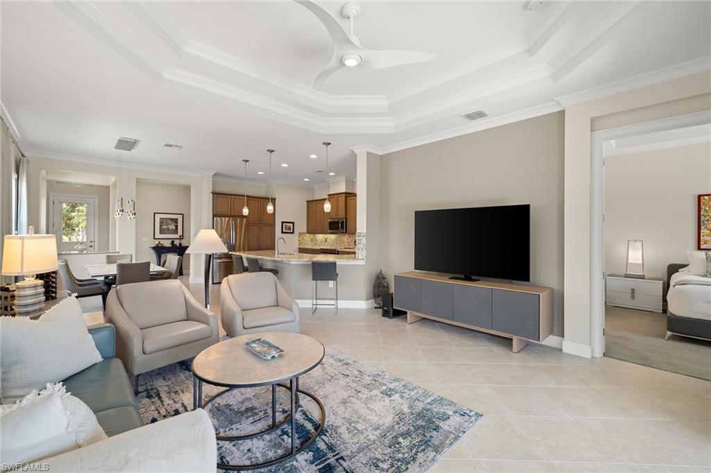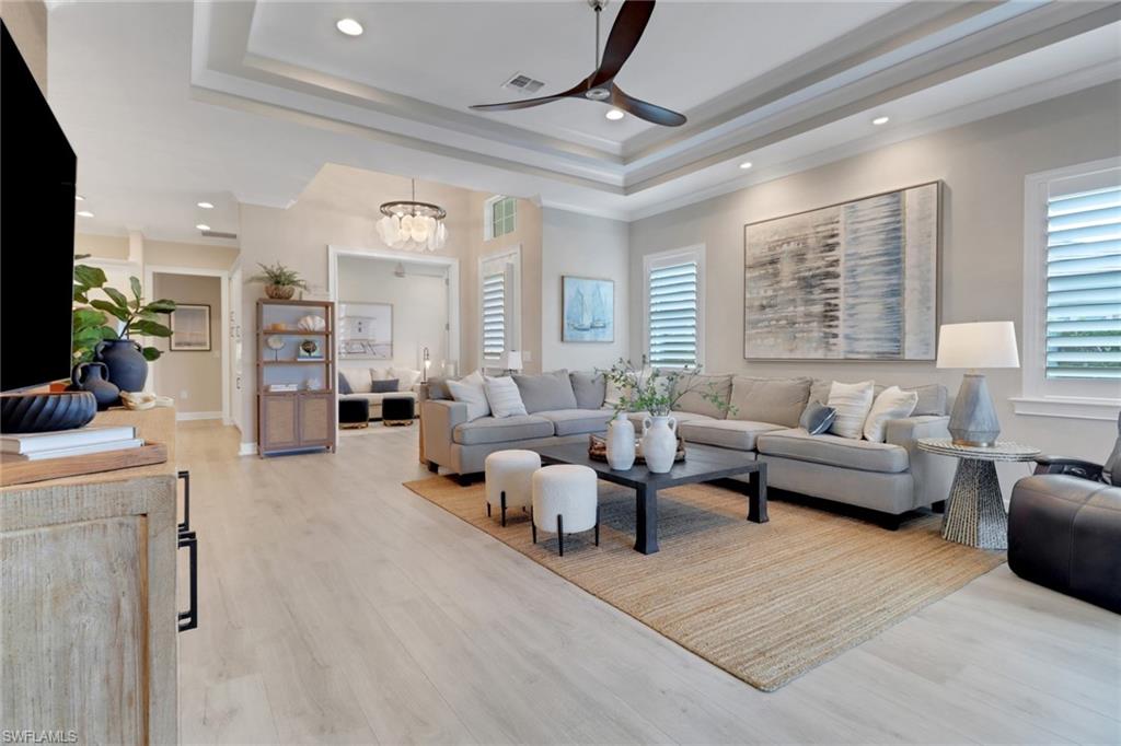 Welcome to this breathtaking coastal-style home in the prestigious, award-winning Isles of Collier Preserve. Designed with an inviting open floor plan, this elegant residence features two beautifully appointed bedrooms, a versatile den, and two luxurious bathrooms. Step onto the spacious lanai, where you can relax and unwind in the heated pool and spa while taking in serene lake views. Tucked away in the heart of the community, this private retreat offers the perfect setting to rejuvenate and recharge. Thoughtfully upgraded throughout, the home boasts impact glass windows and doors, sophisticated tray ceilings, crown molding, exquisite quartz counters, luxury vinyl flooring, and cabinetry, ensuring both beauty and durability. The Isles of Collier Preserve offers an unparalleled lifestyle, with resort-style amenities including a magnificent pool and spa, lap pool, poolside Bar & Grill, state-of-the-art fitness center, tennis and pickleball courts, kayaking, paddleboarding, catch-and-release fishing, and 8 miles of scenic hiking and biking trails. Just minutes from downtown Naples and its world-renowned beaches, you'll enjoy effortless access to upscale dining, boutique shopping, and vibrant cultural attractions.