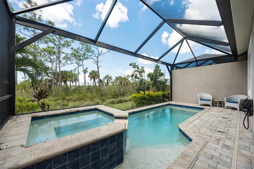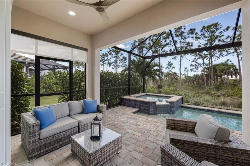 Your Naples oasis awaits! Discover effortless resort-style living in this coastal inspired 2- bedroom plus den, 2-bath ‘Petunia’ villa set within one of the most tranquil and desirable areas of The Isles of Collier Preserve. Ideally located in Flood Zone X – (no flood zone), this home is positioned for privacy and features lush, peaceful nature preserve views and being offered furnishings negotiable. Coastal-style furnishings create a relaxed, move-in-ready atmosphere. Step into the light filled, open-concept floor plan which seamlessly connects the kitchen, family room and dining areas offering the perfect blend of comfort & style. The efficient kitchen featuring soft-close shaker style cabinetry, quartz countertops, stainless steel appliances, wine refrigerator and a spacious island is ideal for casual dining-or gather in the adjoining dining area when entertaining. Beyond the kitchen, the family room features captivating views of your own private tropical oasis, complete with a screened lanai, covered seating area and sparkling pool and spa-perfect for quiet relaxation and effortless entertaining. The primary ensuite bedroom offers a peaceful retreat and features a spa-like shower, dual vanities, and walk-in closet. Guests will love the comfort and privacy of the second bedroom and bathroom. The versatile den with French doors offers space for a home office, hobby room, or guest retreat. This home’s many upgrades include, porcelain plank tile flooring, plantation shutters, tray ceilings, crown molding, impact resistant windows and doors, security alarm, rear privacy landscaping and more. Enjoy the serenity of this lovely, private, lock & leave home, or take advantage of the Isles’ award-winning amenities, including a resort-style clubhouse, fitness center, resort and lap pools, six tennis courts, fourteen pickleball courts, kayak launches, dog park and the waterfront Overlook Bar & Grill. Here, every day feels like a getaway—just minutes from Old Naple’s downtown Naples, 5th Avenue vibrant dining, shopping, and pristine beaches. This villa combines the best of relaxed coastal living with resort-style convenience.
