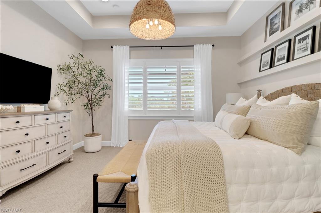 Elevate your lifestyle in this turnkey 2 bedroom + den Dahlia Villa Home, where every detail is curated for the discerning individual. Nestled in a serene setting within the highly desirable Isles of Collier Preserve resort community, this residence epitomizes the lifestyle you've always envisioned. Step inside and discover a haven of opulence, featuring exquisite upgrades like custom 4-inch contemporary plantation shutters, a remote-controlled 3-panel sunshade in the living room for customizable privacy, coffered ceilings, and porcelain tile floors throughout the open living spaces. The kitchen is a welcoming spot for hosting friends, with a large center island, quartz counters, GE stainless appliances, a custom pantry wall, and a coffee bar. The split floorplan allows you and your guests to enjoy privacy, and the built-in Murphy bed in the den optimizes the space by allowing it to serve dual purposes. Outside on the lanai, the living space is equally luxurious, boasting a nice covered area for lounging, a pristine pool and spa, and a Clearview lanai enclosure. Immerse yourself in the tranquility of your private residence or indulge in a myriad of recreational activities such as kayaking, tennis, pickleball, and leisurely cruises to The Overlook restaurant or to visit friends in your own golf cart. Surrounded by nature trails, waterways, and resort-style amenities, including a dedicated dog park for your beloved pup, this low-density, low-fee community is in high demand. With its close proximity to Bayshore, 5th Avenue, and pristine beaches, this home offers the epitome of exclusivity.