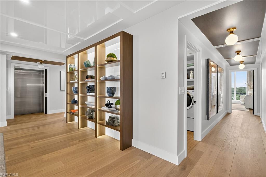 Experience the pinnacle of coastal luxury on the 8th-floor in this 3+Den, 3.5-bath residence in Kalea Bay’s coveted “2-stack.” Your future home offers unparalleled southwestern Gulf views where you can watch the sunset 365 days a year - plus an additional east-facing balcony to enjoy the sunrise - an exclusive feature only available to units in Tower 1! From the moment the private elevator opens directly into your elegant foyer, perfect for showcasing art, you’re enveloped in coastal sophistication. Floor-to-ceiling windows frame the Gulf horizon across your entire living area and primary bedroom. The interior is complemented by Grand 10' ceilings, Legno Bastone 8½" wide-plank hardwood floors, louvre windows perfect for allowing fresh airflow, and custom linen electric window treatments. Your chef’s kitchen is a masterpiece with a Sub-Zero 48" refrigerator, Wolf gas range/vented hood and oven, Bosch dishwasher, waterfall Quartz counters, and a Moen touchless faucet over your Franke Sink. The butler’s pantry allows for additional storage, cooking prep area, and is complemented with a Sub-Zero wine refrigerator. Each generous bedroom offers its own ensuite bath, while the primary suite delivers breathtaking views visible from the spa inspired bath and your free standing soaking tub. The Den is the perfect retreat to unwind and relax in front of the top of the line, Modern Flames fireplace or eastern facing balcony. Within the gates of Kalea Bay, residents enjoy a lifestyle exceeding that of a five-star resort. Tower 1’s rooftop oasis features a zero edge infinity pool and open air fitness center overlooking the Gulf. The expansive Club at Kalea Bay offers multiple pools, including an adults-only retreat and a family-friendly resort pool. Dining options include elegant indoor and outdoor dining venues and fine dining restaurant options exclusive to residents. The state of the art wellness center includes a full spa, yoga and Pilates studios, and fitness facility. Throughout the community you will find a dog park, and meandering walking trails that weave through lush tropical landscaping, leading to a private dock and launch area for kayaking, paddleboarding, boat rentals, and more. Discover why Kalea Bay is one of Naples’ most coveted addresses, where every day feels like a vacation. Schedule your private showing today and experience this extraordinary coastal retreat firsthand.