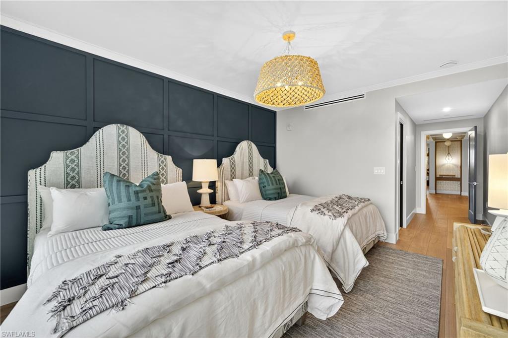 Elegant finishes and sophisticated design define this 6th-floor corner residence in Tower 300 at Kalea Bay. This turnkey home showcases professional interior design with luxurious furnishings, custom built-ins, exquisite millwork, designer wall coverings and lighting throughout. A wall of sliding glass doors opens to a spacious lanai, offering breathtaking Gulf sunsets. The residence lives like a single-family home, spanning 3,223 square feet with three bedrooms, a den with private balcony, and three-and-a-half baths, including a spectacular primary suite featuring a 9’x18.5’ custom closet. Highlights include Legno Bastone wide-plank oak floors, custom cabinetry, motorized shades, crown molding, a Kinetico water softener with carbon filter and RO drinking system and upgraded air purification. The open gourmet kitchen boasts Wolf gas appliances, Sub-Zero refrigeration, a full-height wine cooler, and a butler’s pantry with ample storage. Enjoy direct elevator access to the building’s exceptional rooftop amenities, featuring a pool, open-air fitness center, BBQ grills, and lounge areas—all with sweeping Gulf views and unforgettable Naples sunsets. --- This Kalea Bay residence provides all the conveniences of living in a luxury condominium and membership to a private club with 5-star amenities, a combination that has made Kalea Bay one of the most successful and desirable communities in Naples. Built in 2022, Tower 300 is located directly across from the Club at Kalea Bay and provides easy access to 80,000 square feet of exceptional modern amenities, including a wellness center with a state-of-the art gym, spin room, Pilates, spa services plus 3 resort style pools, 2 open-air poolside bars, fine and casual dining options, outdoor fire pits, a kids’ game room, 8 pickleball and 4 tennis courts, guest cottages and more. Kalea Bay Residents also have the option to join the annual Beach Card Program, based on availability, which grants access to the private Beach Club at Moraya Bay at Vanderbilt Beach for dining both indoor and outdoor as well as beach service including food, beverages, chairs and umbrellas.